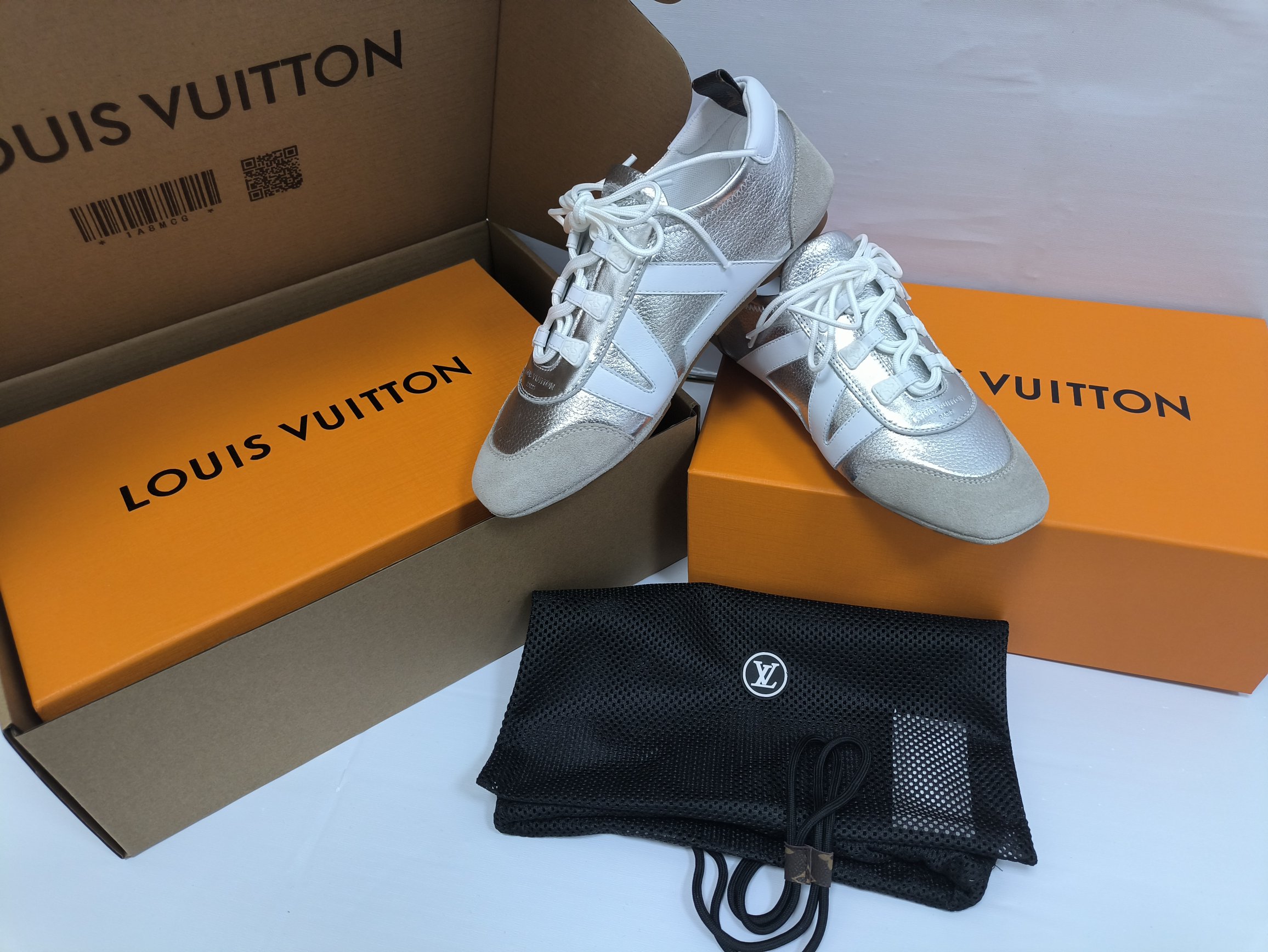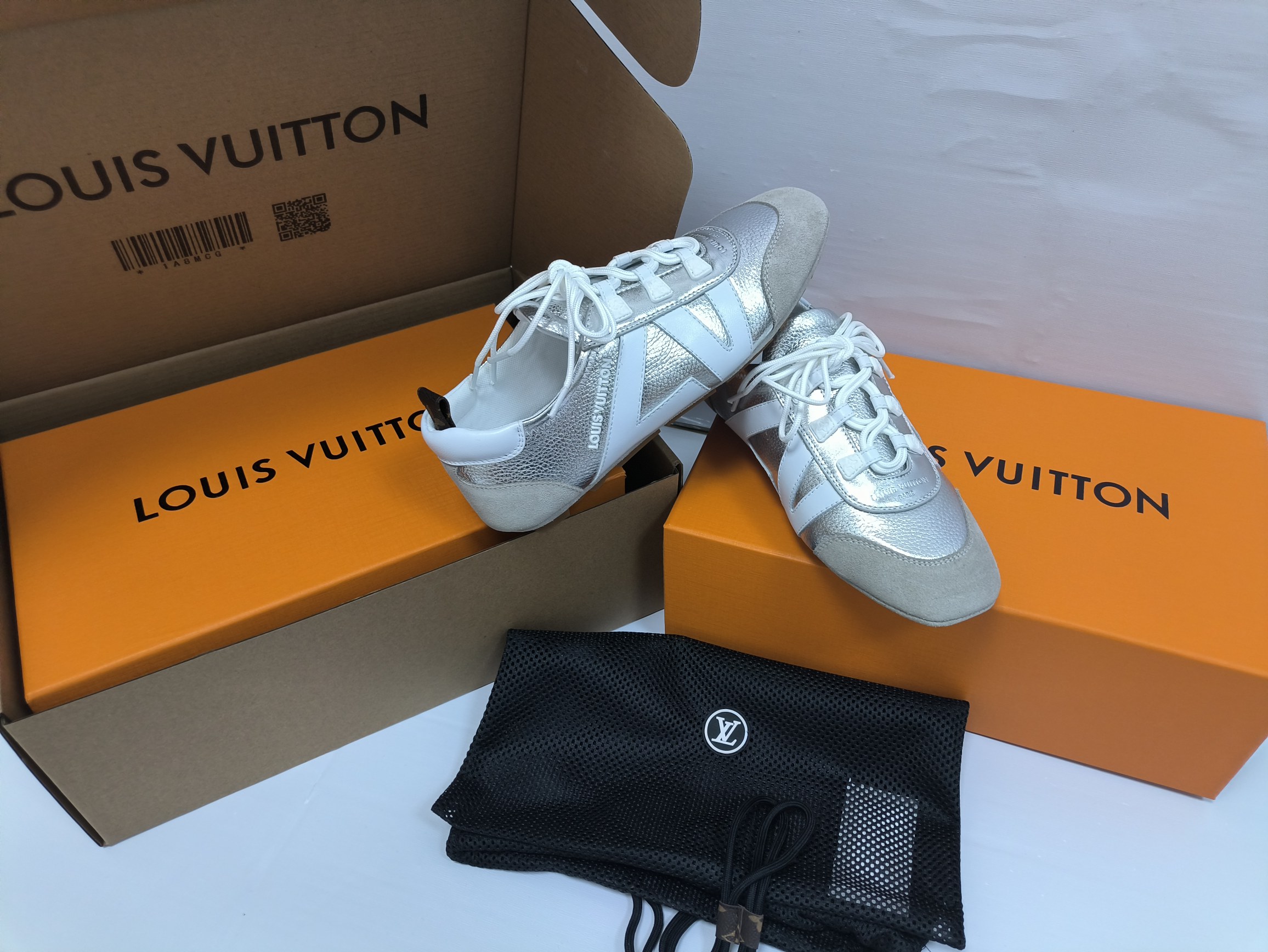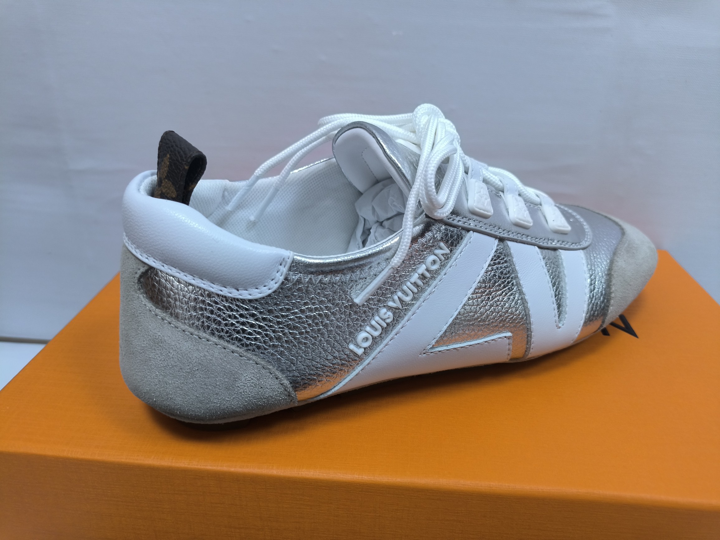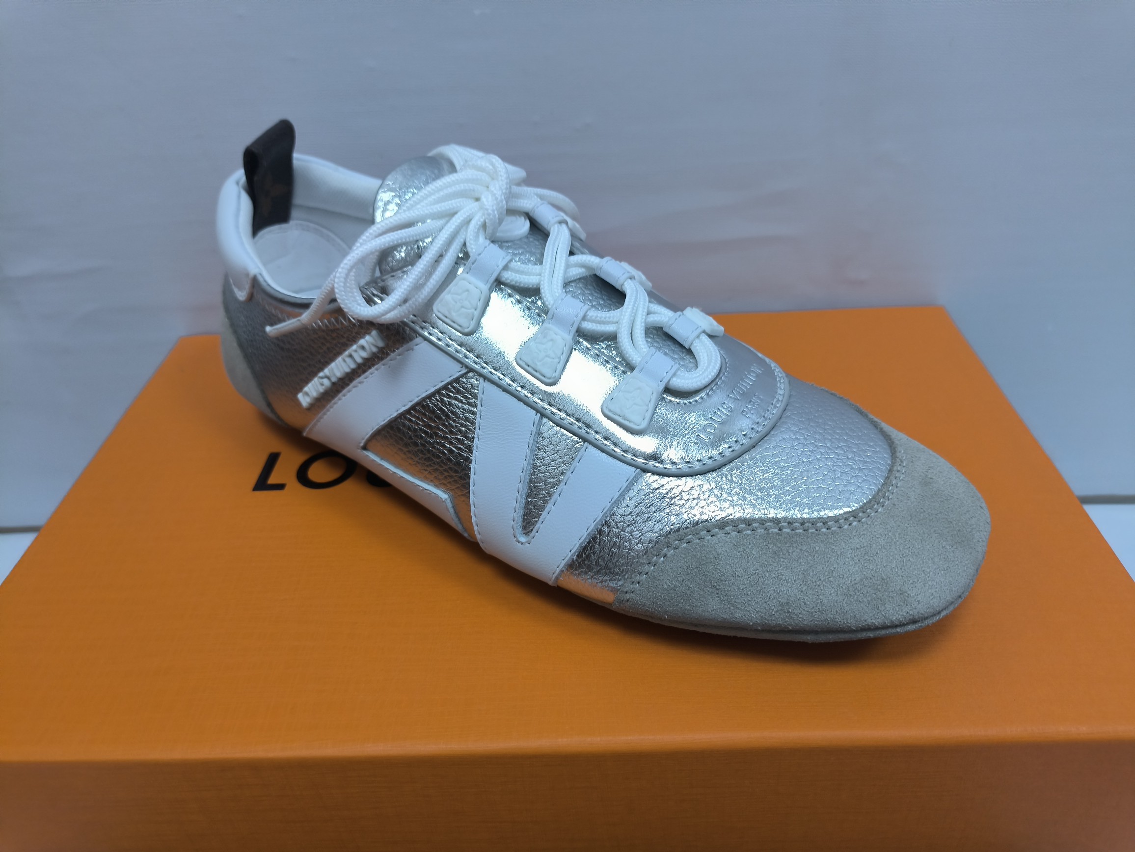 这款鞋子是AAAAA 1:1 质量 (非常棒). 使用了和原版一模一样的材料. 商标部分也保持了和路易威登/Louis Vuitton一样. 图片拍摄是实物鞋子拍摄, 您所收到的实物保证和我们图片一模一样.
