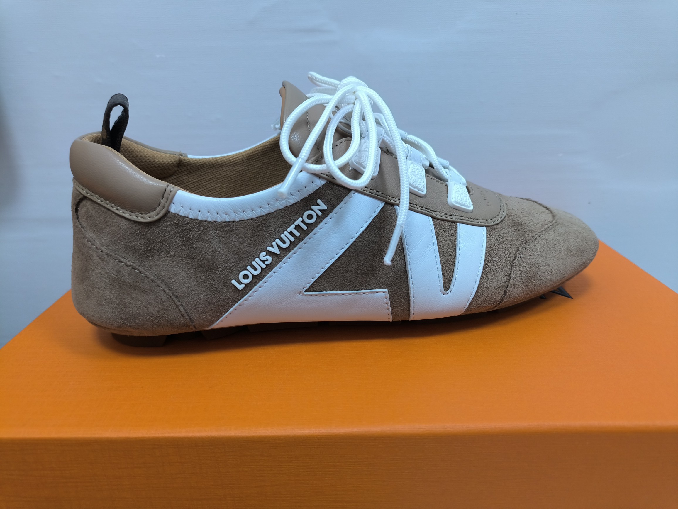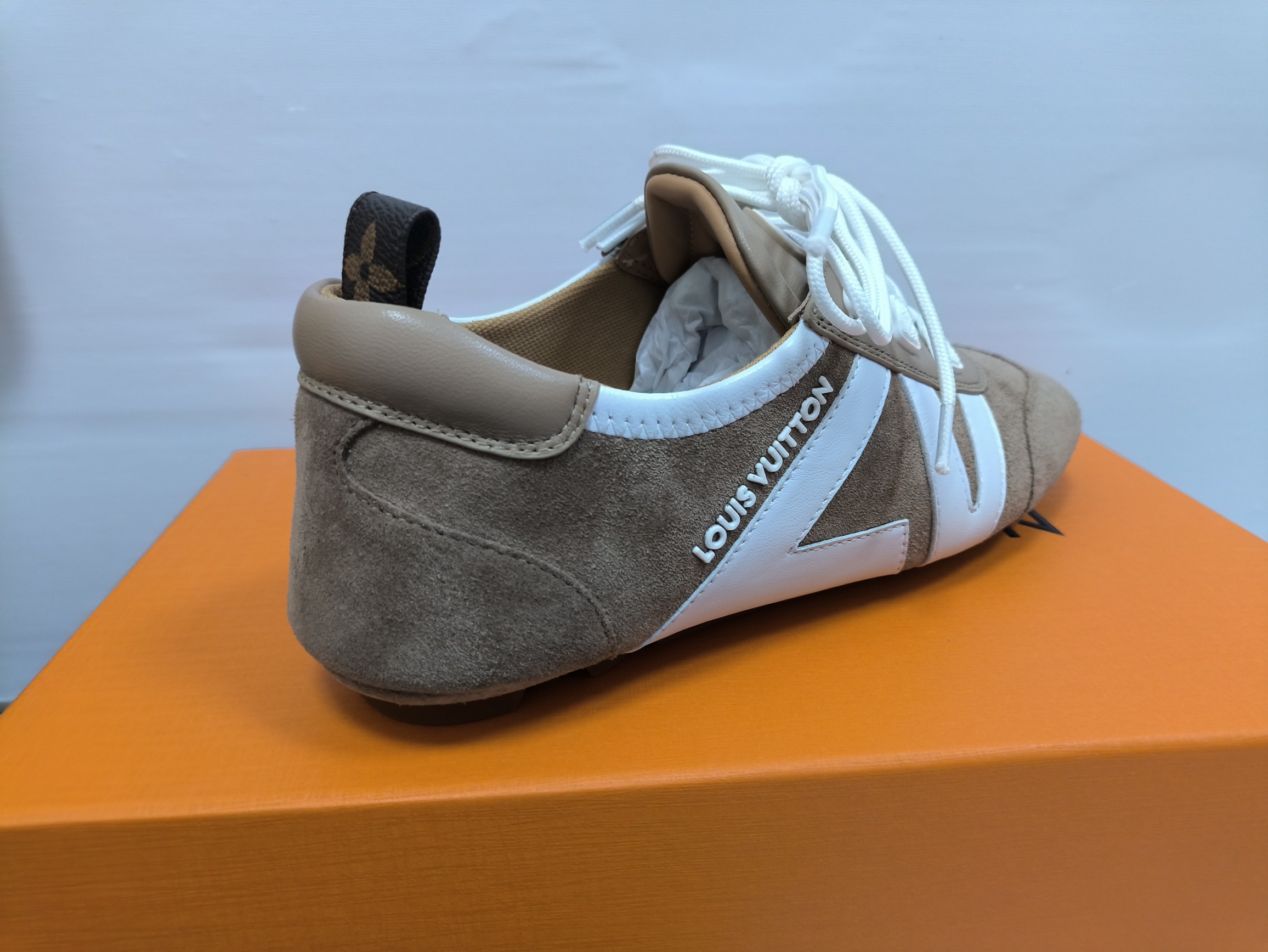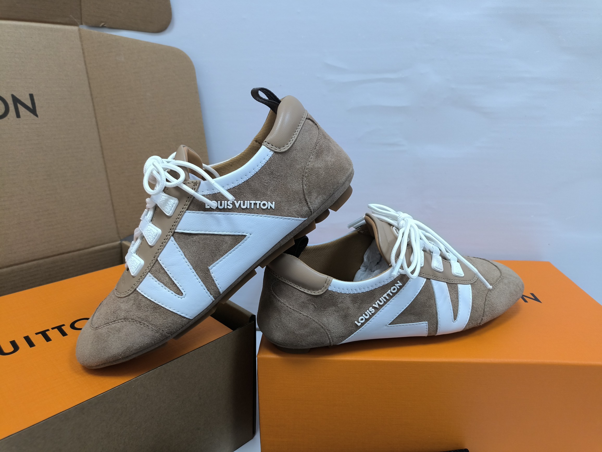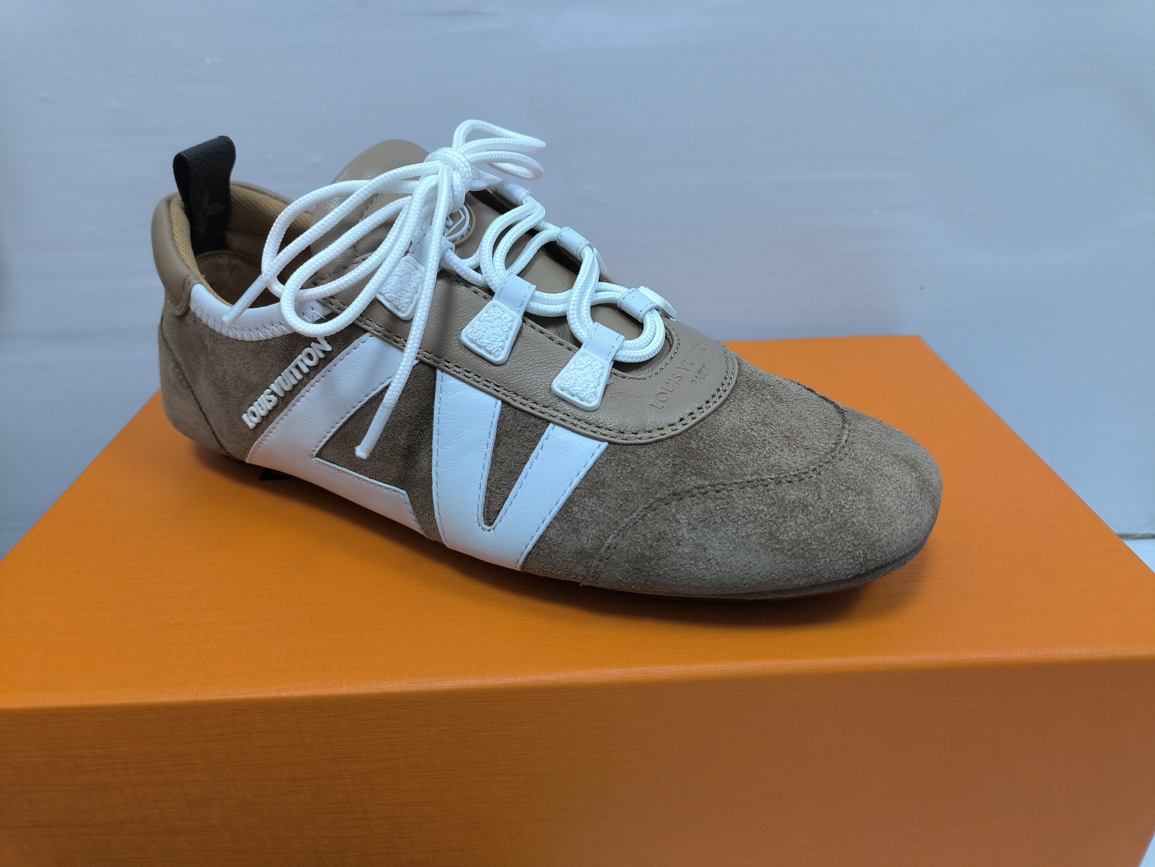 这款鞋子是AAAAA 1:1 质量 (非常棒). 使用了和原版一模一样的材料. 商标部分也保持了和路易威登/Louis Vuitton一样. 图片拍摄是实物鞋子拍摄, 您所收到的实物保证和我们图片一模一样.