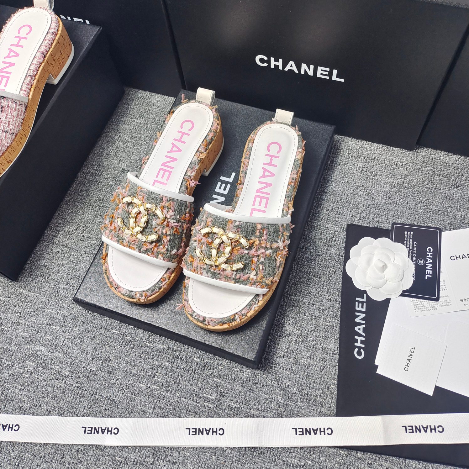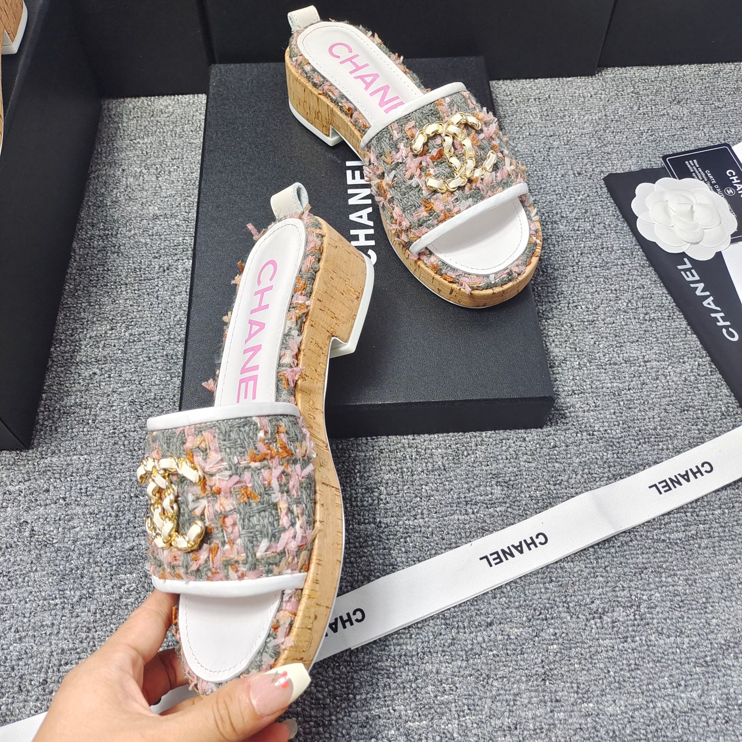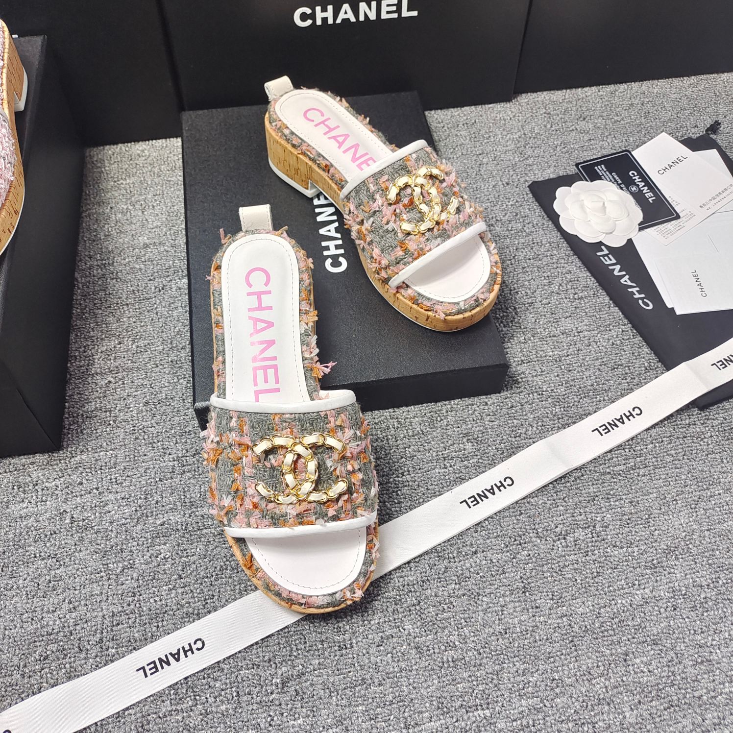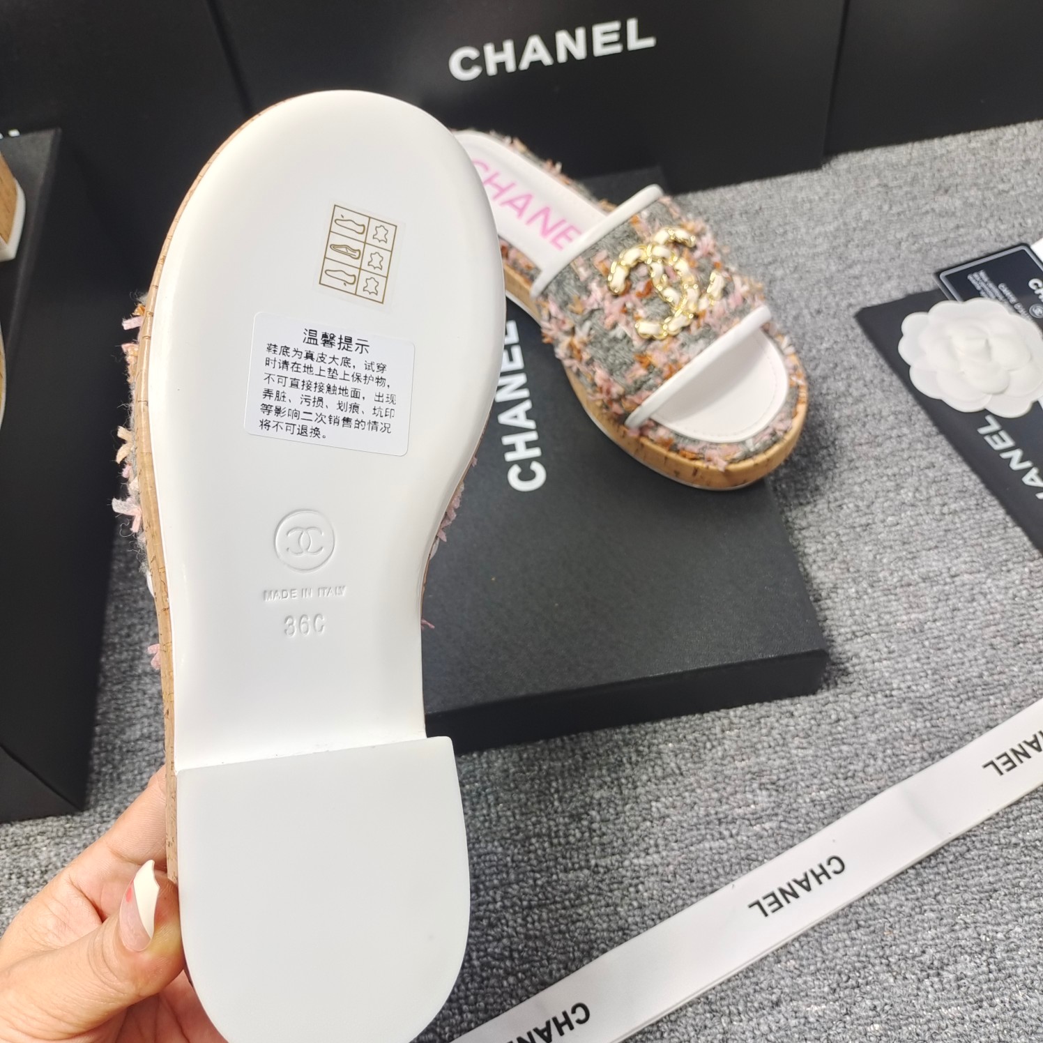 这款鞋子是AAAAA 1:1 质量 (非常棒). 使用了和原版一模一样的材料. 商标部分也保持了和香奈儿/Chanel一样. 图片拍摄是实物鞋子拍摄, 您所收到的实物保证和我们图片一模一样.