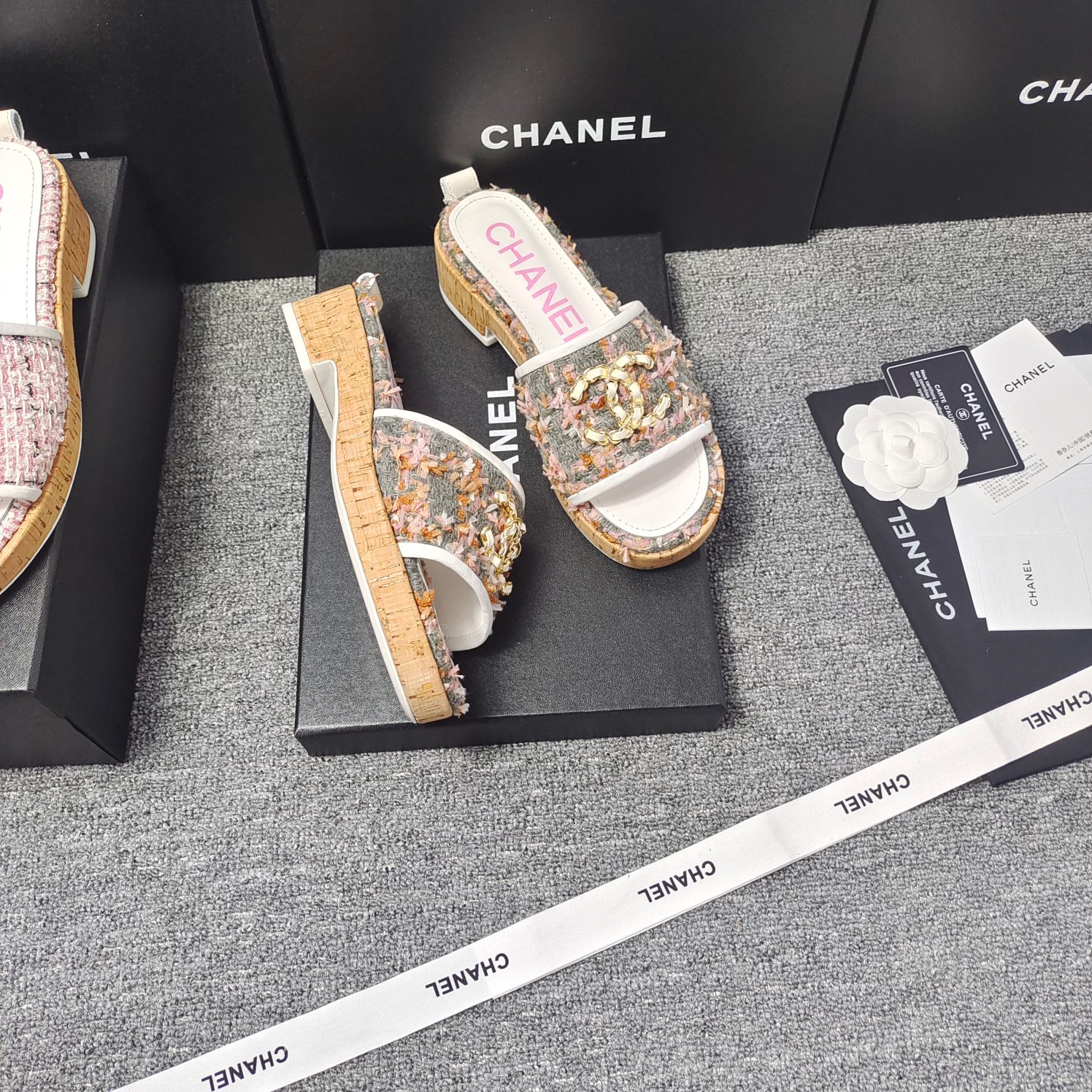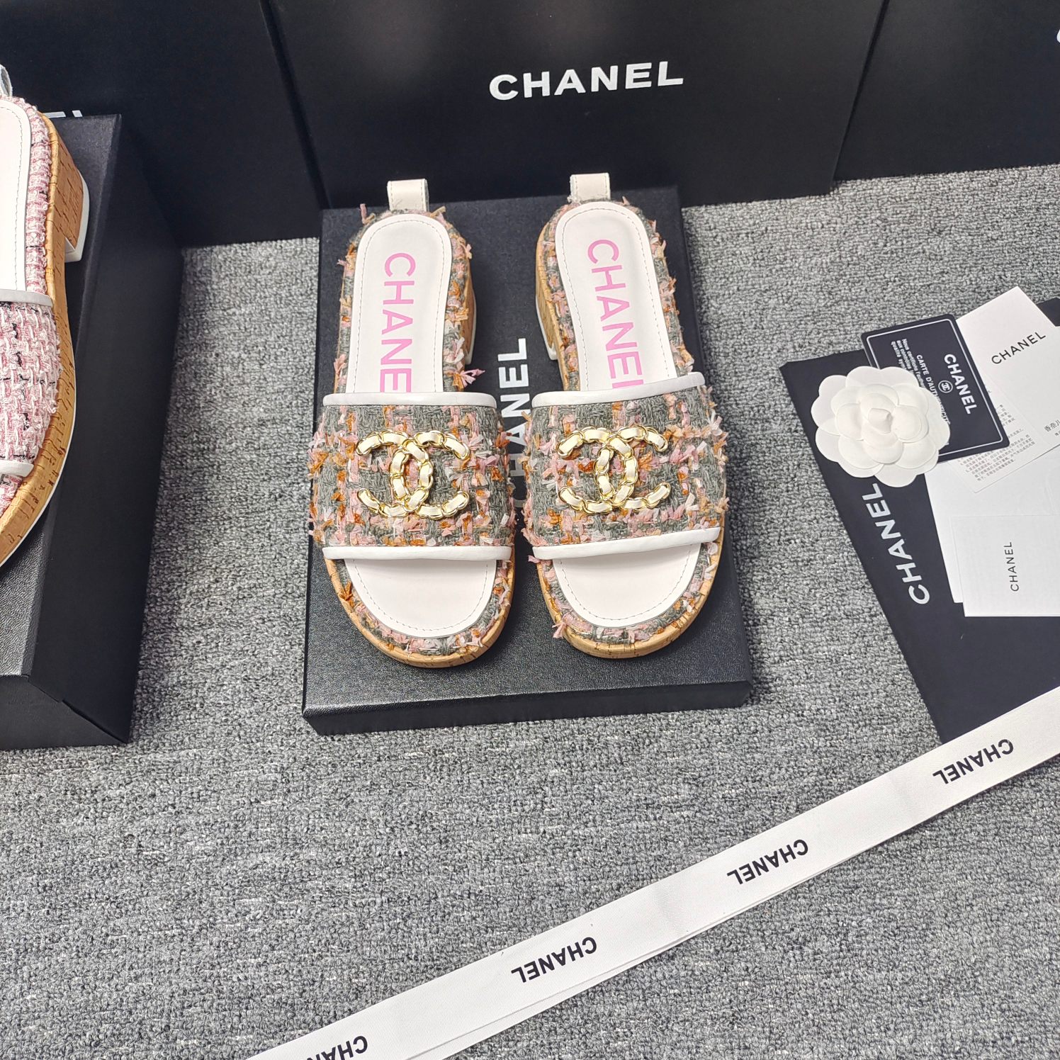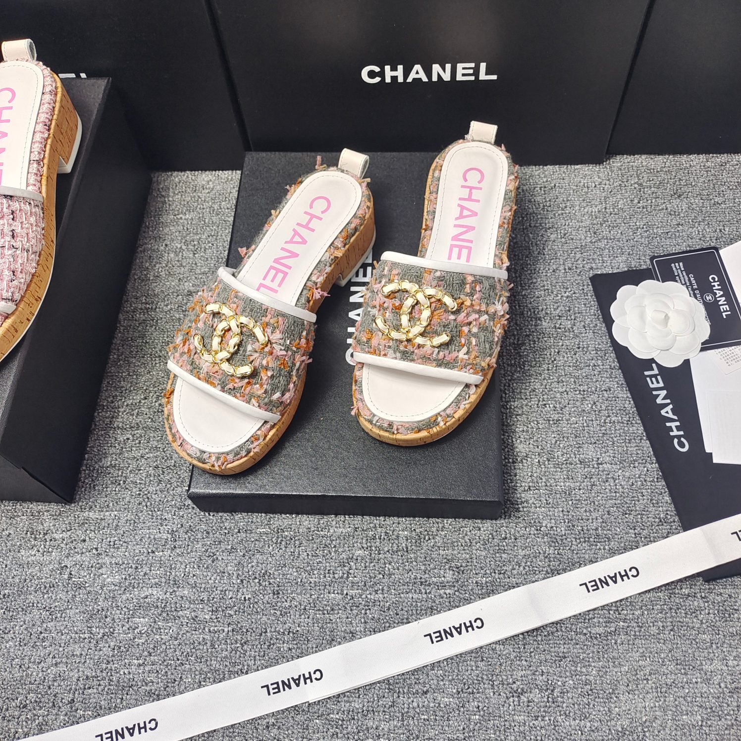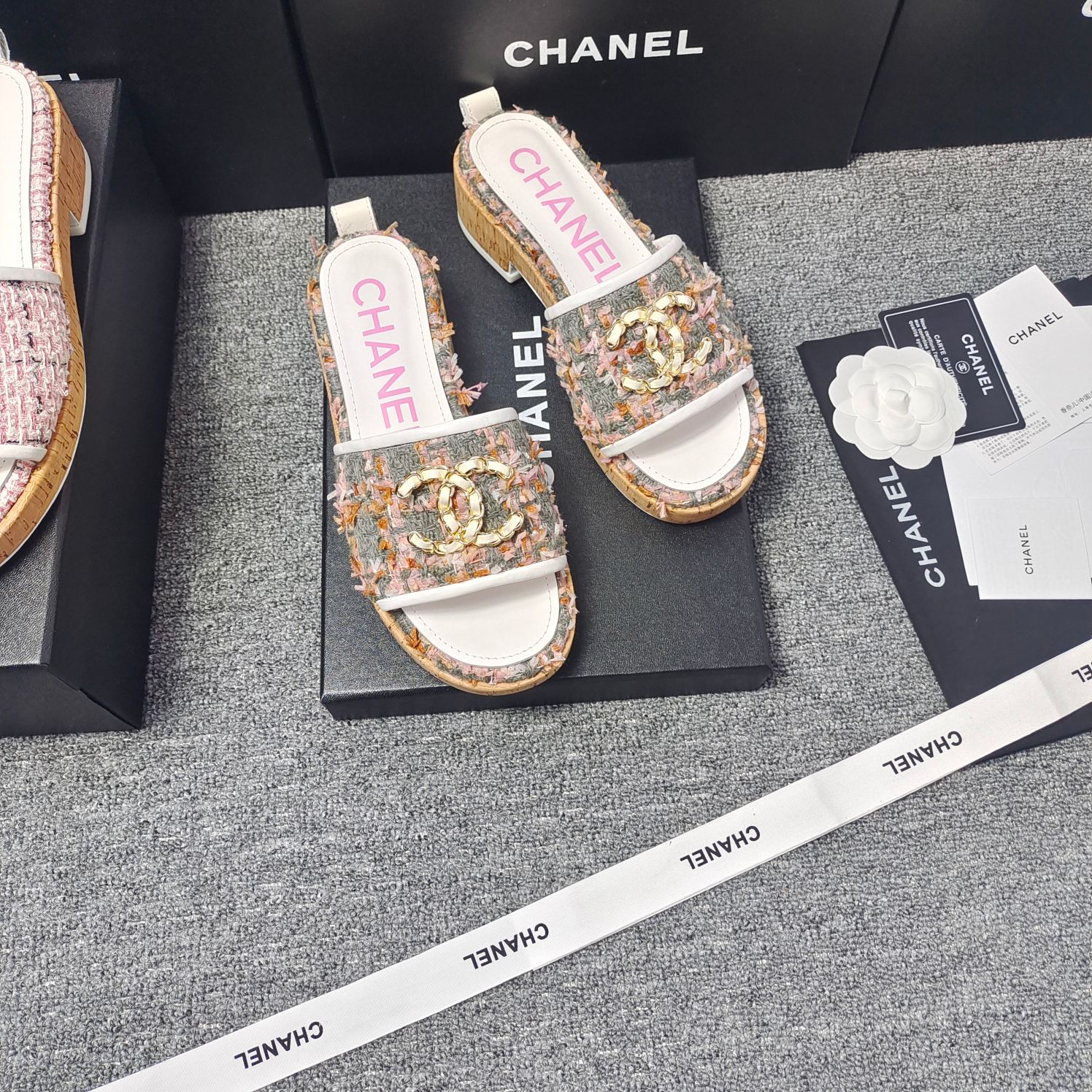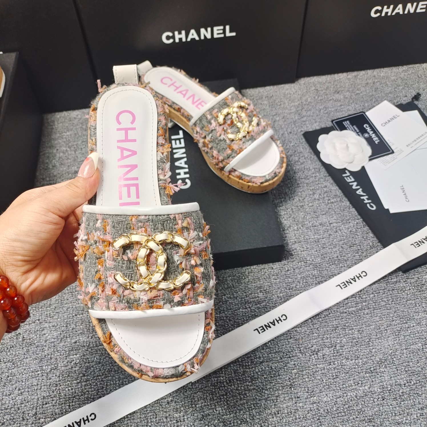 这款鞋子是AAAAA 1:1 质量 (非常棒). 使用了和原版一模一样的材料. 商标部分也保持了和香奈儿/Chanel一样. 图片拍摄是实物鞋子拍摄, 您所收到的实物保证和我们图片一模一样.