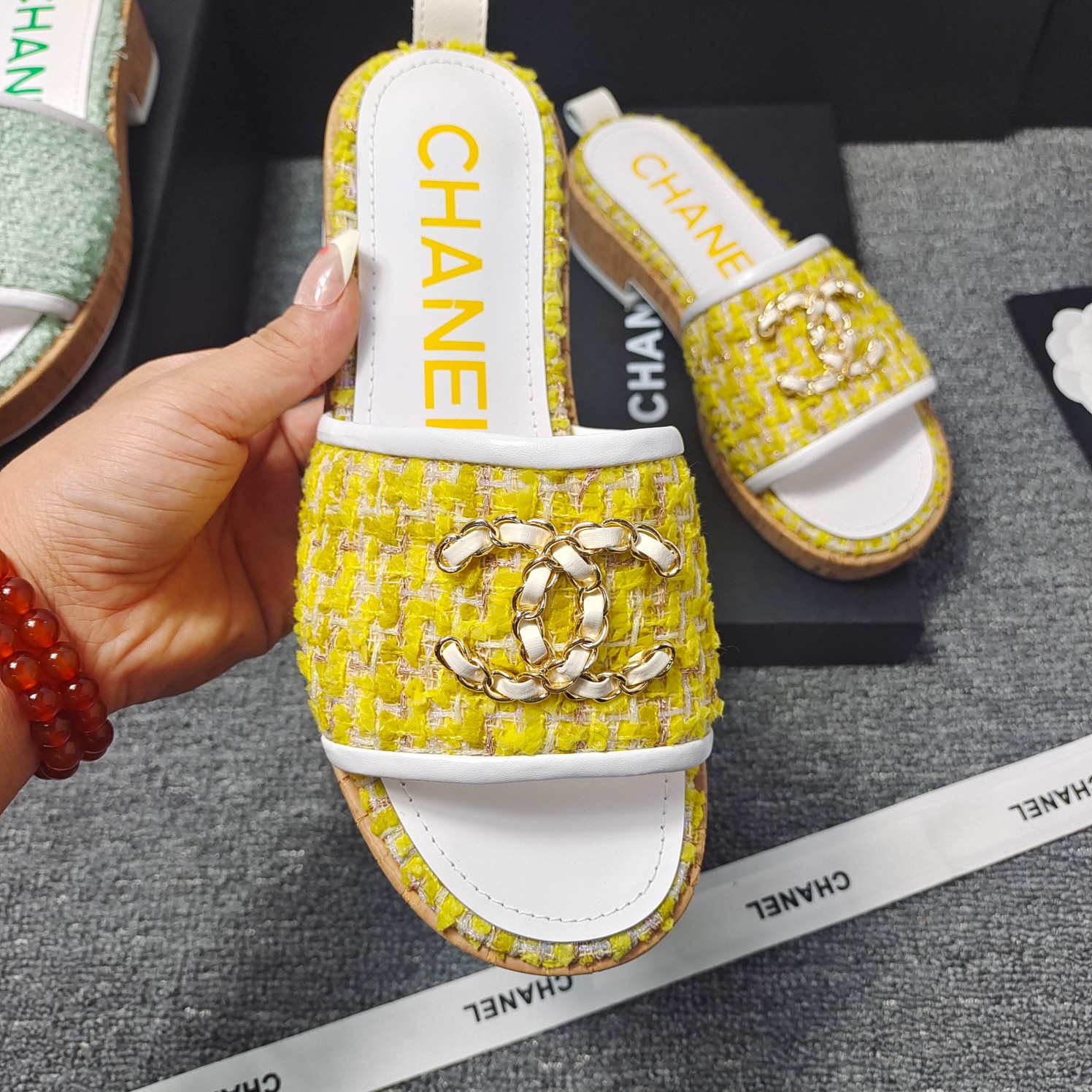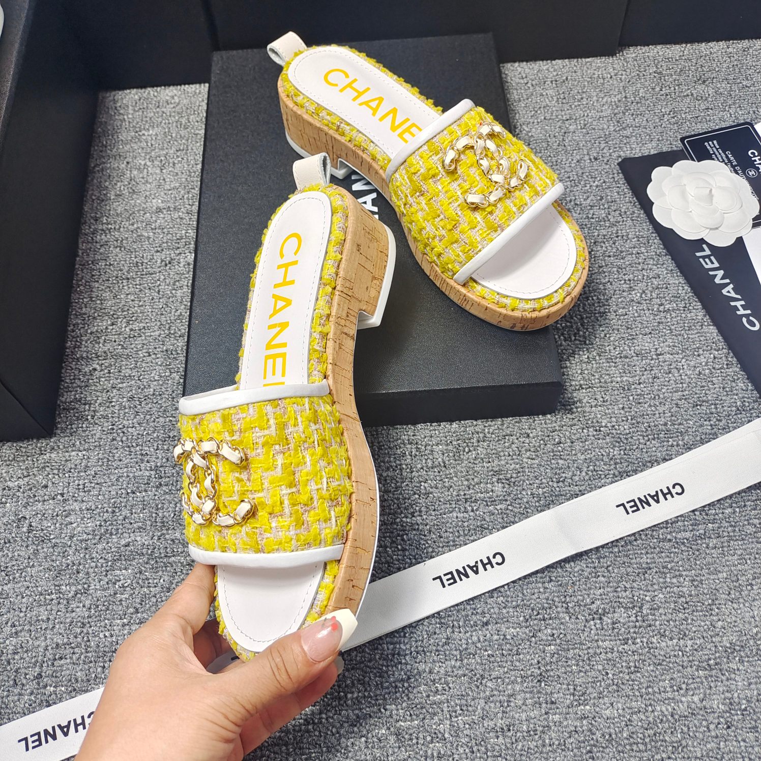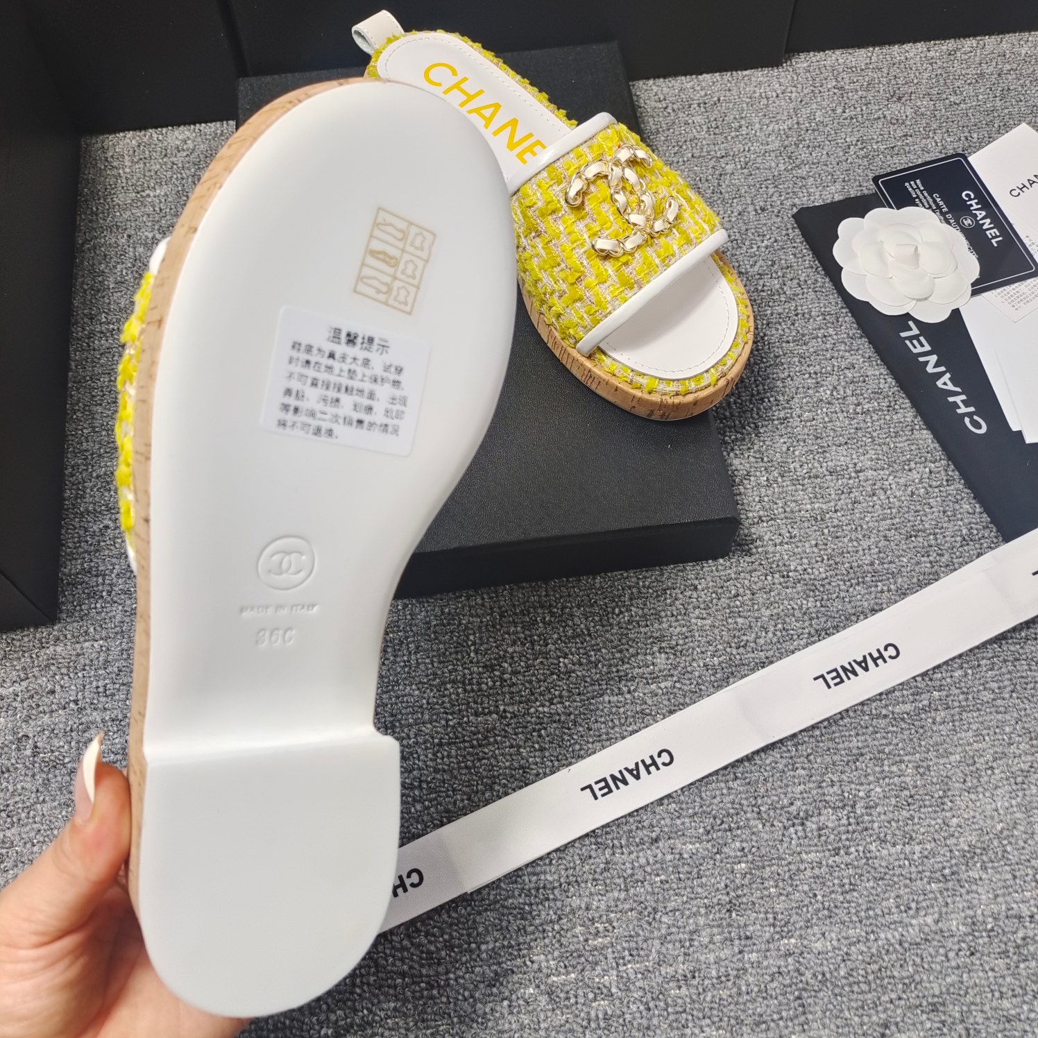 这款鞋子是AAAAA 1:1 质量 (非常棒). 使用了和原版一模一样的材料. 商标部分也保持了和香奈儿/Chanel一样. 图片拍摄是实物鞋子拍摄, 您所收到的实物保证和我们图片一模一样.
