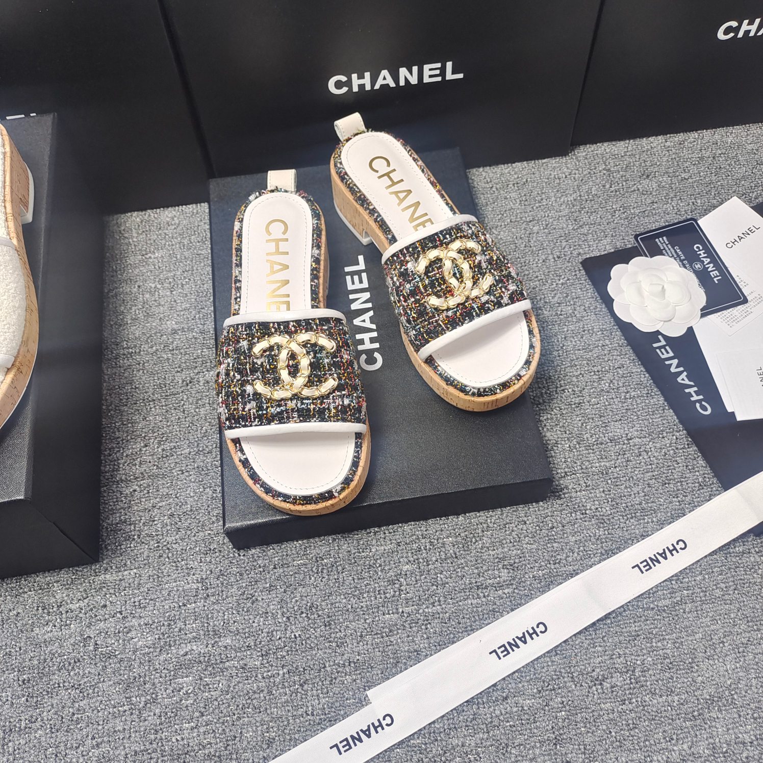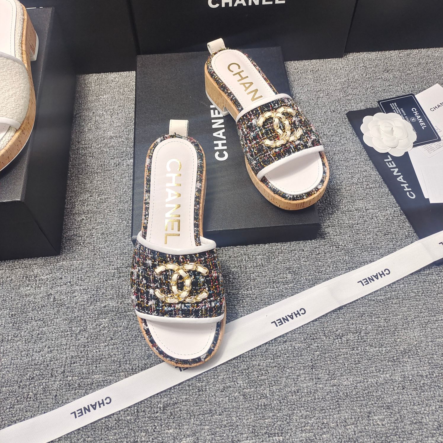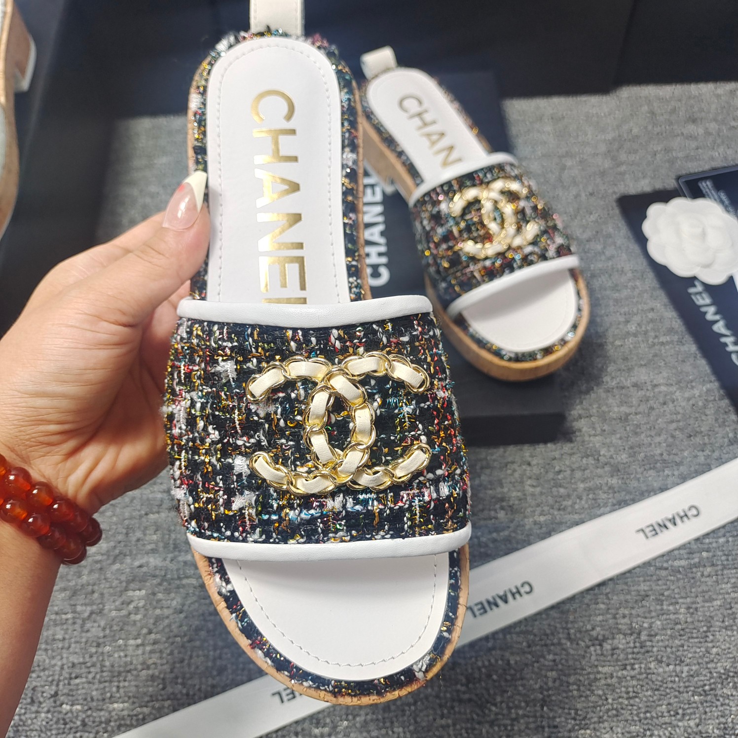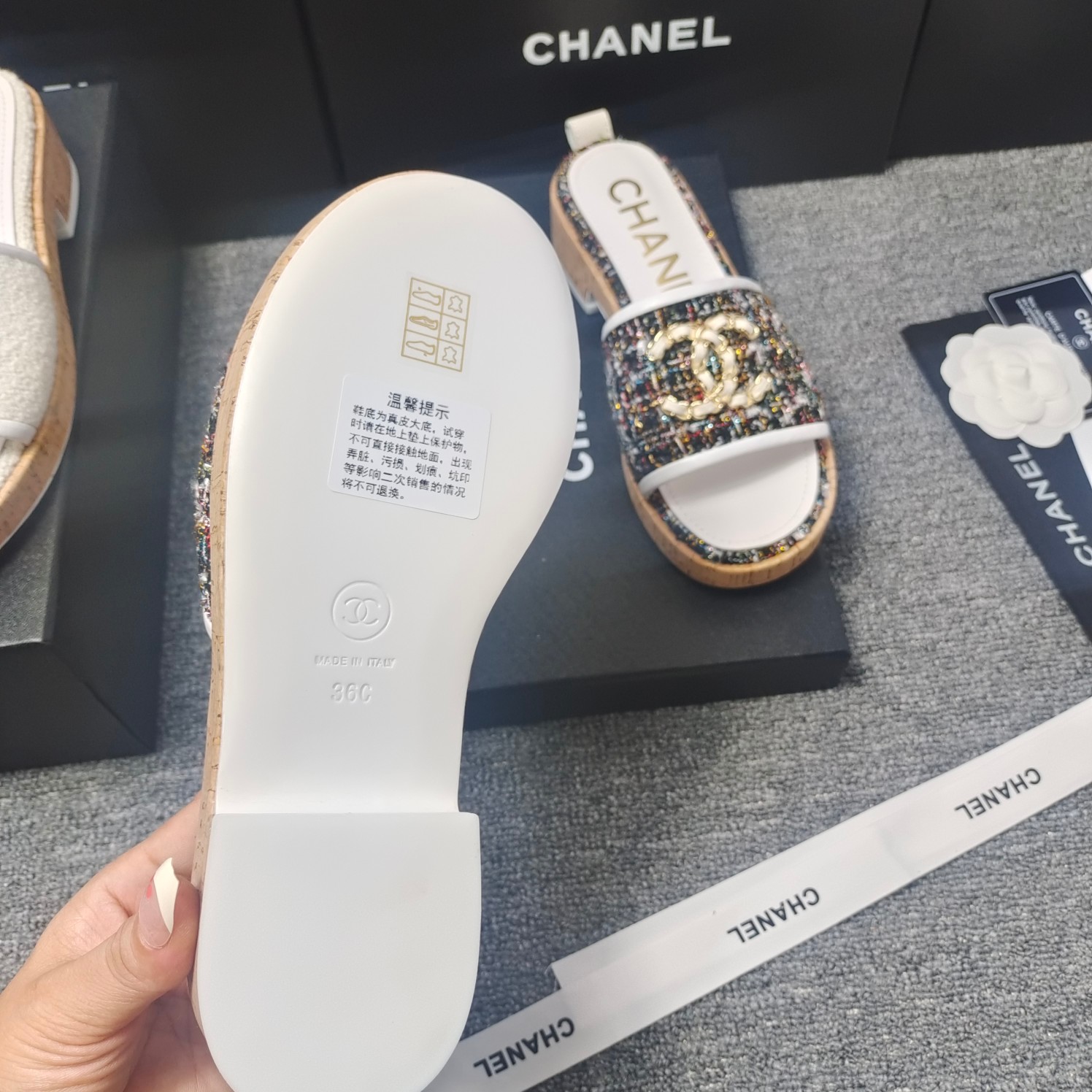 这款鞋子是AAAAA 1:1 质量 (非常棒). 使用了和原版一模一样的材料. 商标部分也保持了和香奈儿/Chanel一样. 图片拍摄是实物鞋子拍摄, 您所收到的实物保证和我们图片一模一样.