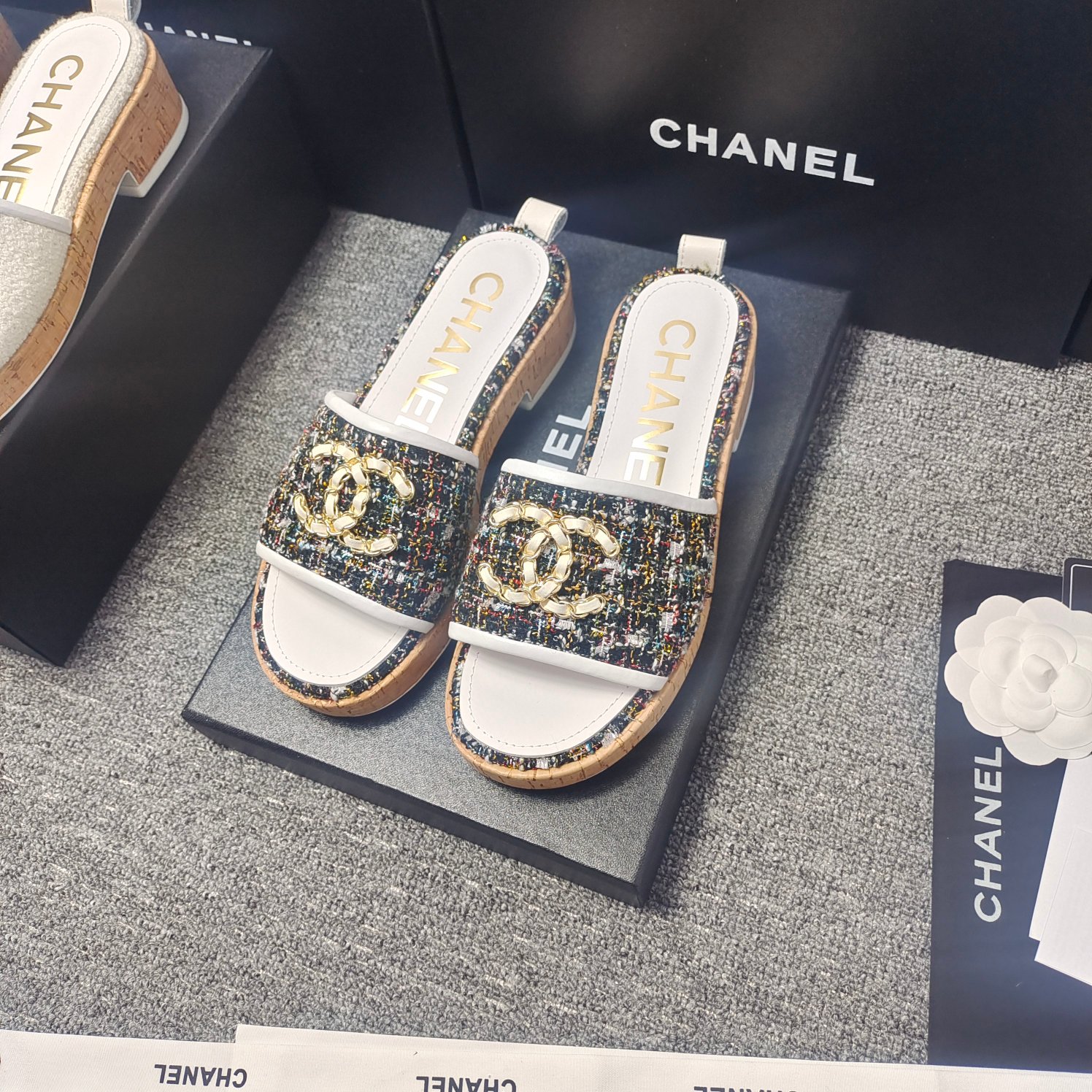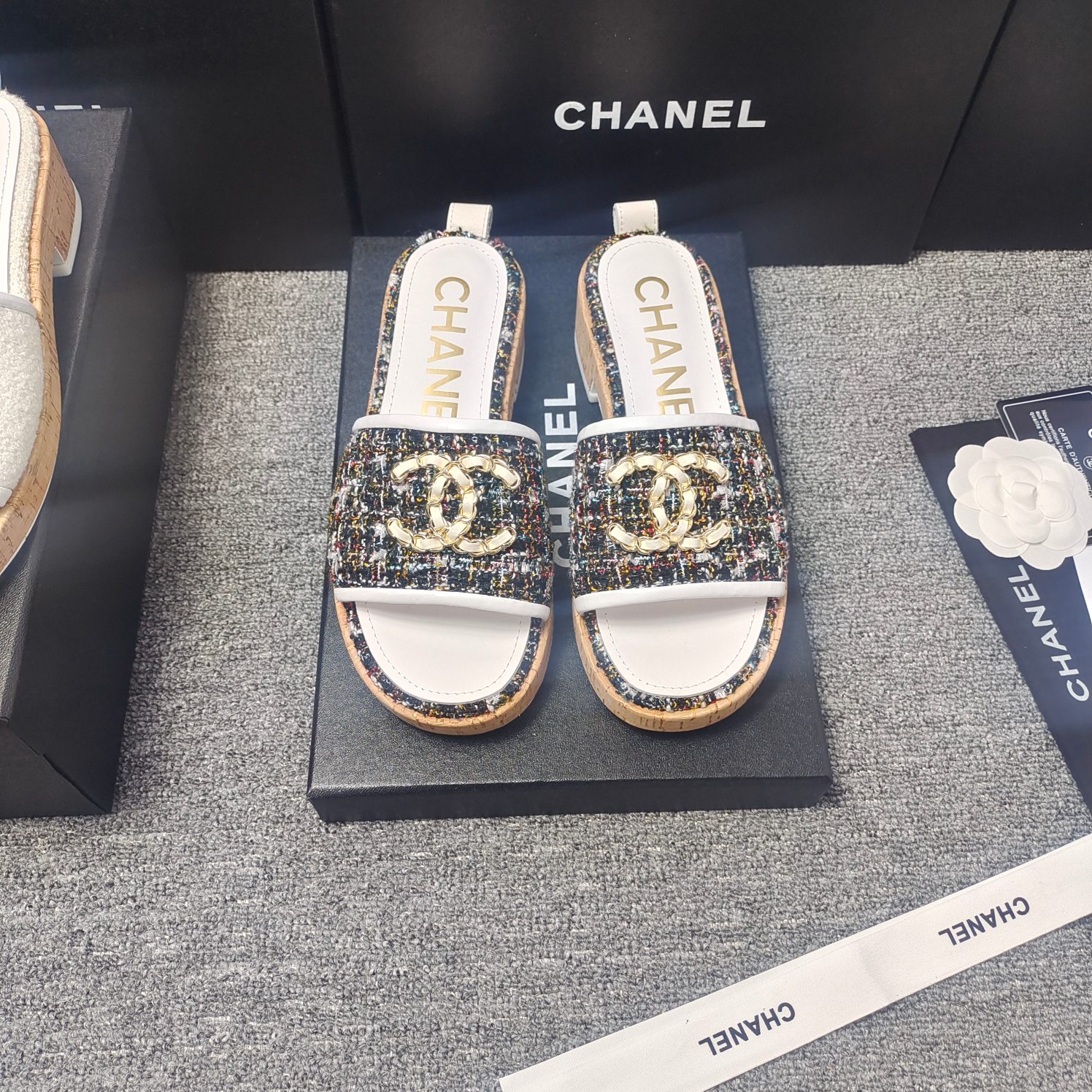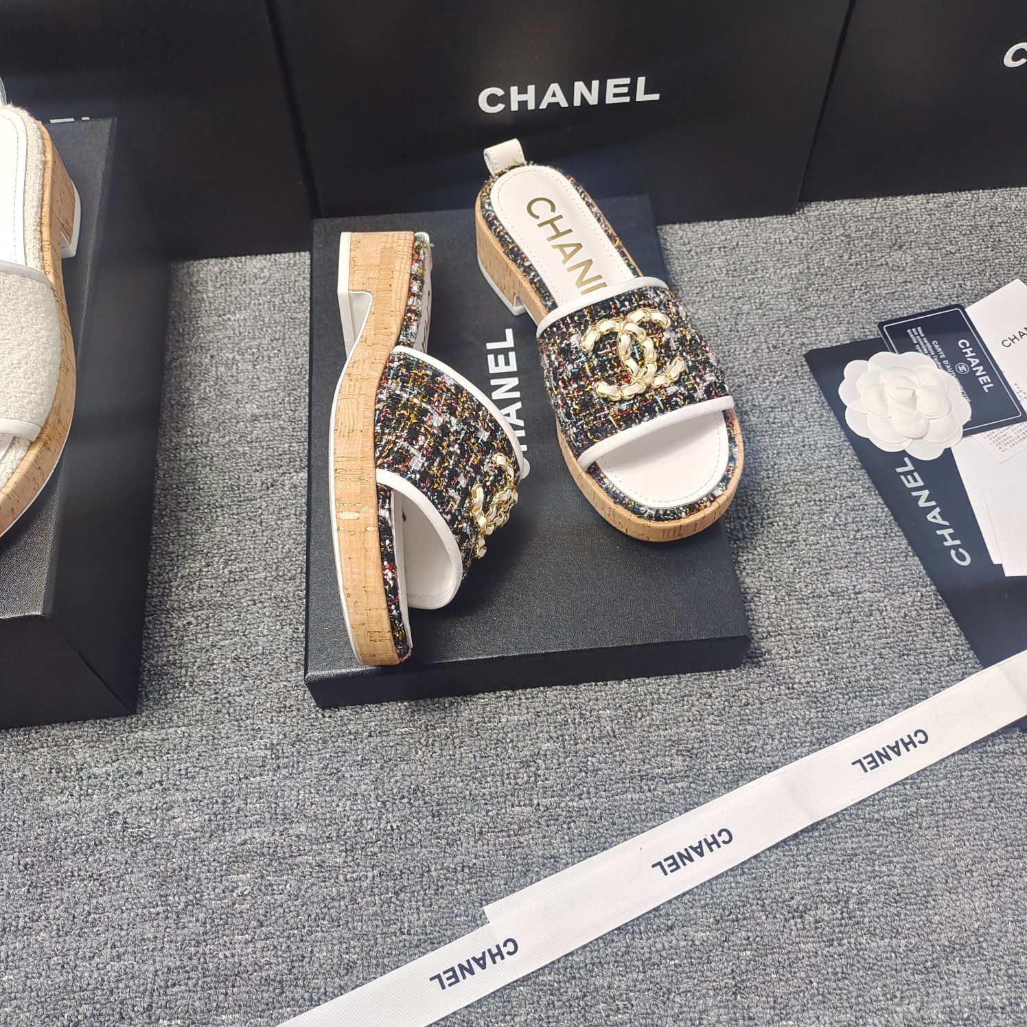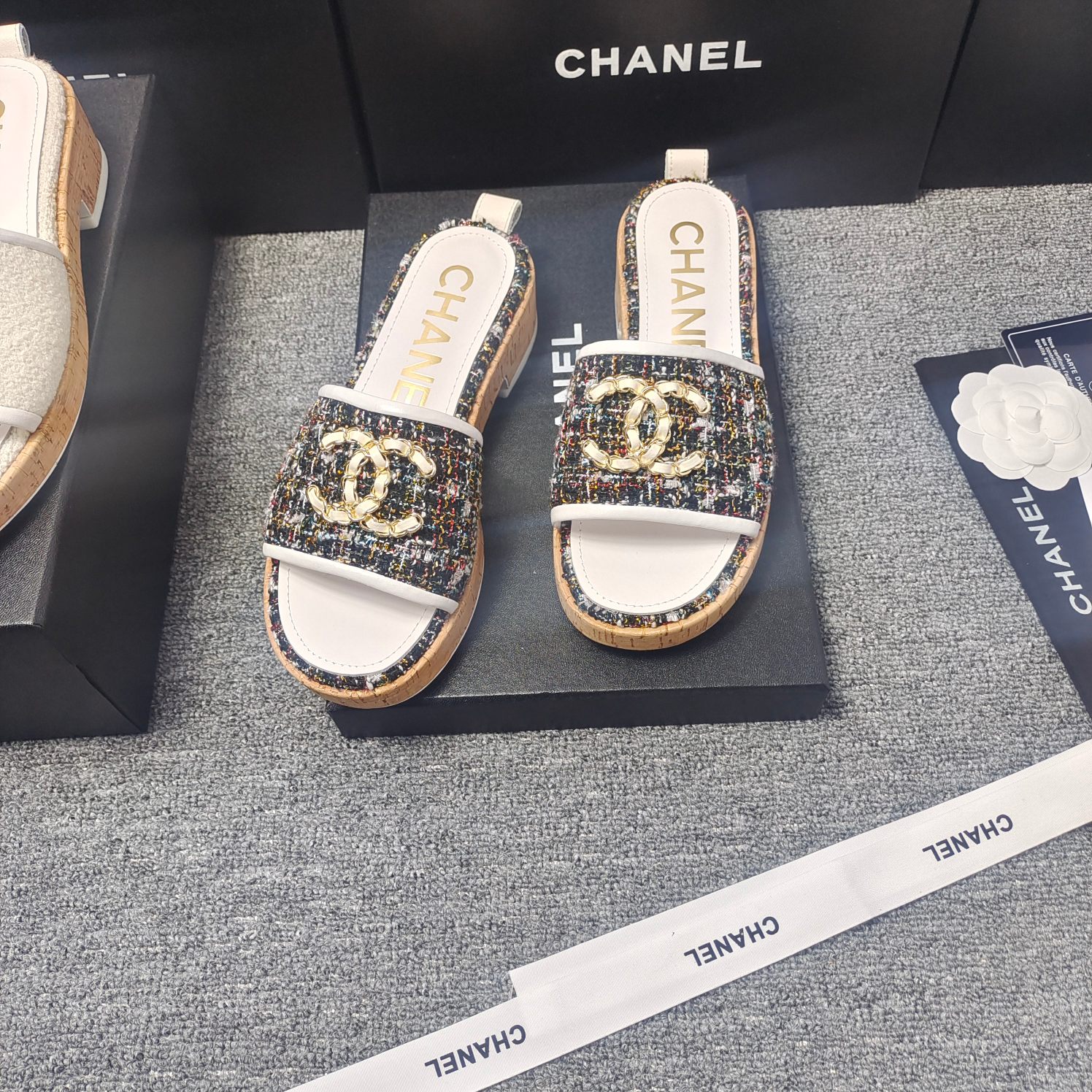 这款鞋子是AAAAA 1:1 质量 (非常棒). 使用了和原版一模一样的材料. 商标部分也保持了和香奈儿/Chanel一样. 图片拍摄是实物鞋子拍摄, 您所收到的实物保证和我们图片一模一样.