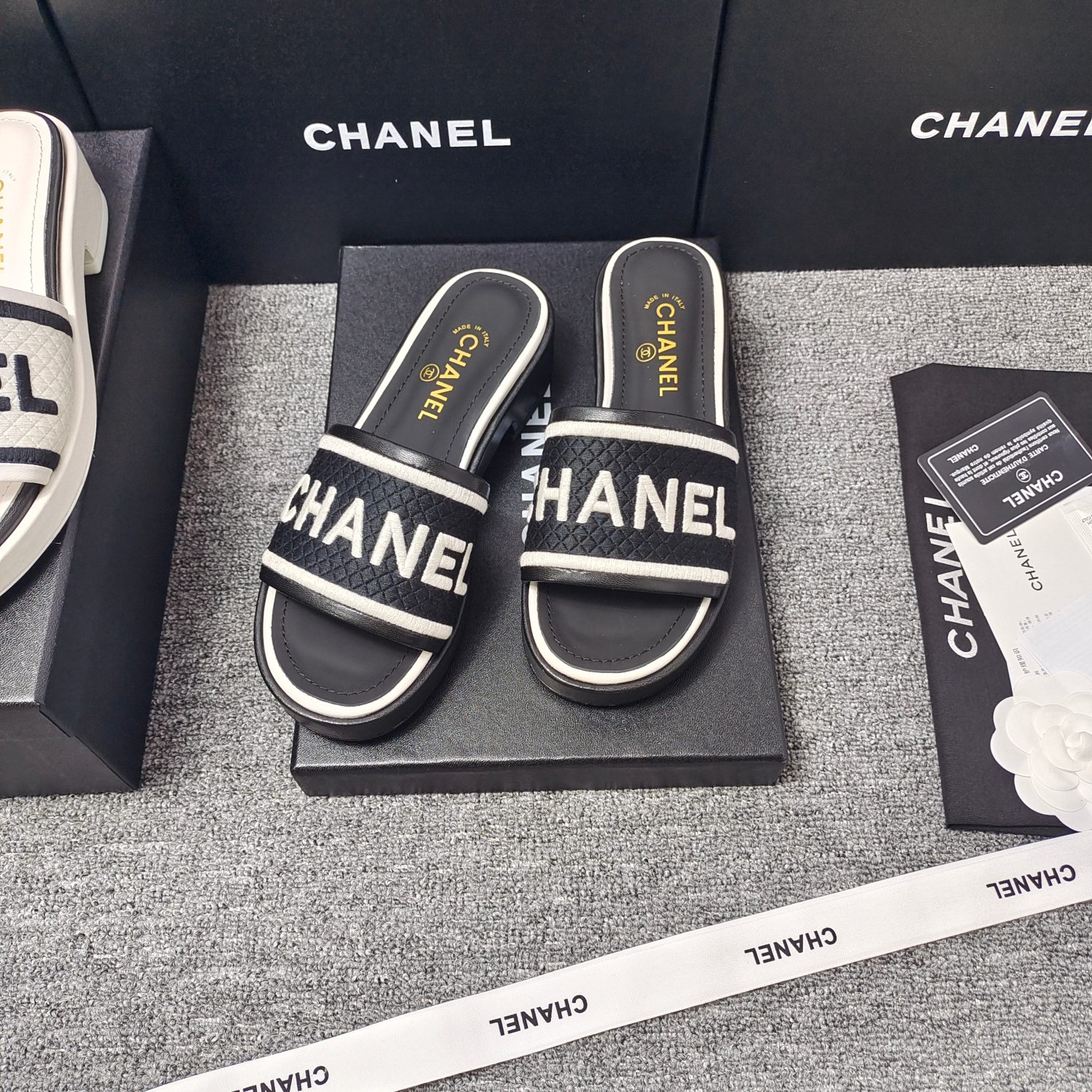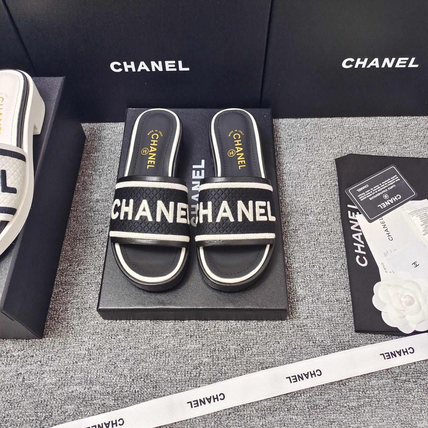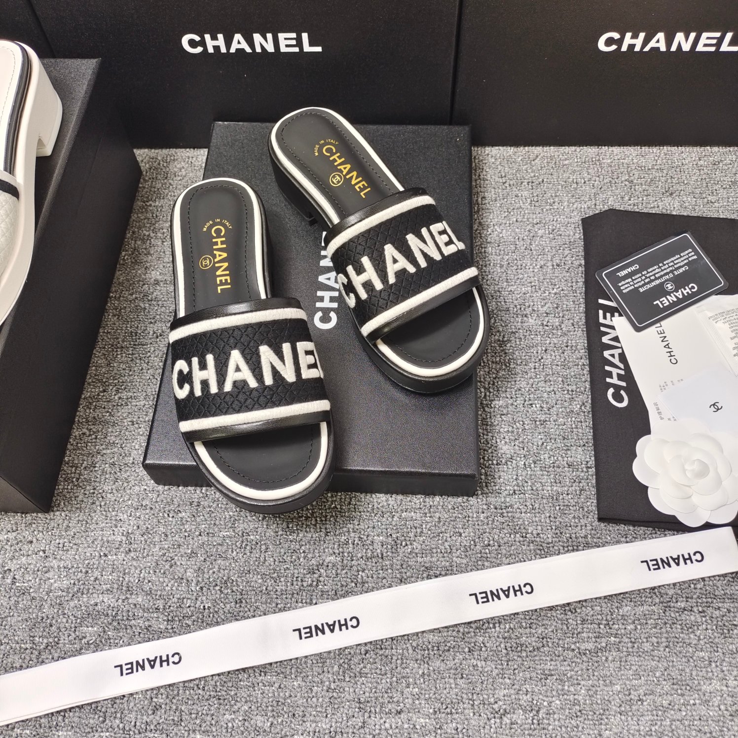这款鞋子是AAAAA 1:1 质量 (非常棒). 使用了和原版一模一样的材料. 商标部分也保持了和香奈儿/Chanel一样. 图片拍摄是实物鞋子拍摄, 您所收到的实物保证和我们图片一模一样.