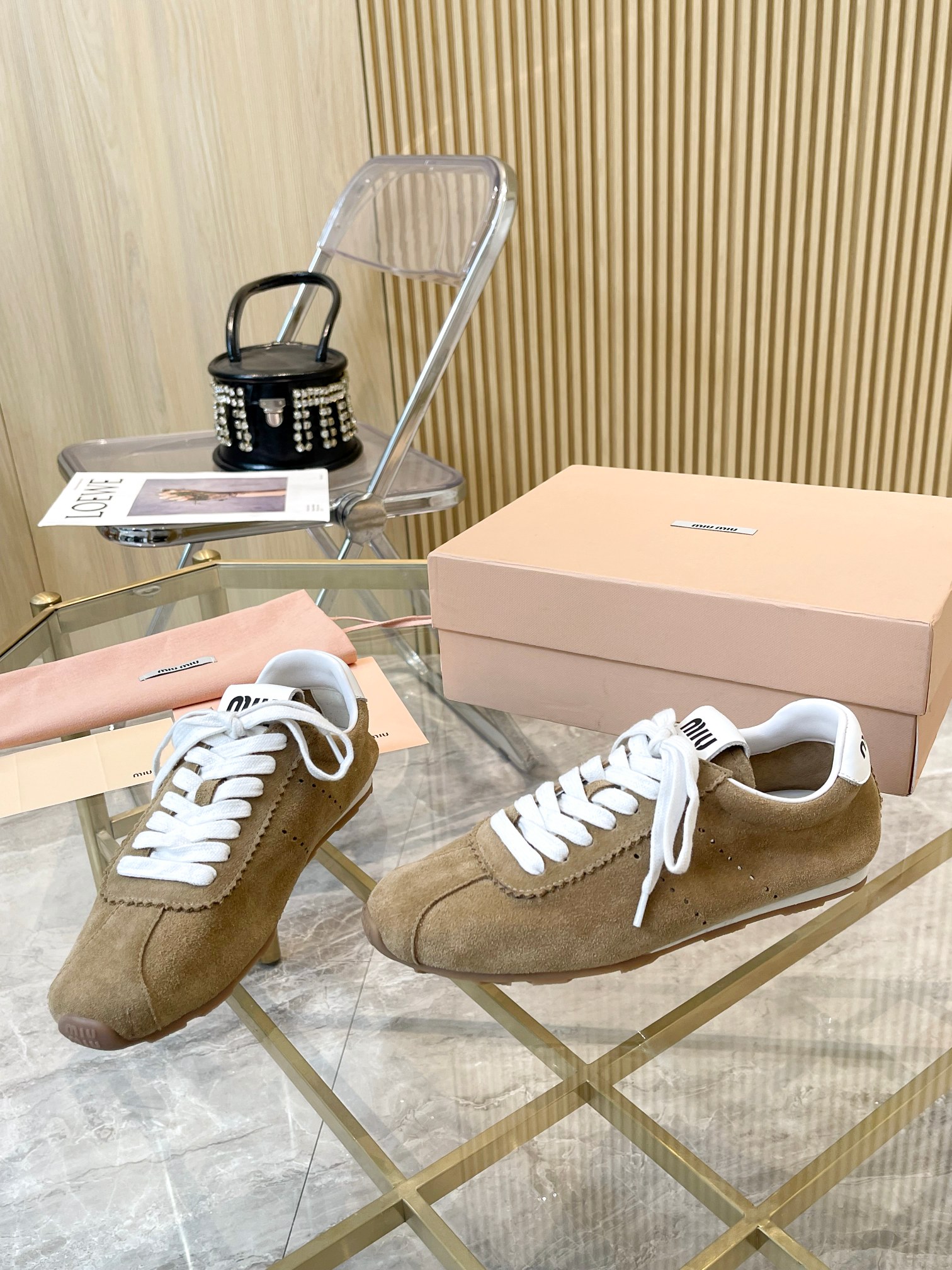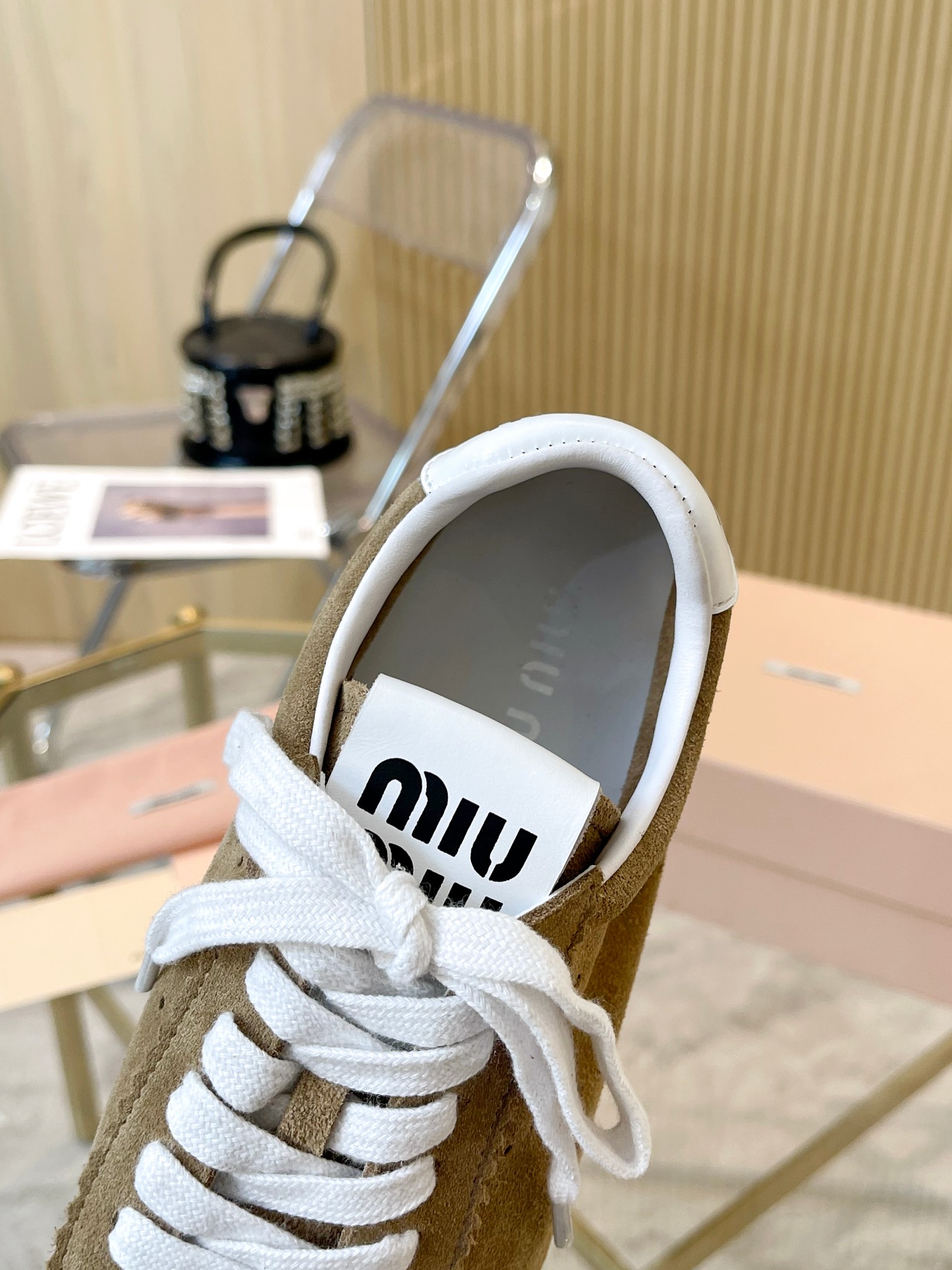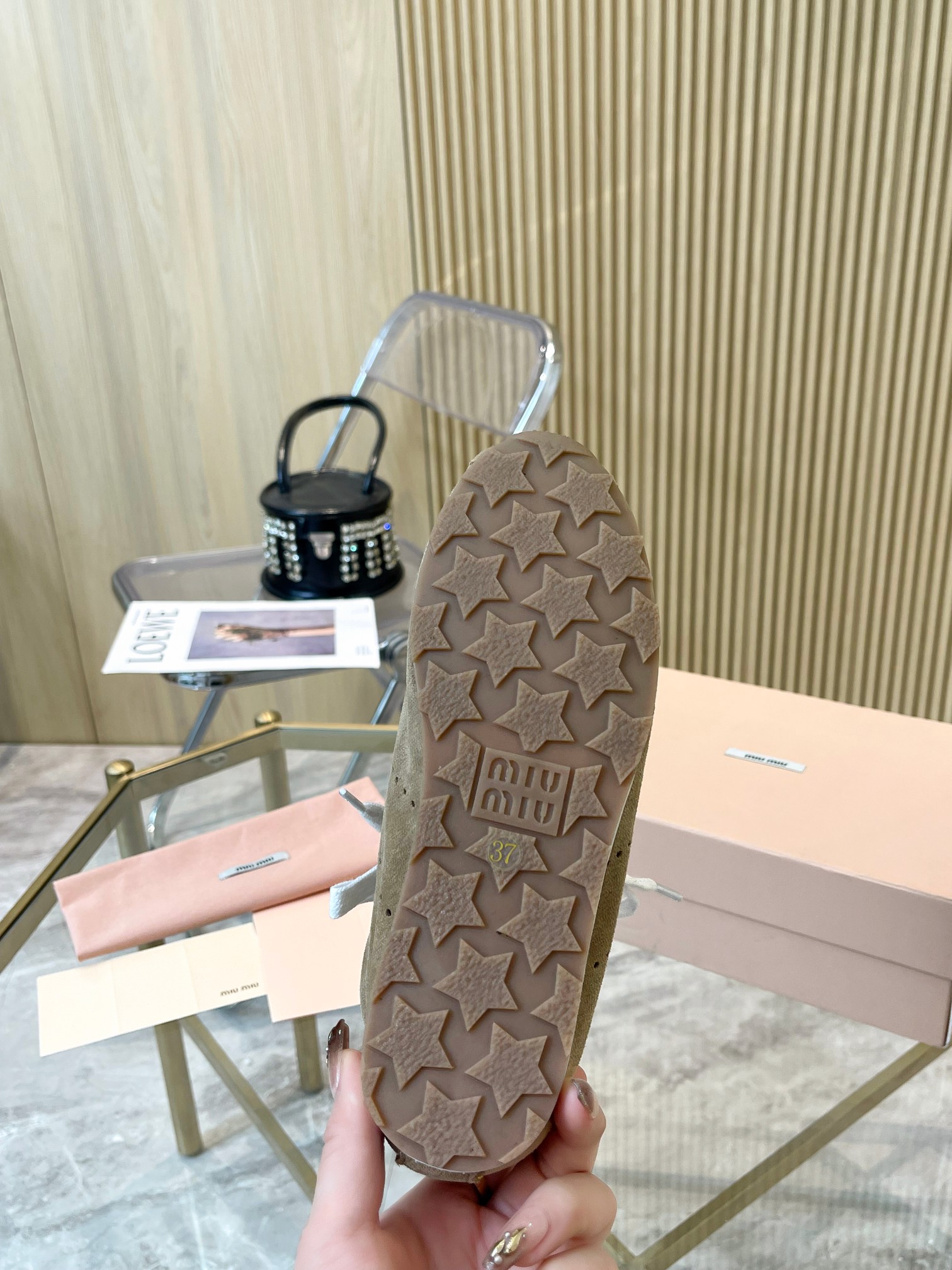 这款鞋子是AAAAA 1:1 质量 (非常棒). 使用了和原版一模一样的材料. 商标部分也保持了和缪缪/Miu Miu一样. 图片拍摄是实物鞋子拍摄, 您所收到的实物保证和我们图片一模一样.