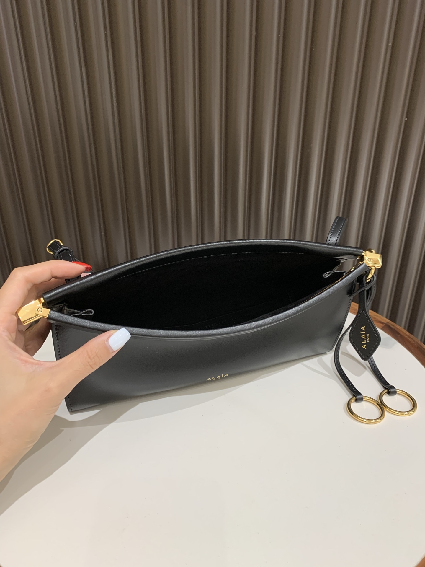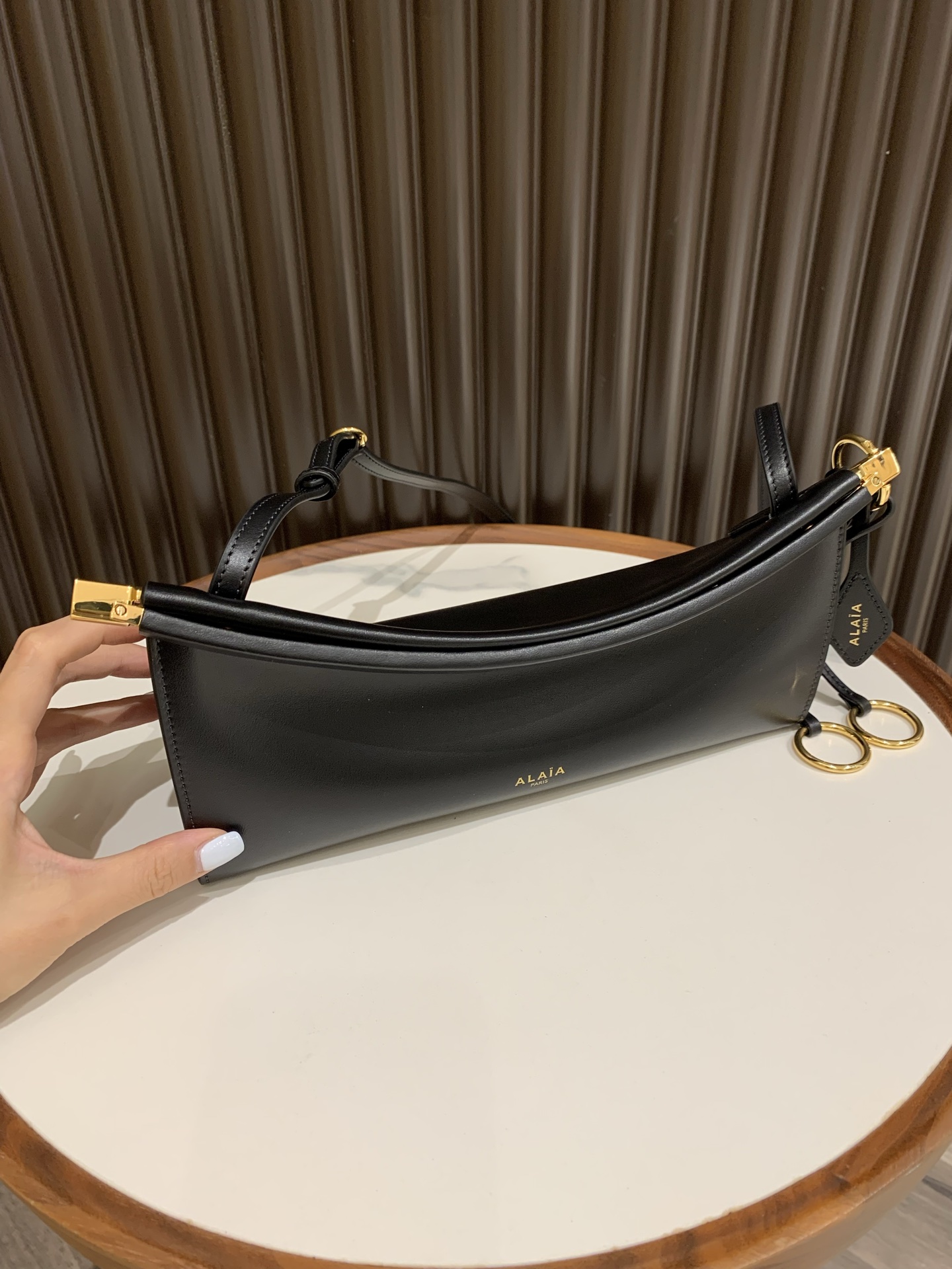 这款包包是AAAAA 1:1 质量 (非常棒). 使用了和原版一模一样的材料. 商标部分也保持了和Alaia一样. 图片拍摄是实物包包拍摄, 您所收到的实物保证和我们图片一模一样.