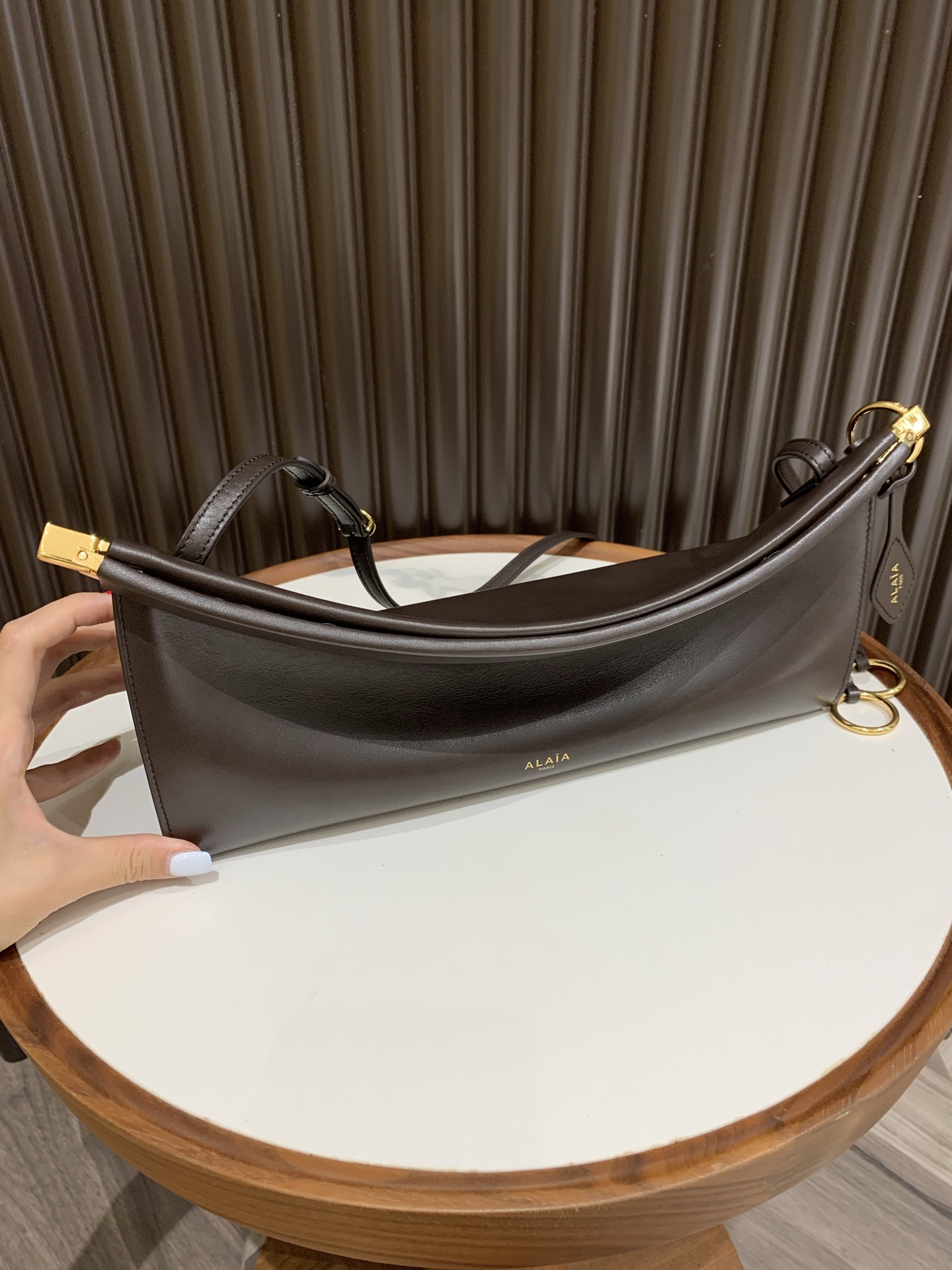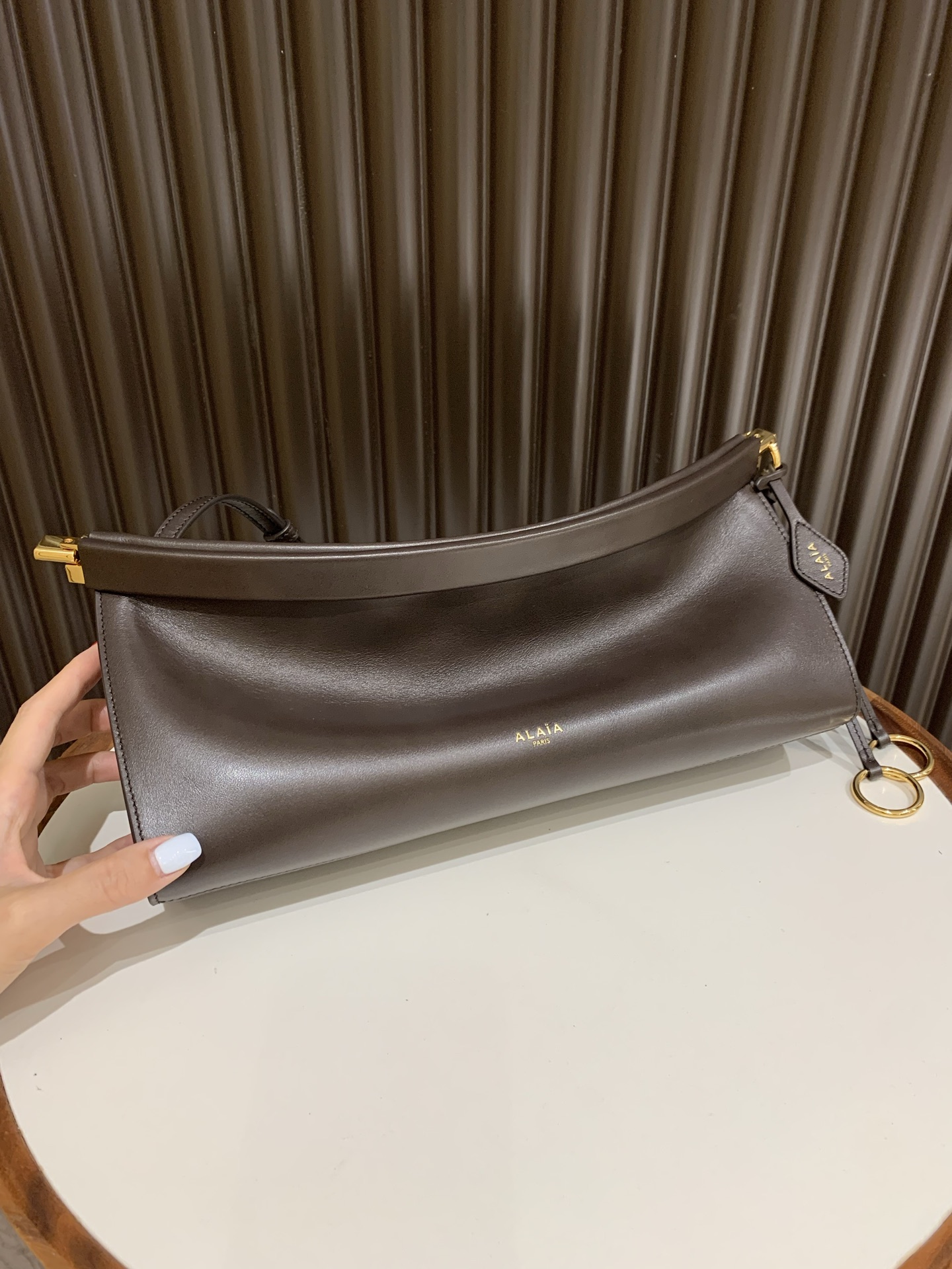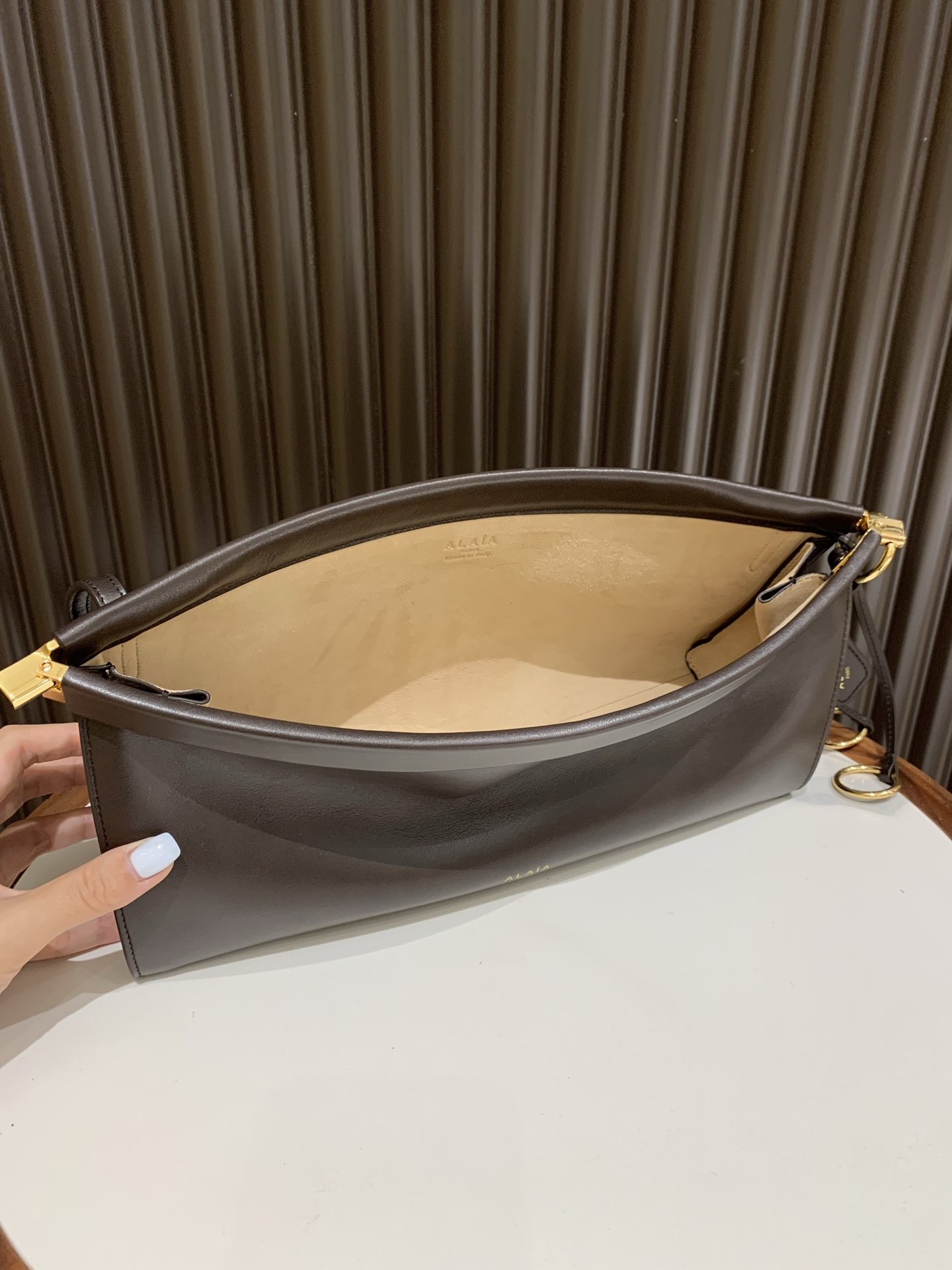 这款包包是AAAAA 1:1 质量 (非常棒). 使用了和原版一模一样的材料. 商标部分也保持了和Alaia一样. 图片拍摄是实物包包拍摄, 您所收到的实物保证和我们图片一模一样.