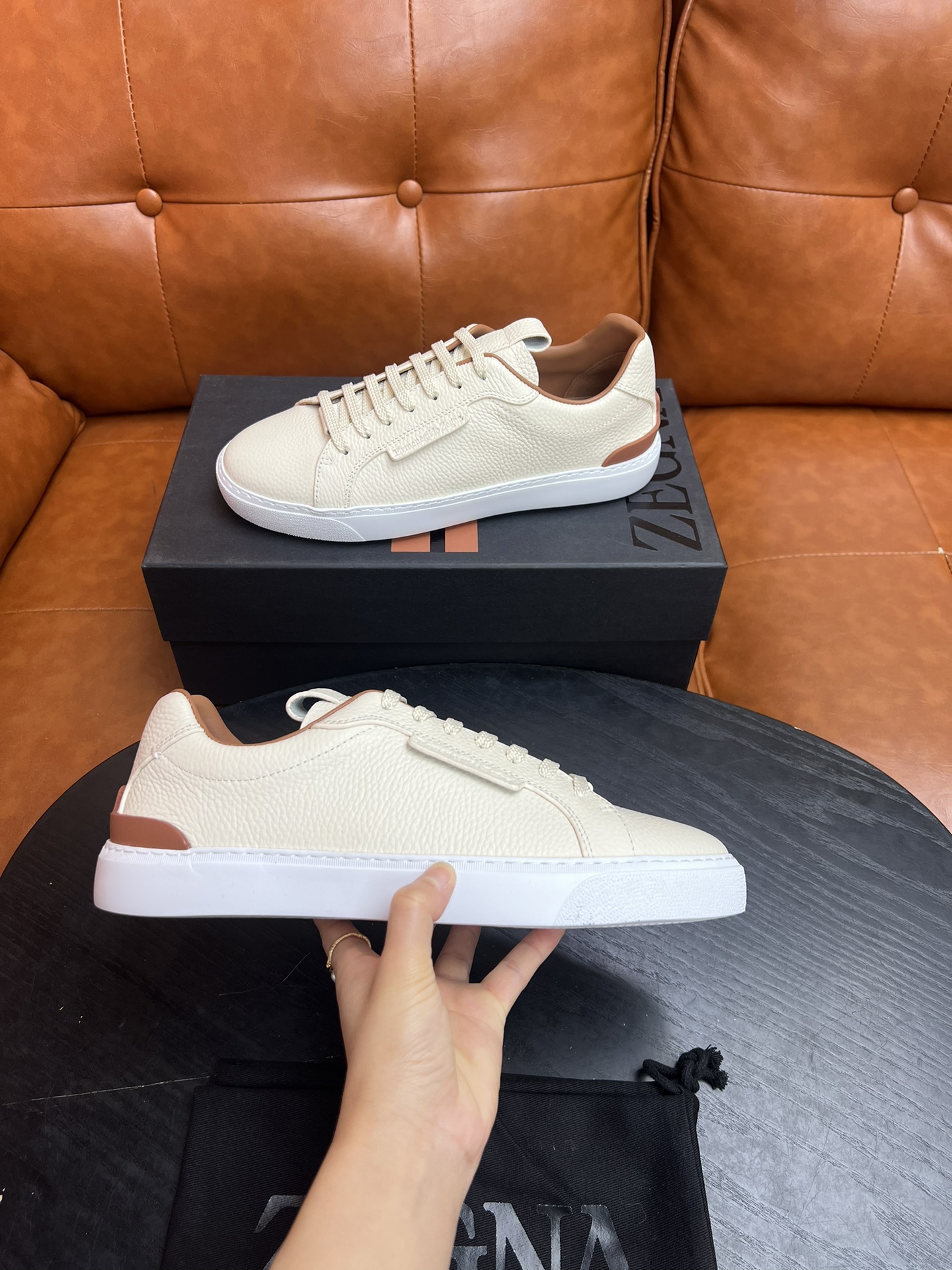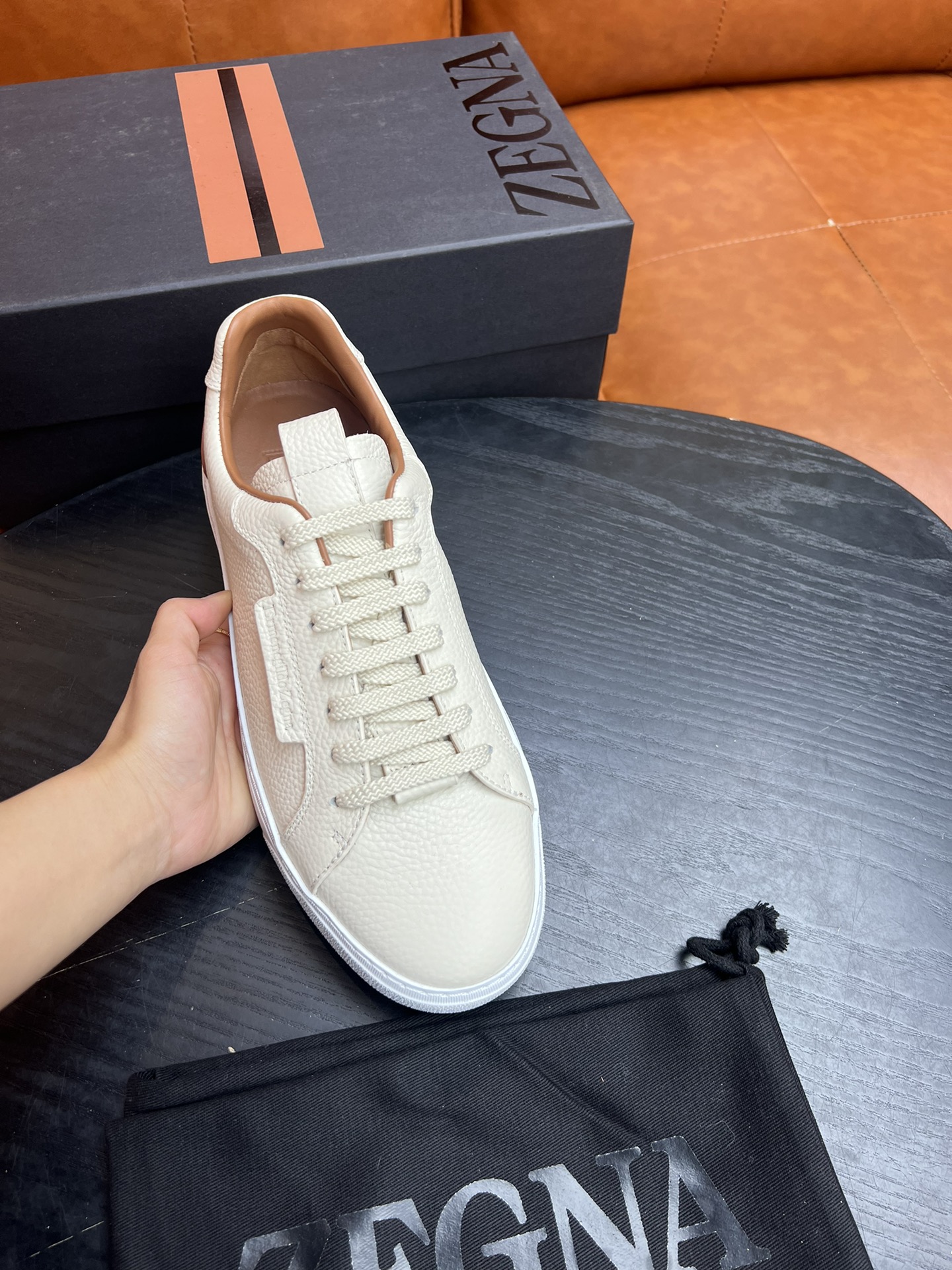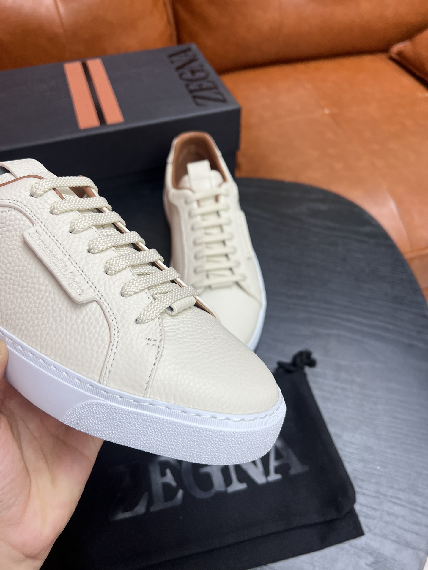 这款鞋子是AAAAA 1:1 质量 (非常棒). 使用了和原版一模一样的材料. 商标部分也保持了和杰尼亚/Zegna一样. 图片拍摄是实物鞋子拍摄, 您所收到的实物保证和我们图片一模一样.