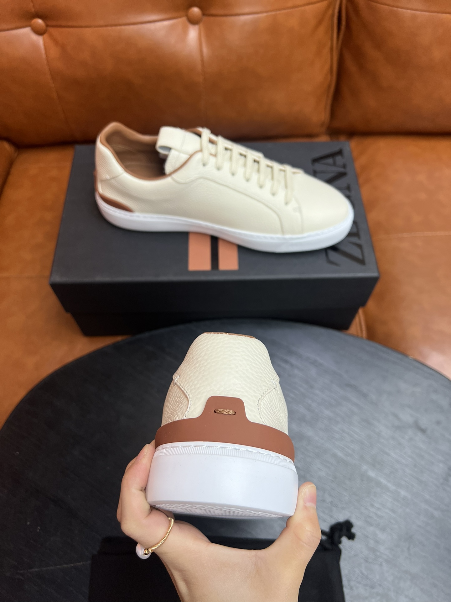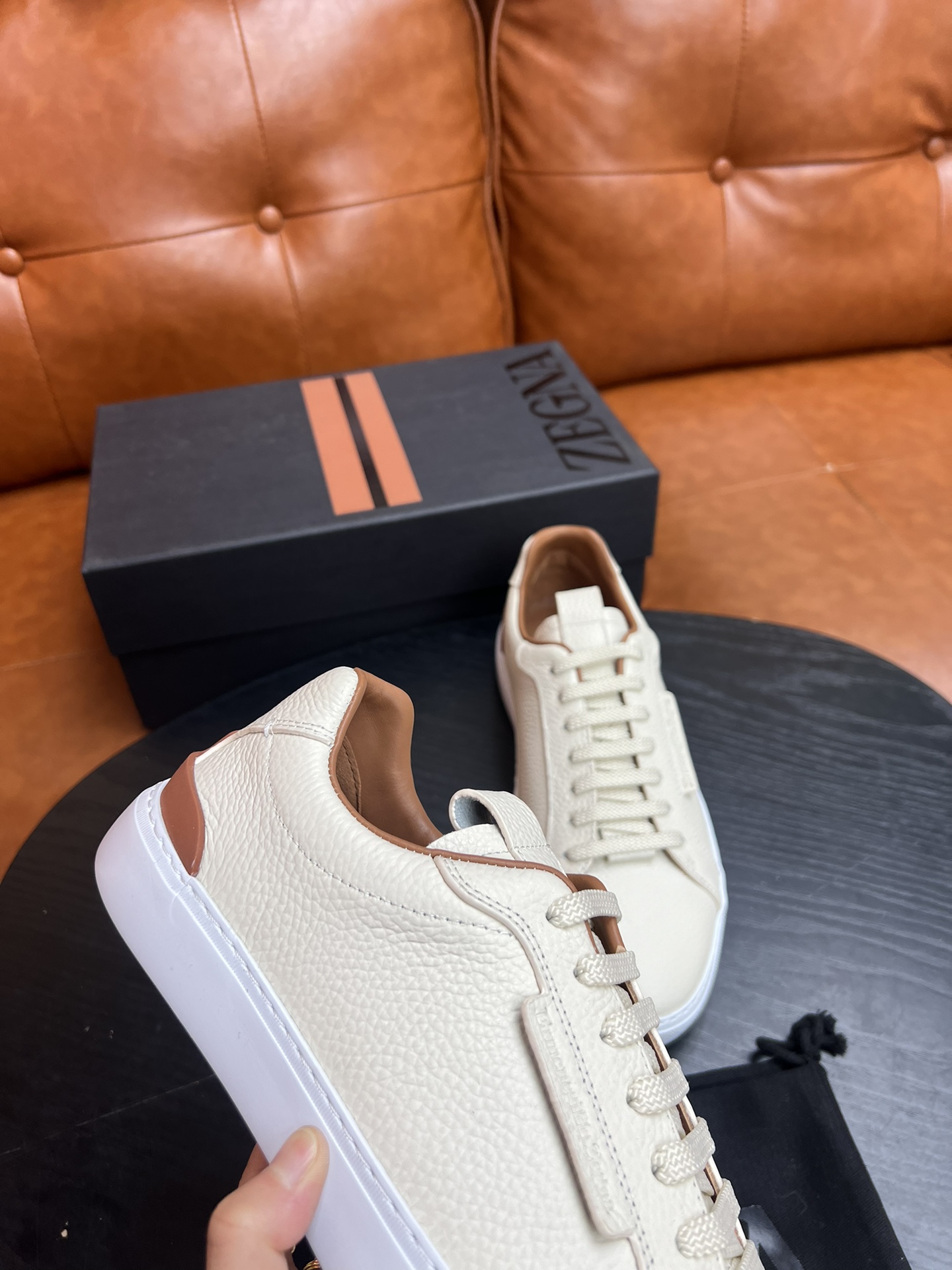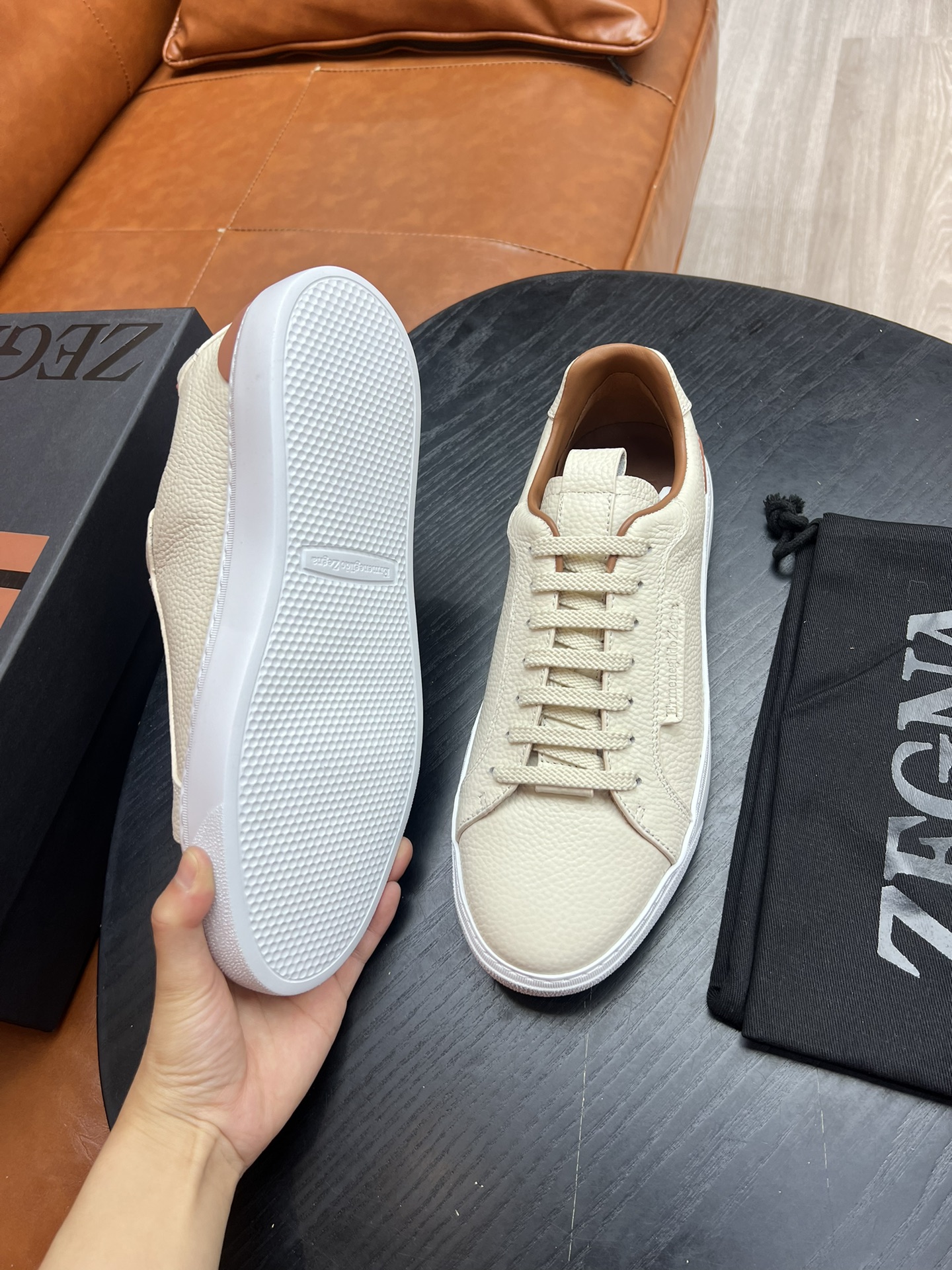 这款鞋子是AAAAA 1:1 质量 (非常棒). 使用了和原版一模一样的材料. 商标部分也保持了和杰尼亚/Zegna一样. 图片拍摄是实物鞋子拍摄, 您所收到的实物保证和我们图片一模一样.