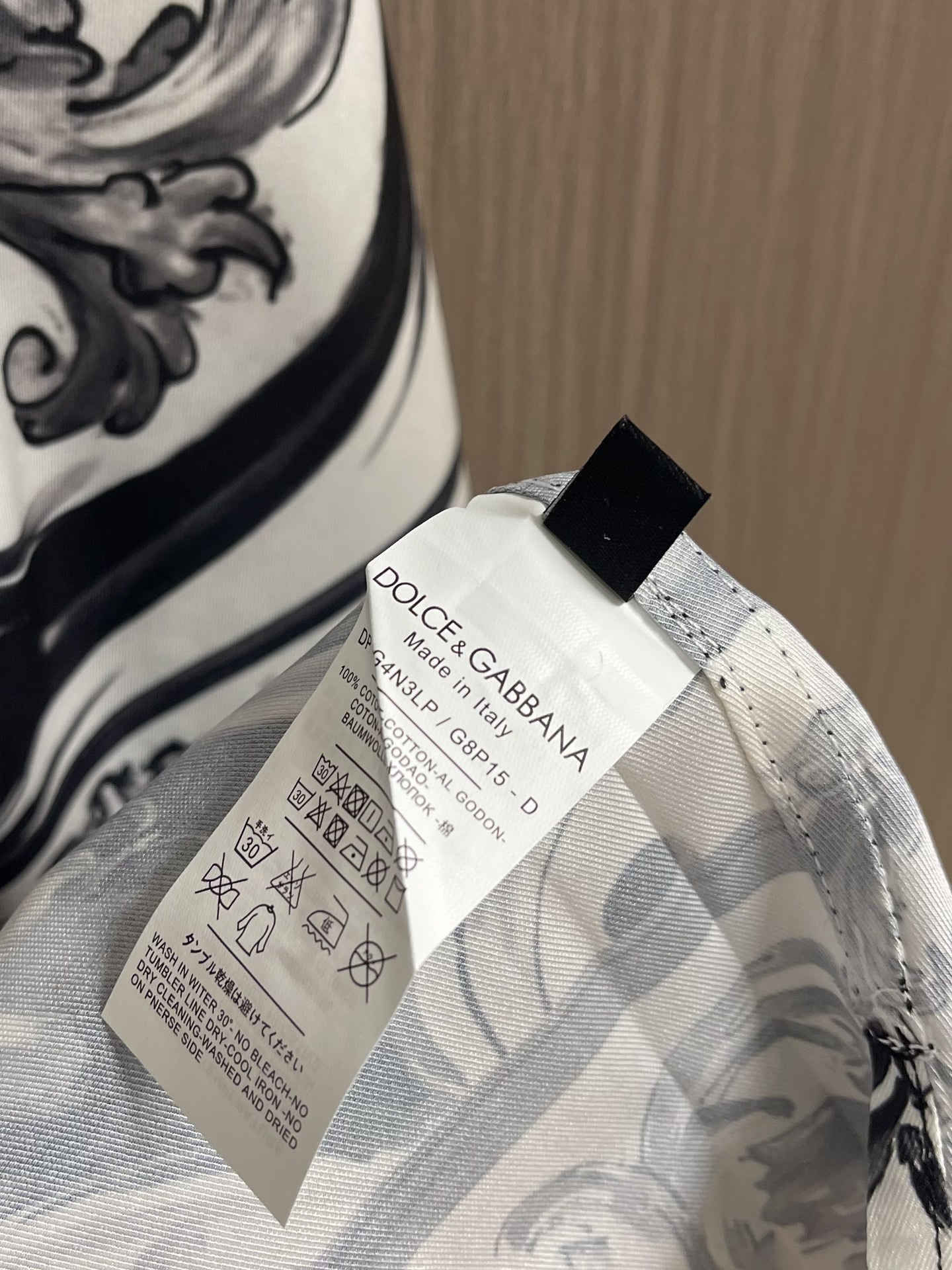这款衣服是AAAAA 1:1 质量 (非常棒). 使用了和原版一模一样的材料. 商标部分也保持了和杜嘉班纳/Dolce&Gabbana一样. 图片拍摄是实物衣服拍摄, 您所收到的实物保证和我们图片一模一样.