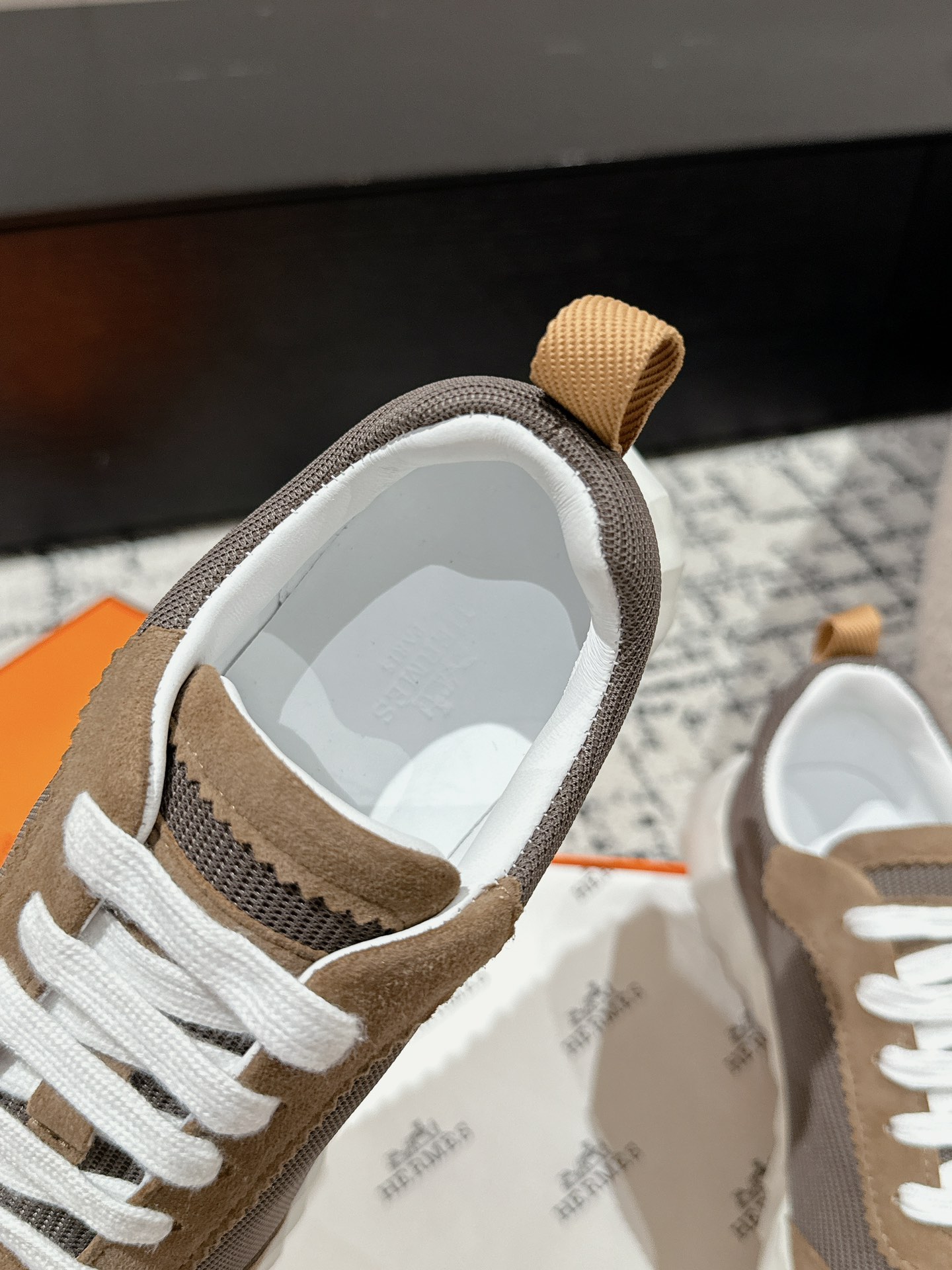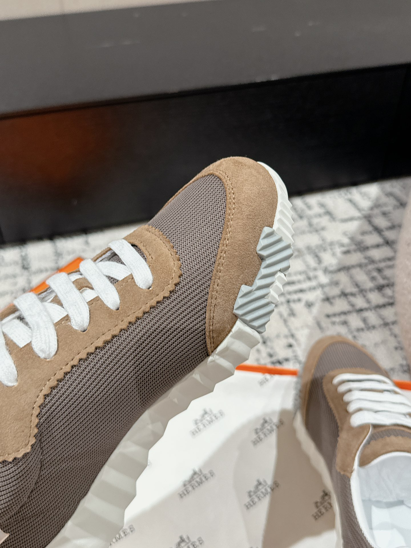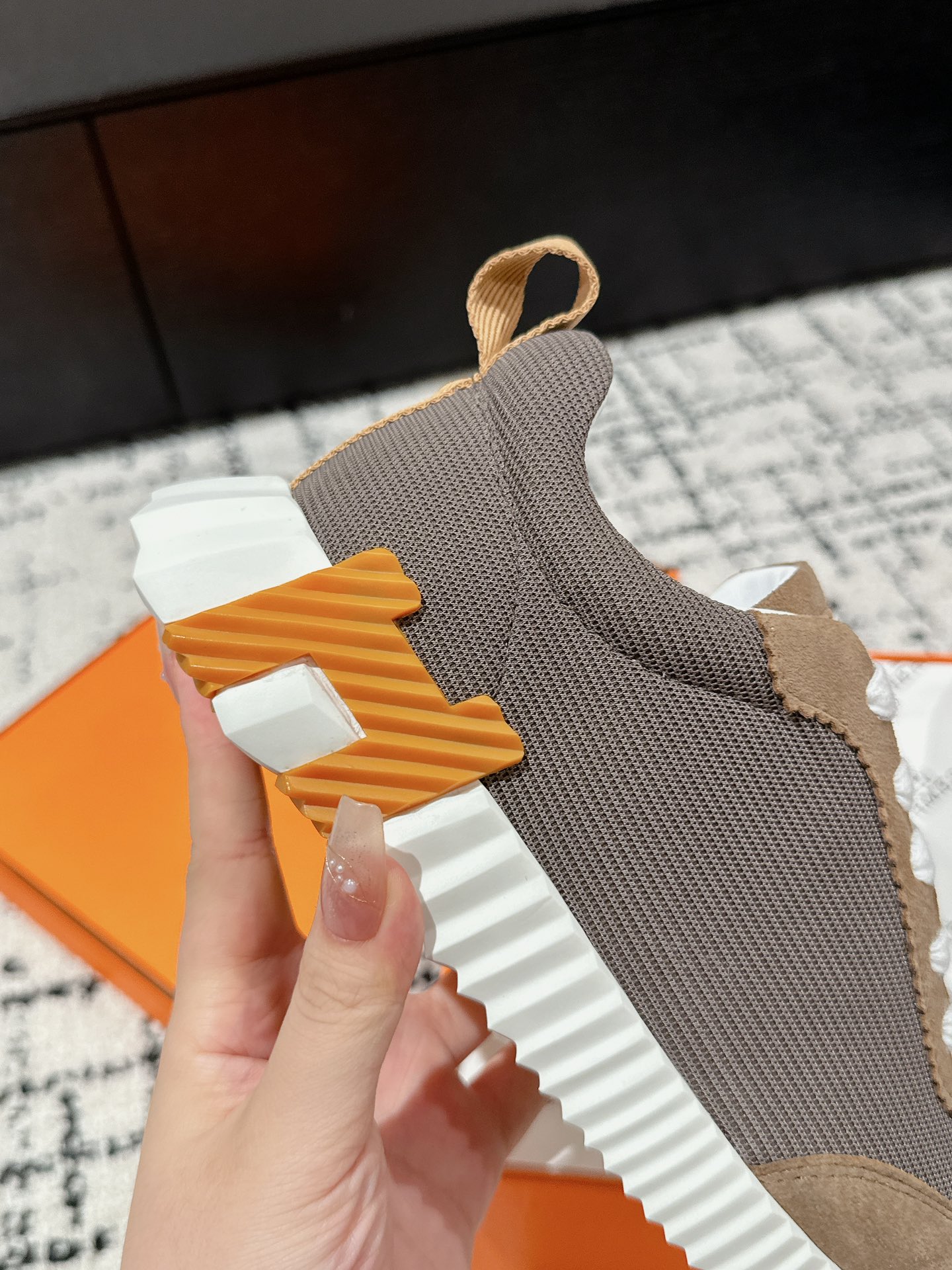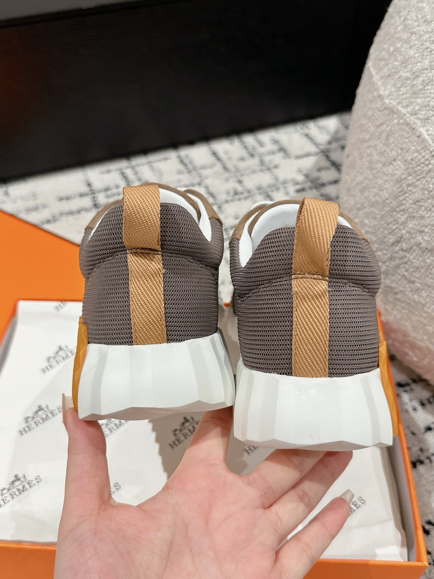 这款鞋子是AAAAA 1:1 质量 (非常棒). 使用了和原版一模一样的材料. 商标部分也保持了和爱马仕/Hermes一样. 图片拍摄是实物鞋子拍摄, 您所收到的实物保证和我们图片一模一样.