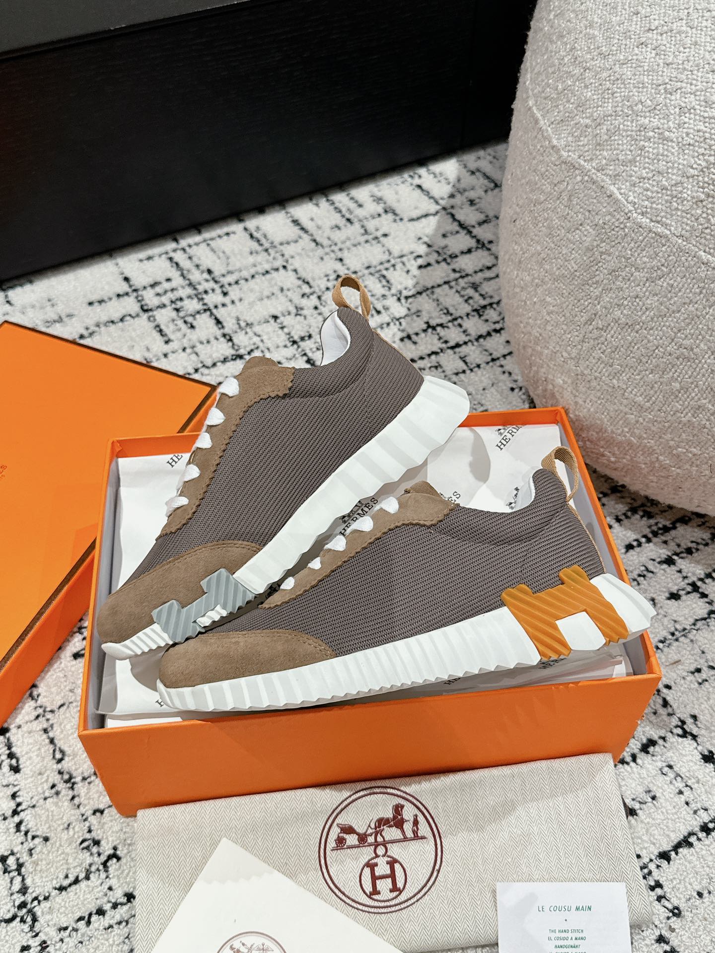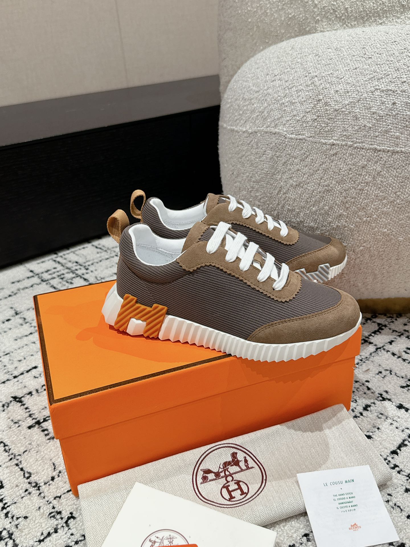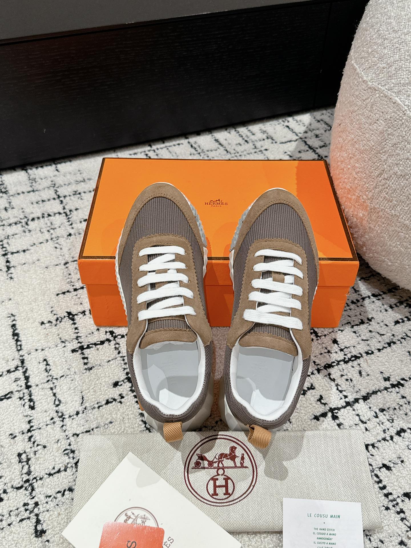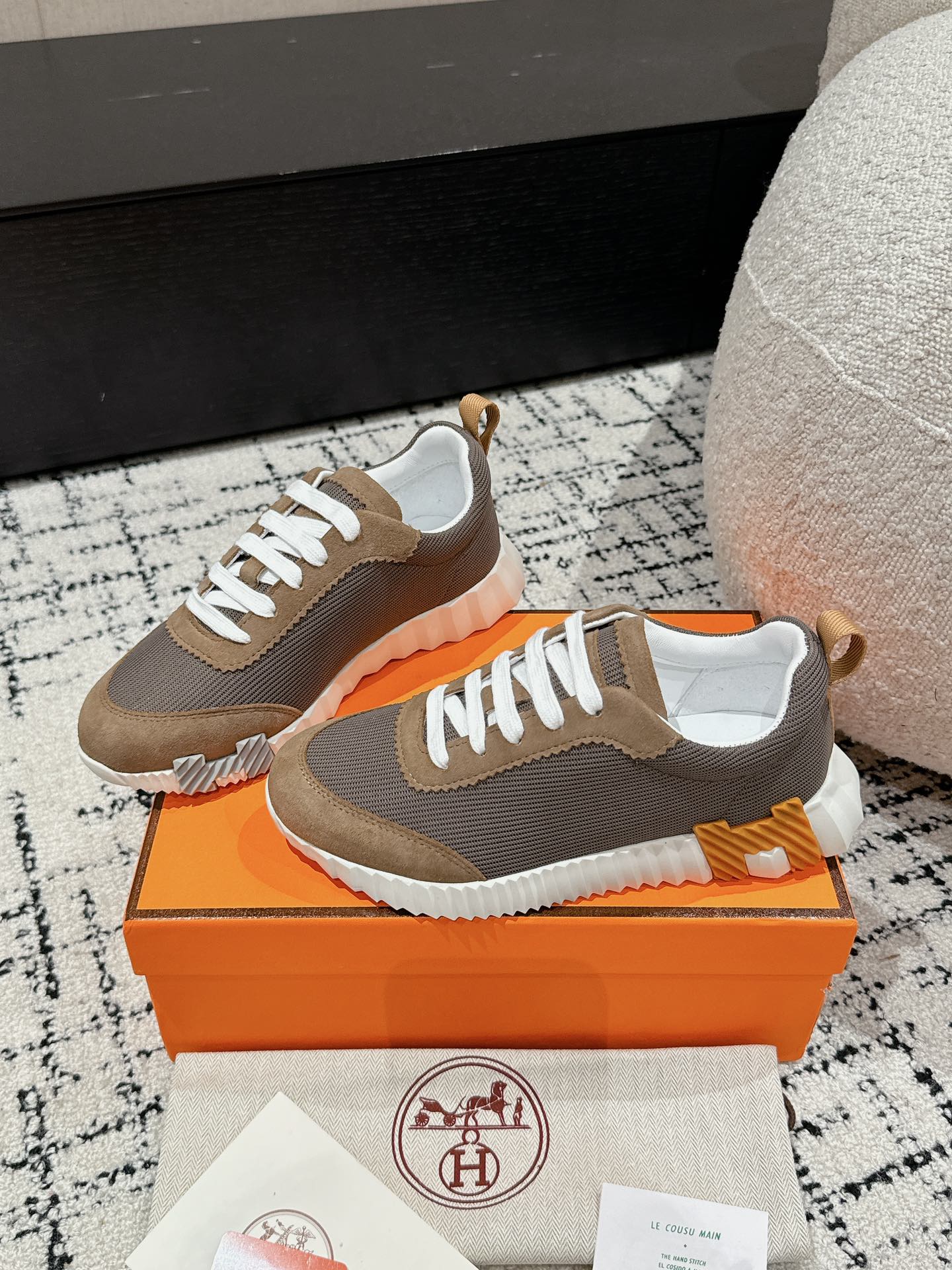 这款鞋子是AAAAA 1:1 质量 (非常棒). 使用了和原版一模一样的材料. 商标部分也保持了和爱马仕/Hermes一样. 图片拍摄是实物鞋子拍摄, 您所收到的实物保证和我们图片一模一样.