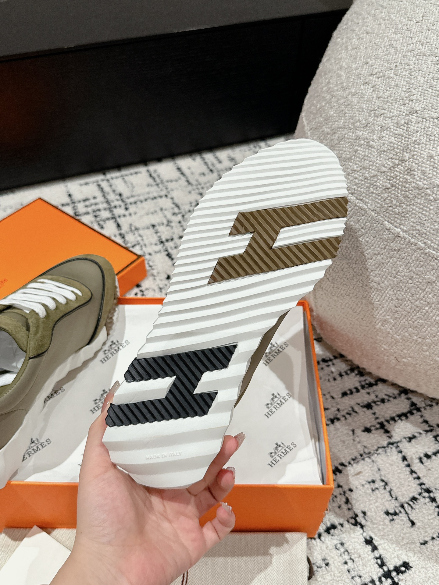 这款鞋子是AAAAA 1:1 质量 (非常棒). 使用了和原版一模一样的材料. 商标部分也保持了和爱马仕/Hermes一样. 图片拍摄是实物鞋子拍摄, 您所收到的实物保证和我们图片一模一样.