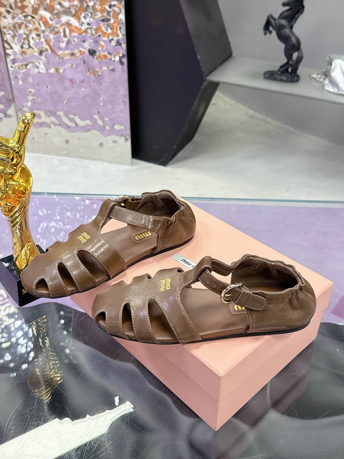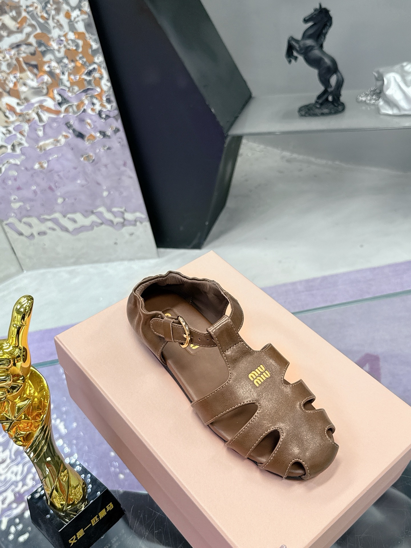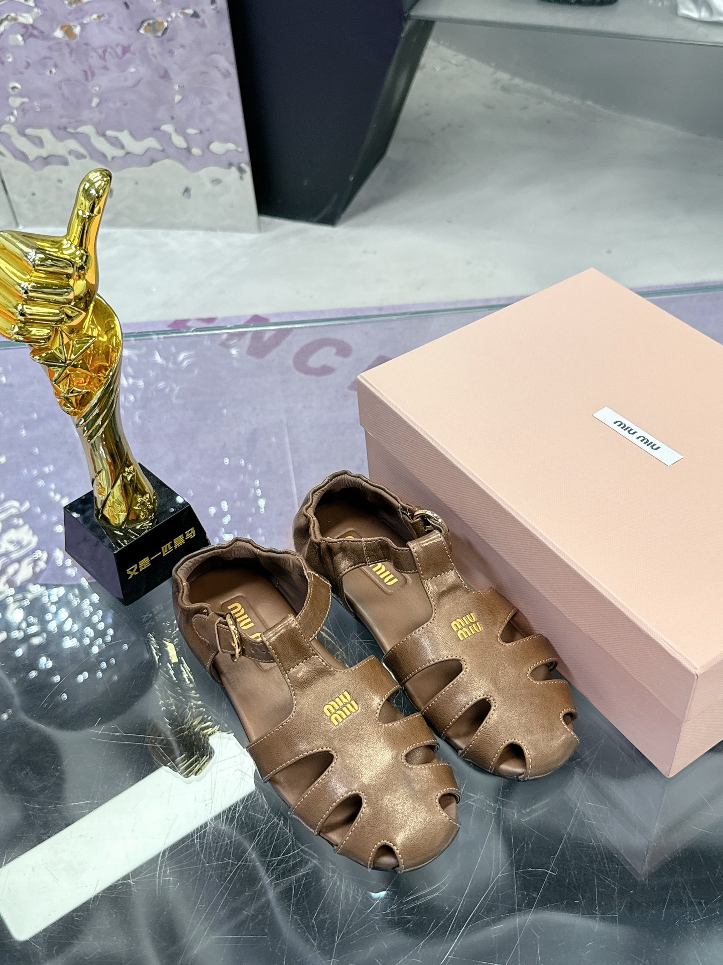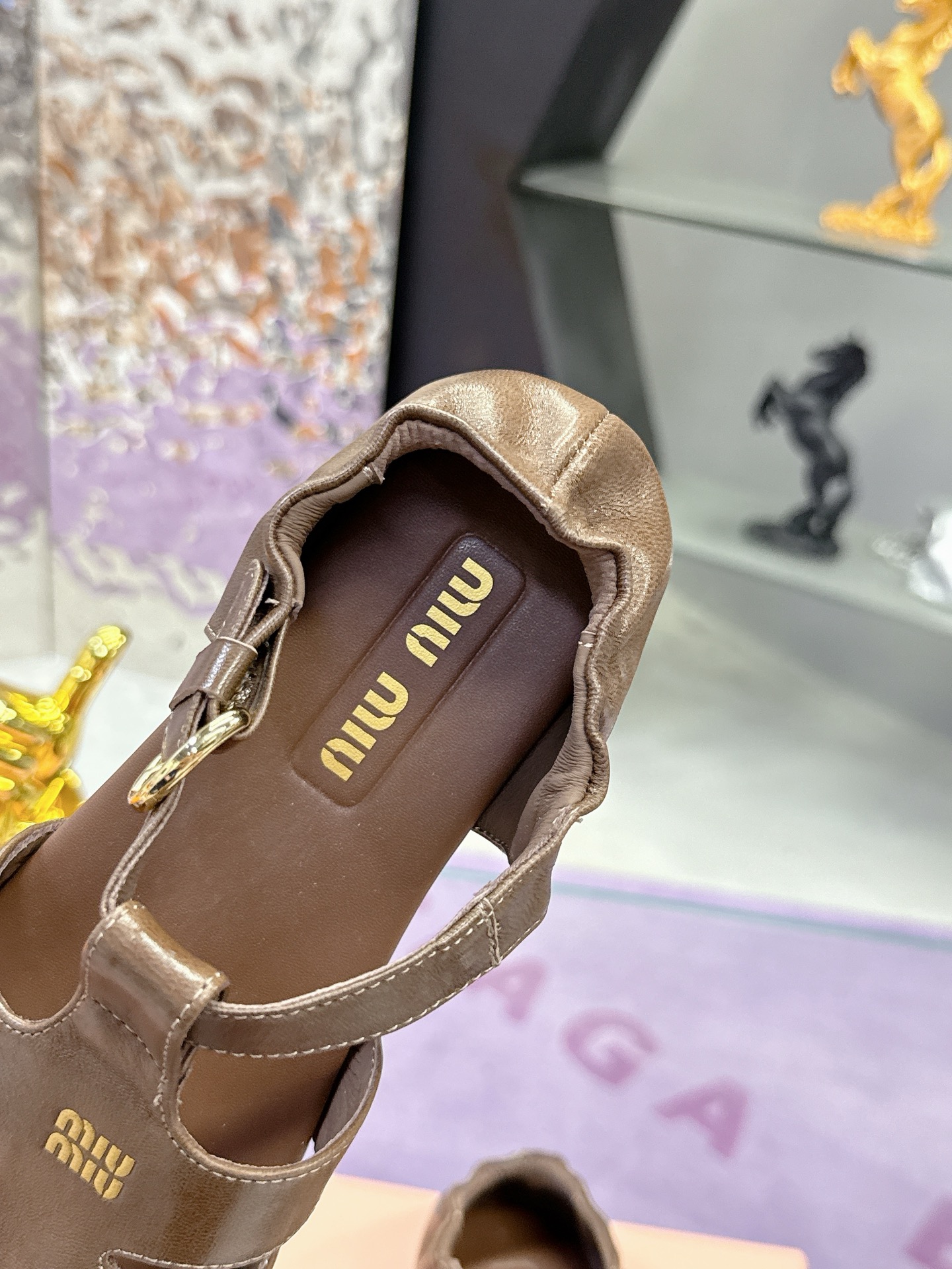 这款鞋子是AAAAA 1:1 质量 (非常棒). 使用了和原版一模一样的材料. 商标部分也保持了和缪缪/Miu Miu一样. 图片拍摄是实物鞋子拍摄, 您所收到的实物保证和我们图片一模一样.