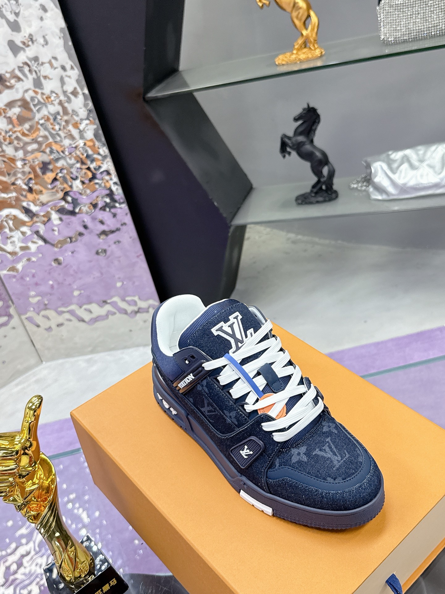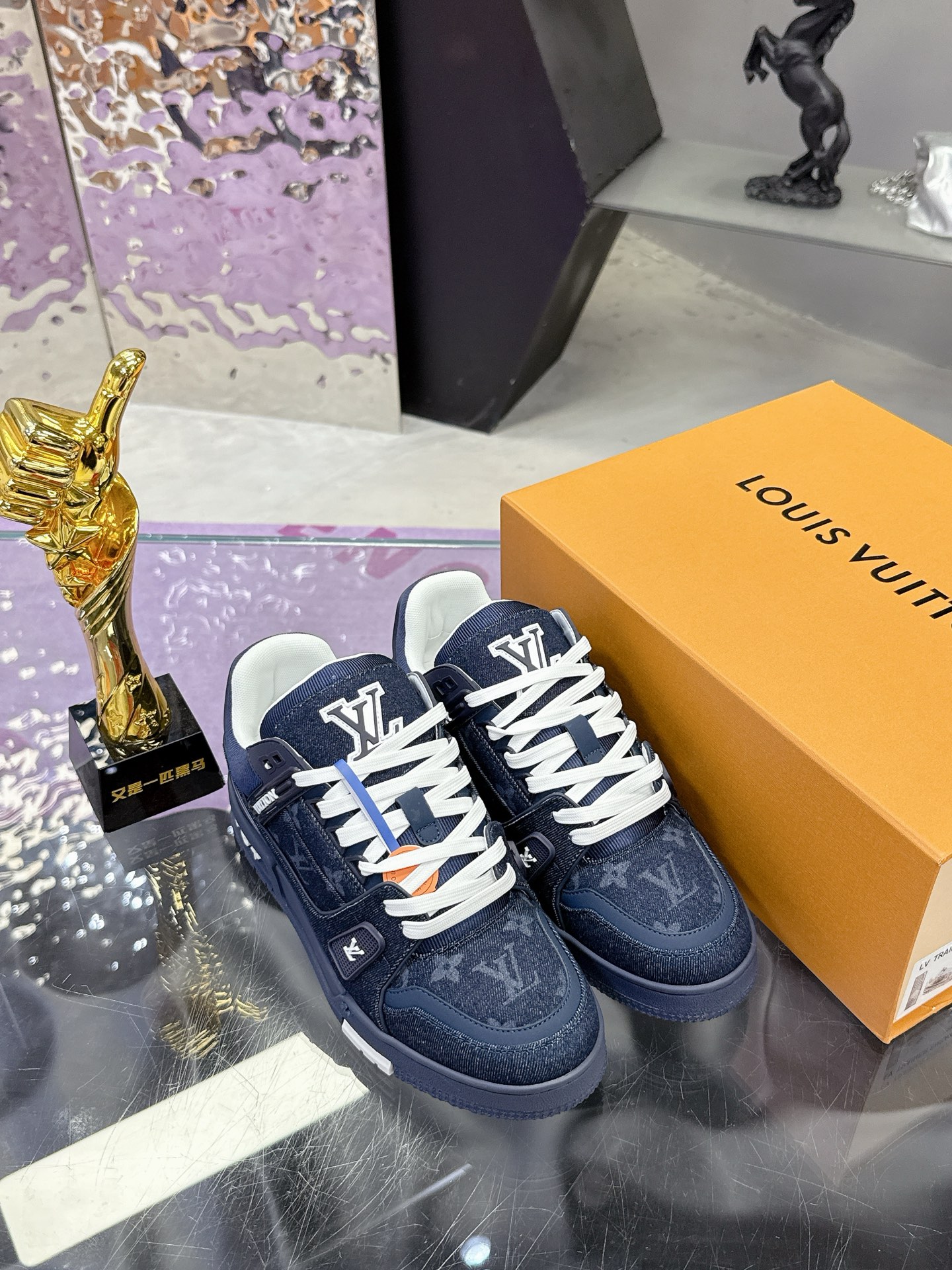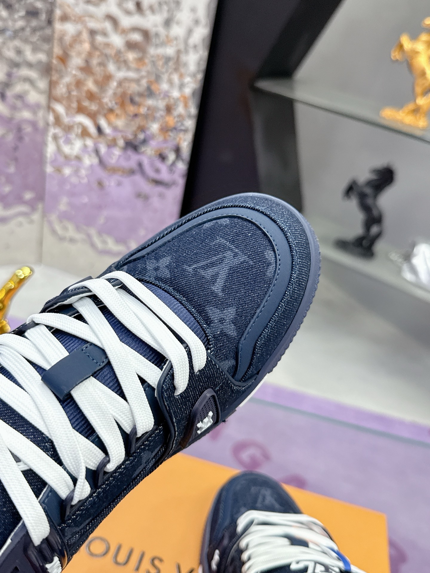 这款鞋子是AAAAA 1:1 质量 (非常棒). 使用了和原版一模一样的材料. 商标部分也保持了和路易威登/Louis Vuitton一样. 图片拍摄是实物鞋子拍摄, 您所收到的实物保证和我们图片一模一样.