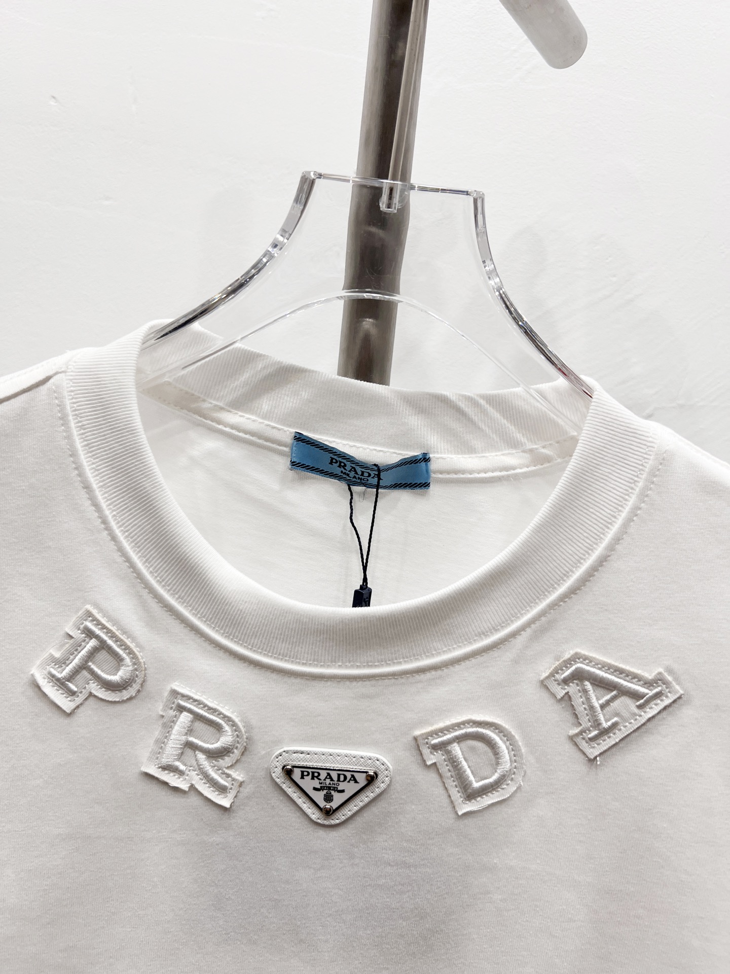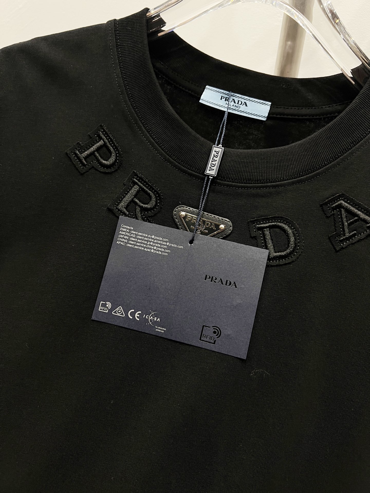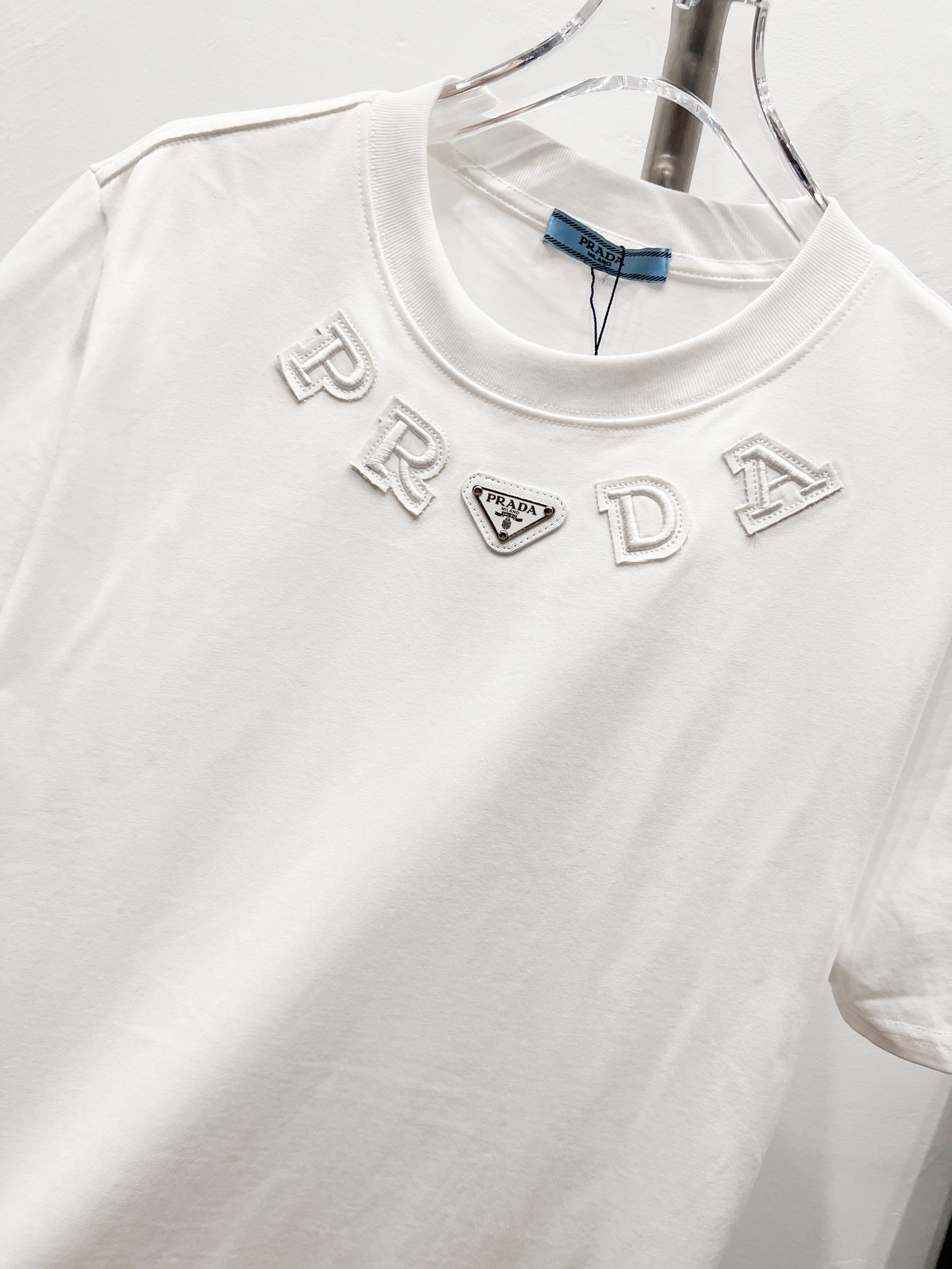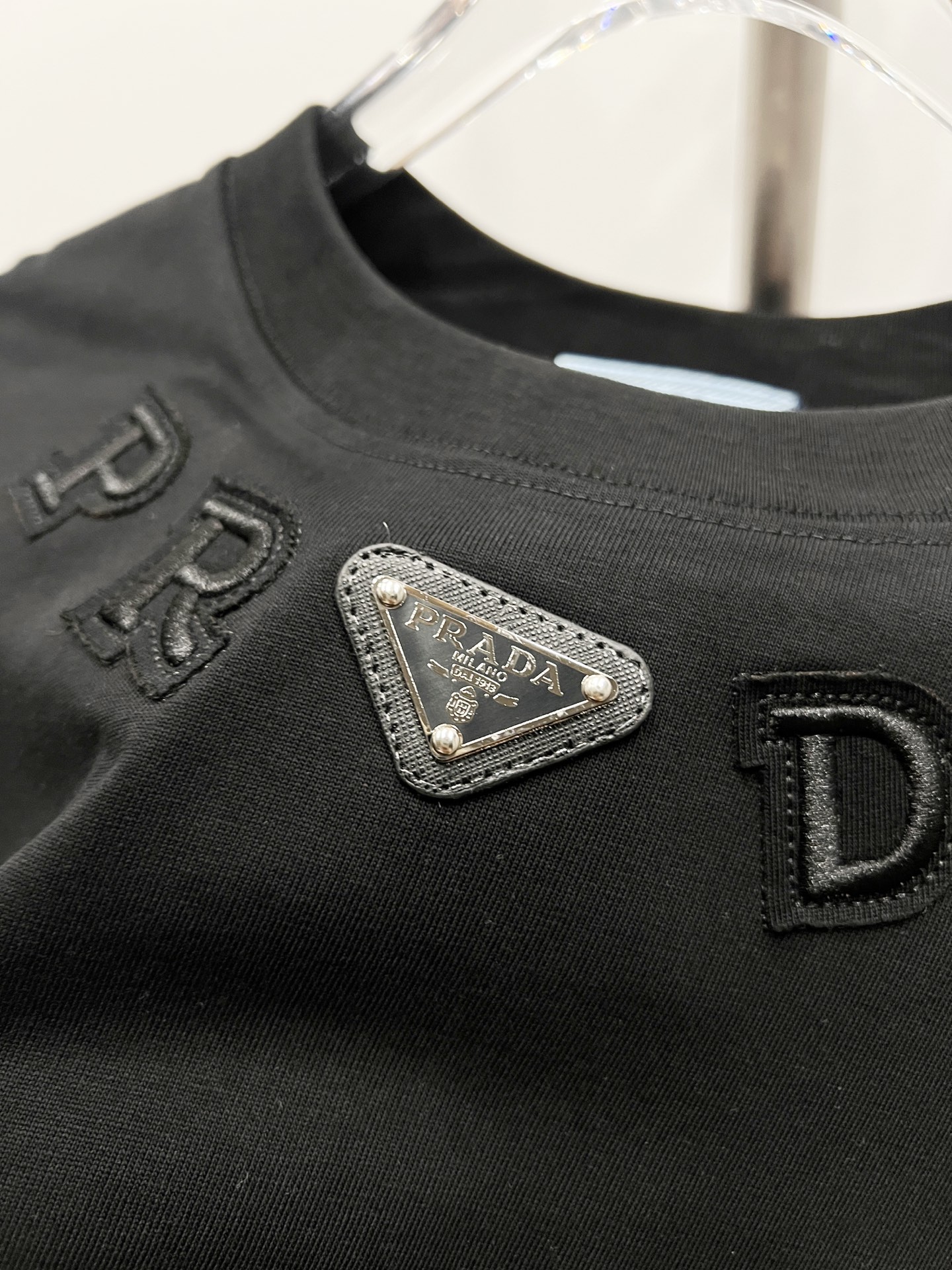 这款衣服是AAAAA 1:1 质量 (非常棒). 使用了和原版一模一样的材料. 商标部分也保持了和普拉达/Prada一样. 图片拍摄是实物衣服拍摄, 您所收到的实物保证和我们图片一模一样.