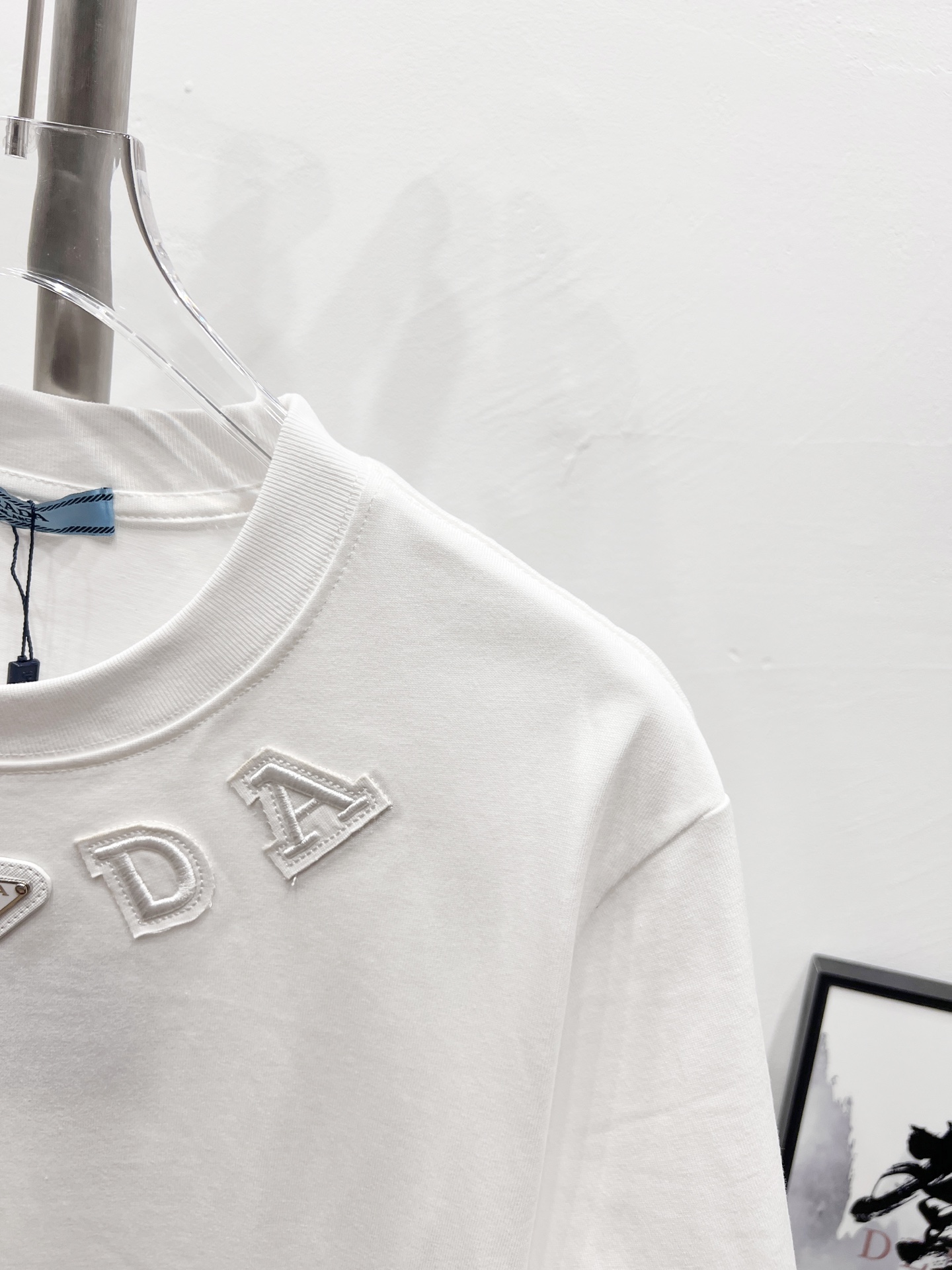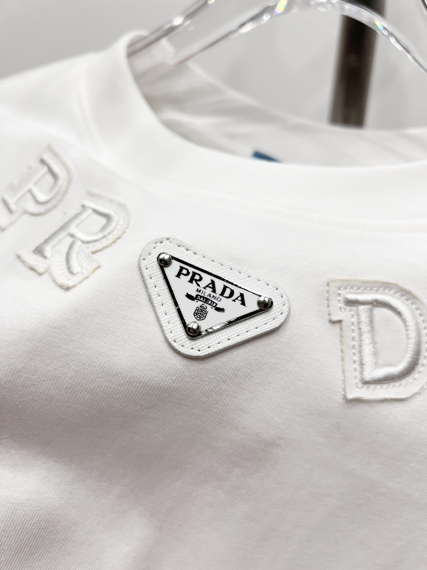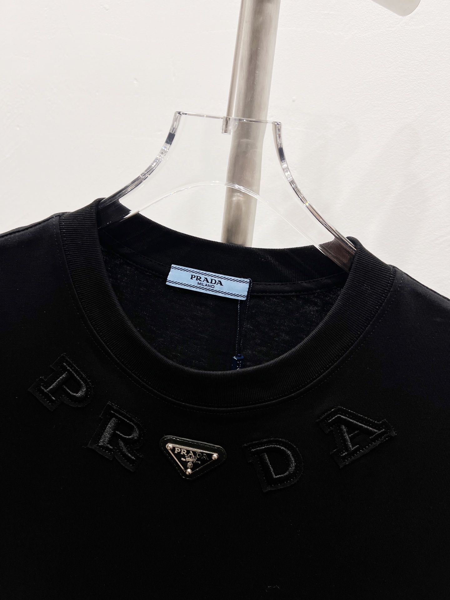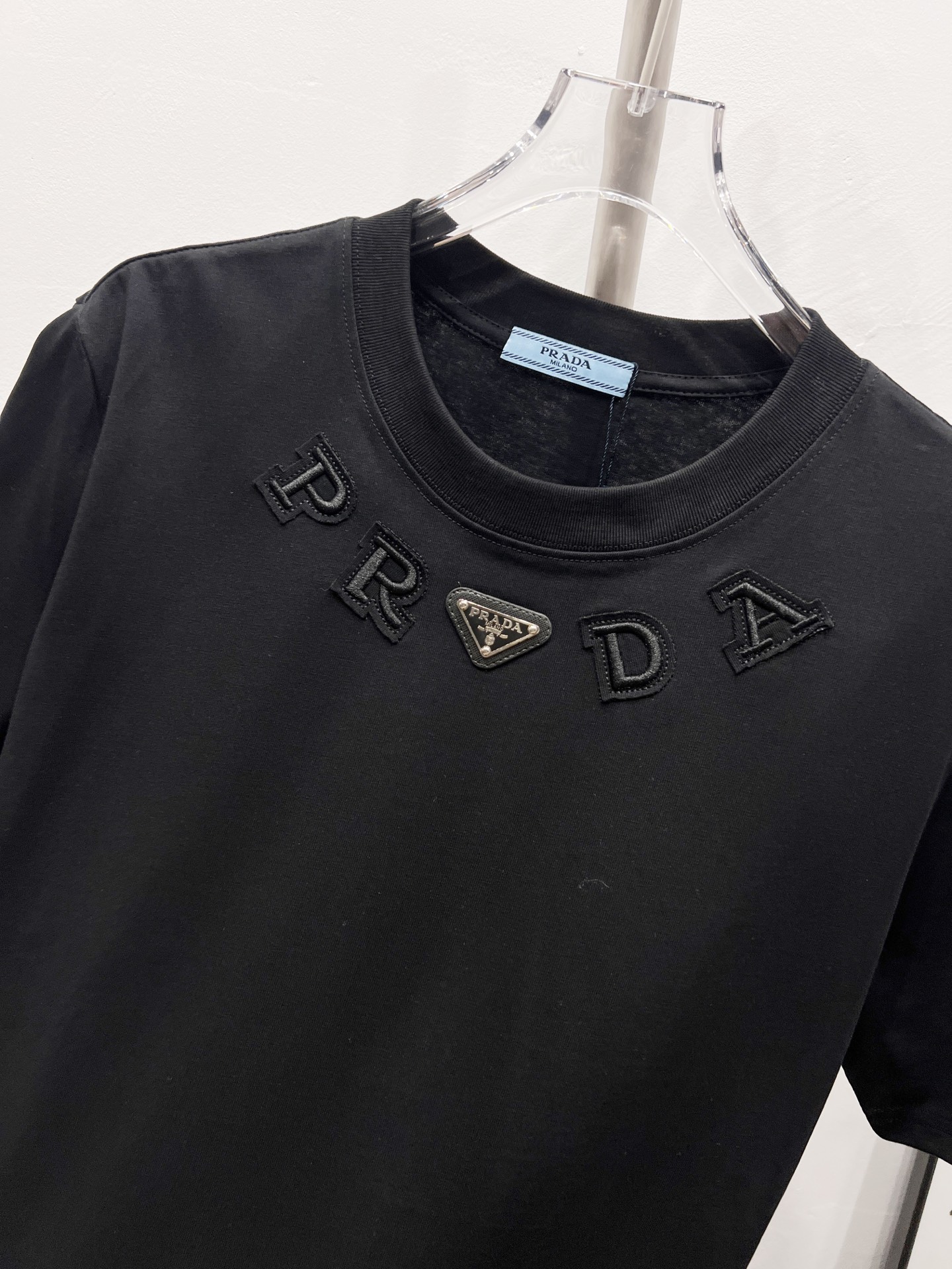 这款衣服是AAAAA 1:1 质量 (非常棒). 使用了和原版一模一样的材料. 商标部分也保持了和普拉达/Prada一样. 图片拍摄是实物衣服拍摄, 您所收到的实物保证和我们图片一模一样.