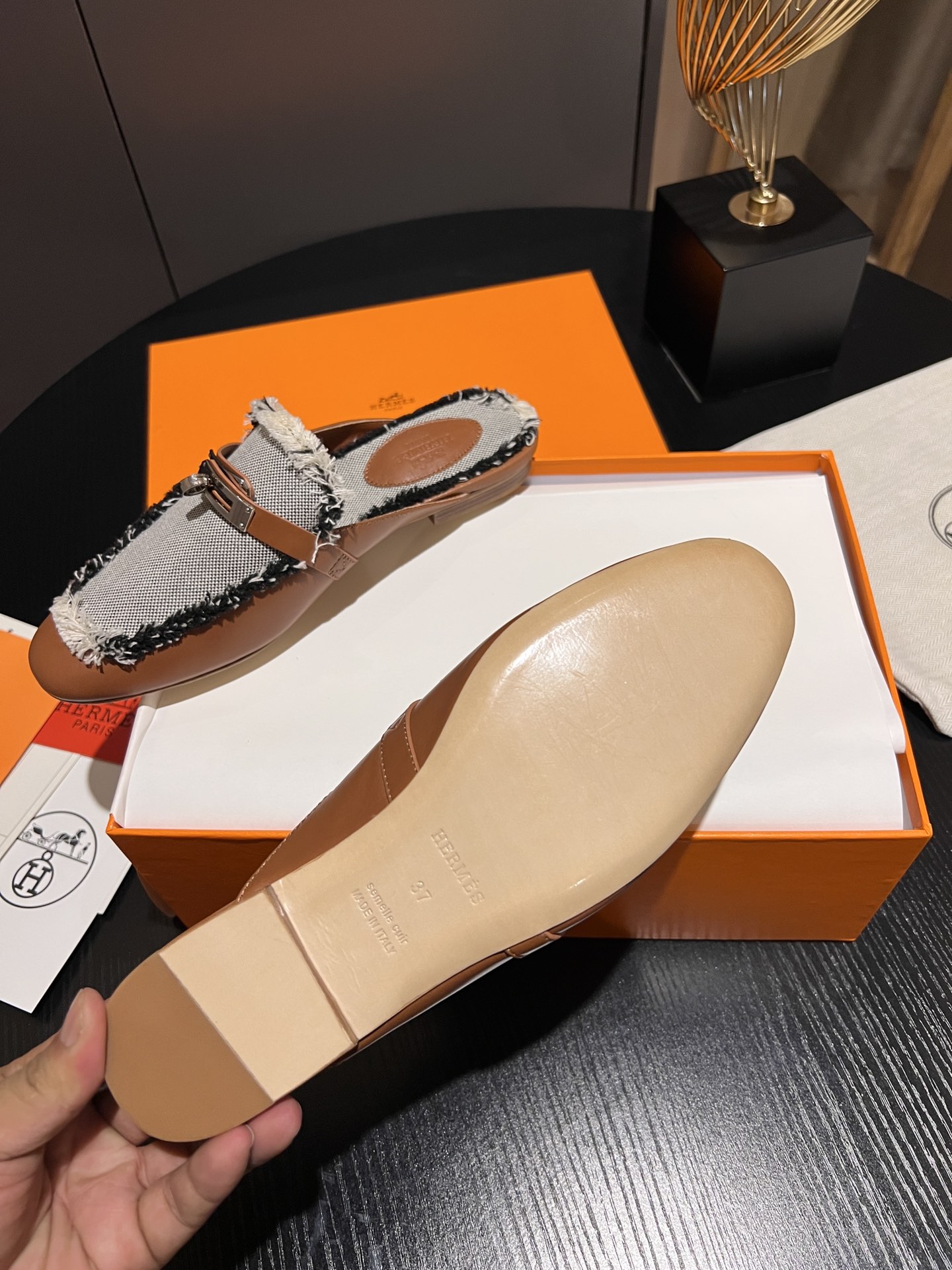这款鞋子是AAAAA 1:1 质量 (非常棒). 使用了和原版一模一样的材料. 商标部分也保持了和爱马仕/Hermes一样. 图片拍摄是实物鞋子拍摄, 您所收到的实物保证和我们图片一模一样.