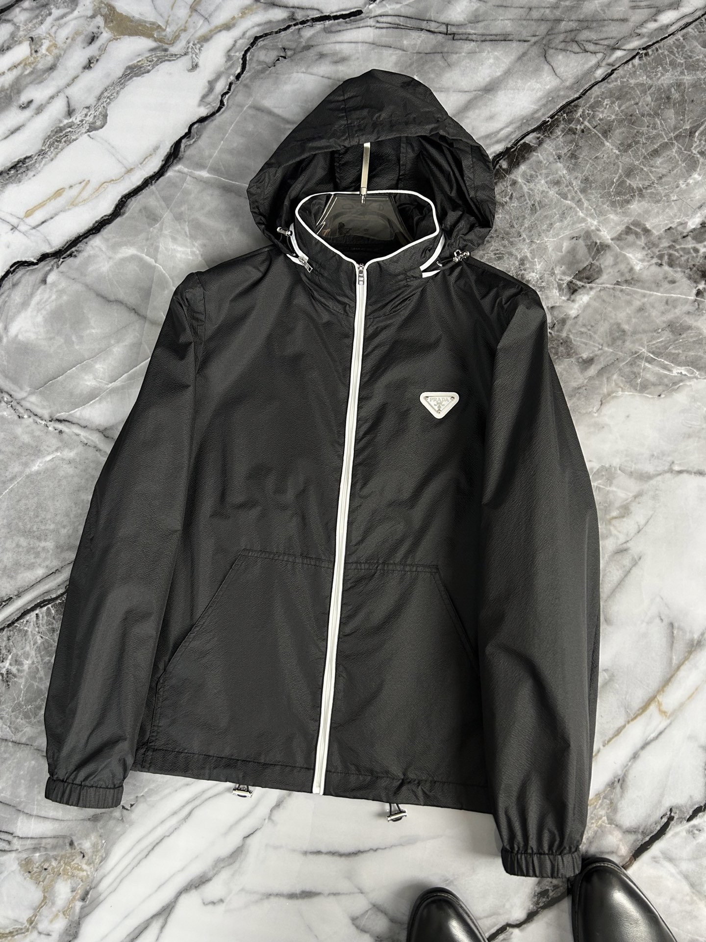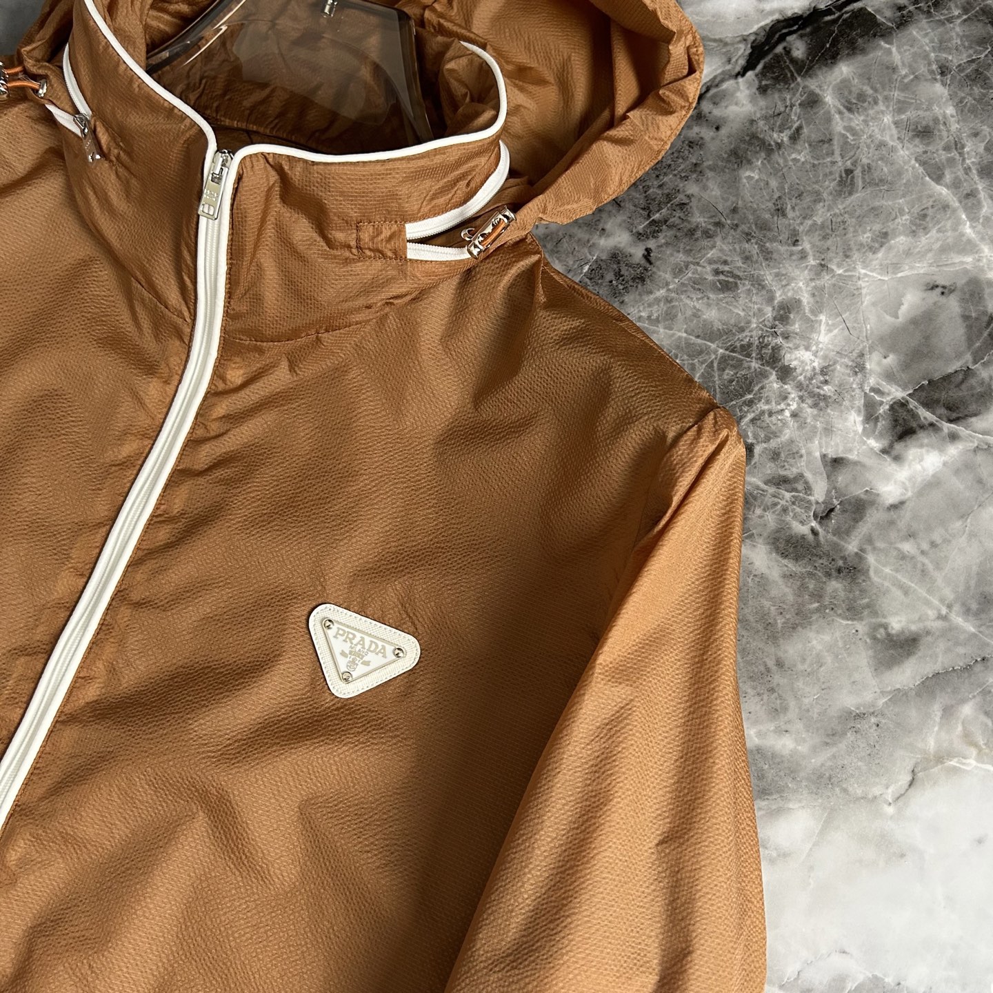 这款衣服是AAAAA 1:1 质量 (非常棒). 使用了和原版一模一样的材料. 商标部分也保持了和普拉达/Prada一样. 图片拍摄是实物衣服拍摄, 您所收到的实物保证和我们图片一模一样.