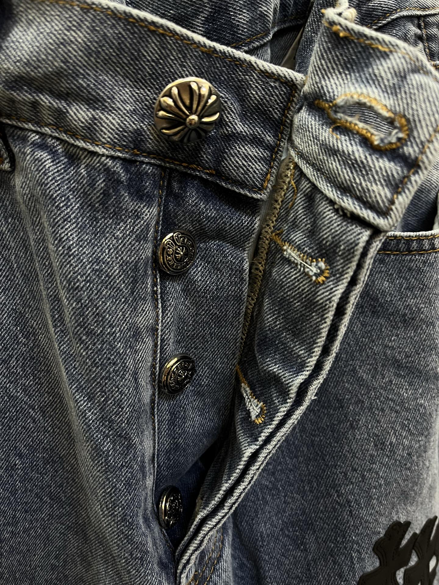 这款衣服是AAAAA 1:1 质量 (非常棒). 使用了和原版一模一样的材料. 商标部分也保持了和克罗心/Chrome Hearts一样. 图片拍摄是实物衣服拍摄, 您所收到的实物保证和我们图片一模一样.