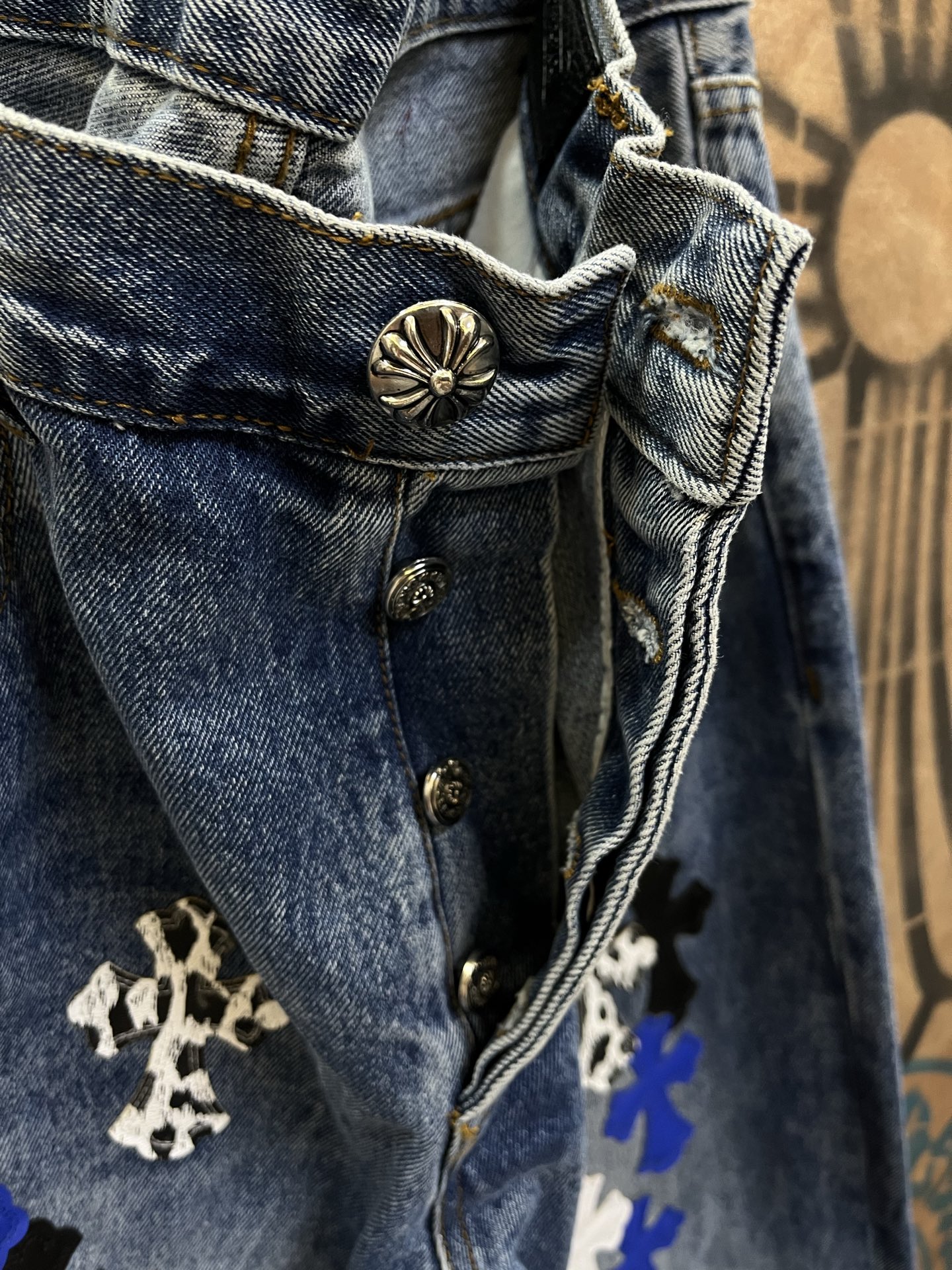 这款衣服是AAAAA 1:1 质量 (非常棒). 使用了和原版一模一样的材料. 商标部分也保持了和克罗心/Chrome Hearts一样. 图片拍摄是实物衣服拍摄, 您所收到的实物保证和我们图片一模一样.