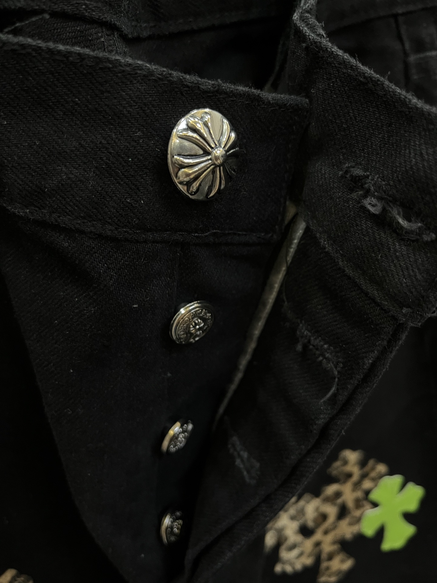 这款衣服是AAAAA 1:1 质量 (非常棒). 使用了和原版一模一样的材料. 商标部分也保持了和克罗心/Chrome Hearts一样. 图片拍摄是实物衣服拍摄, 您所收到的实物保证和我们图片一模一样.