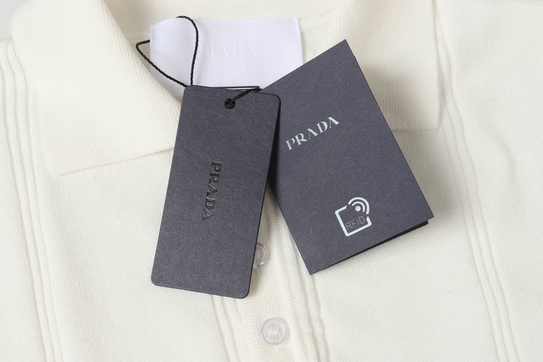 这款衣服是AAAAA 1:1 质量 (非常棒). 使用了和原版一模一样的材料. 商标部分也保持了和普拉达/Prada一样. 图片拍摄是实物衣服拍摄, 您所收到的实物保证和我们图片一模一样.