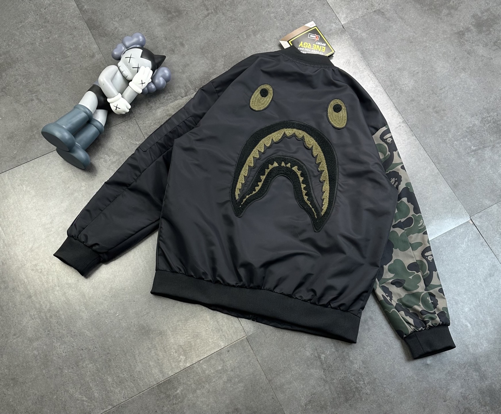 这款衣服是AAAAA 1:1 质量 (非常棒). 使用了和原版一模一样的材料. 商标部分也保持了和Bape一样. 图片拍摄是实物衣服拍摄, 您所收到的实物保证和我们图片一模一样.
