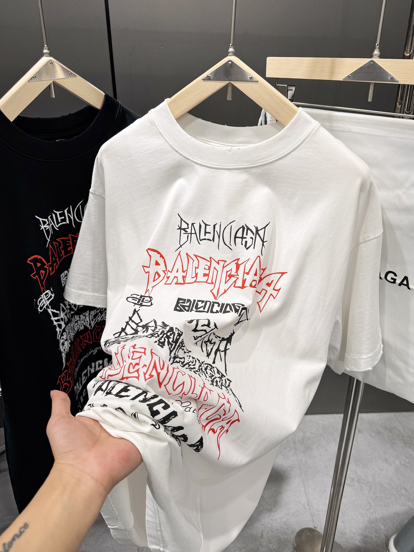这款衣服是AAAAA 1:1 质量 (非常棒). 使用了和原版一模一样的材料. 商标部分也保持了和巴黎世家/Balenciaga一样. 图片拍摄是实物衣服拍摄, 您所收到的实物保证和我们图片一模一样.