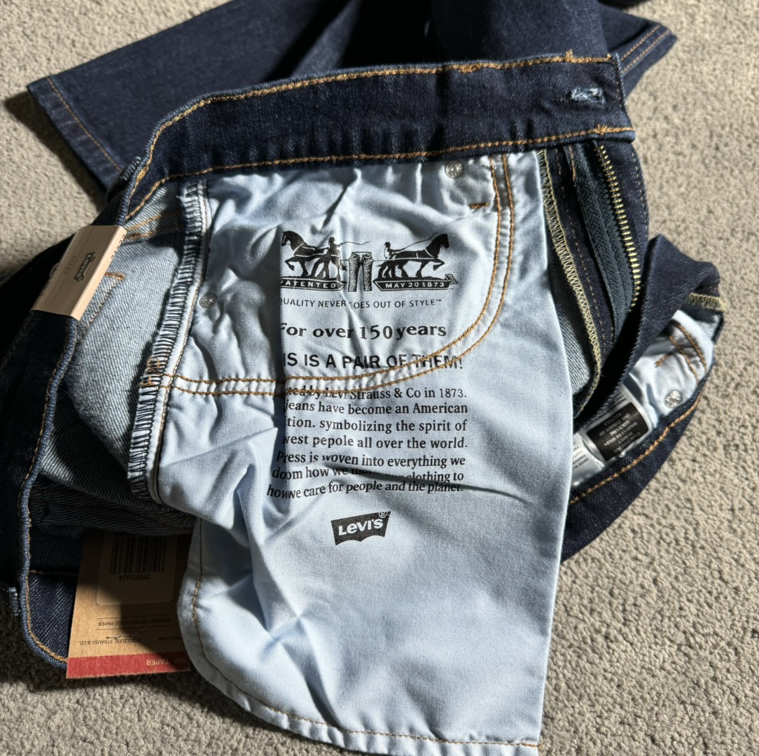 这款衣服是AAAAA 1:1 质量 (非常棒). 使用了和原版一模一样的材料. 商标部分也保持了和Levi's一样. 图片拍摄是实物衣服拍摄, 您所收到的实物保证和我们图片一模一样.