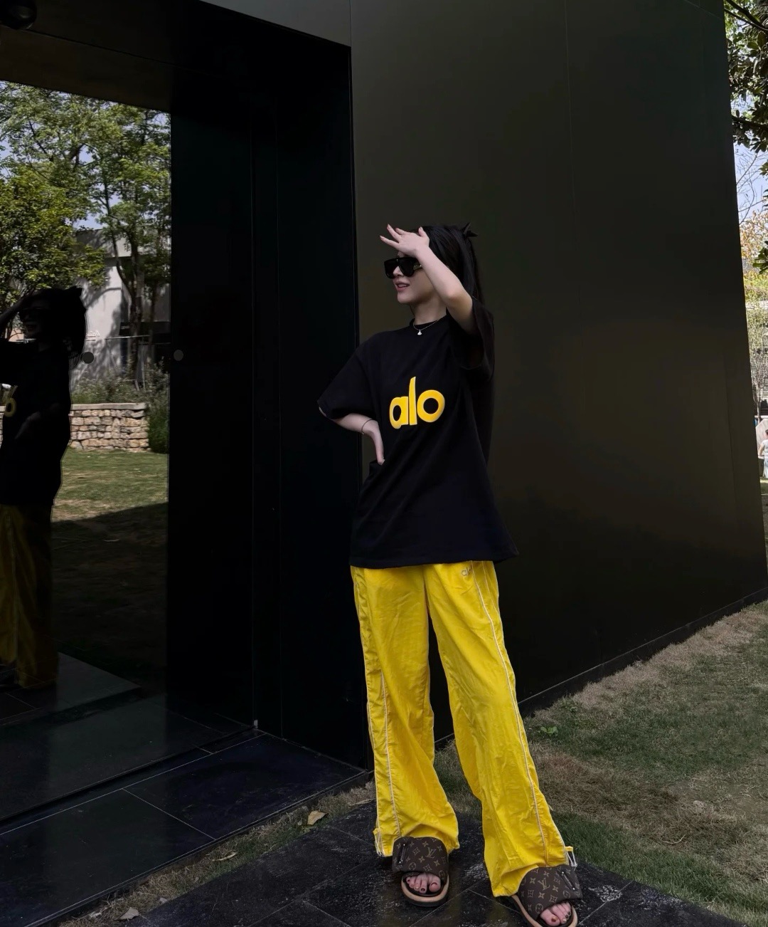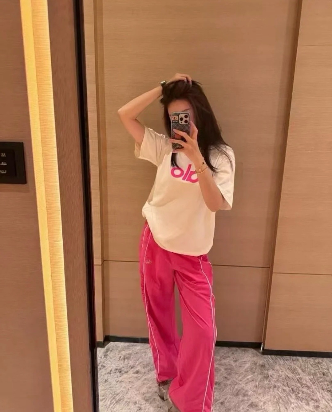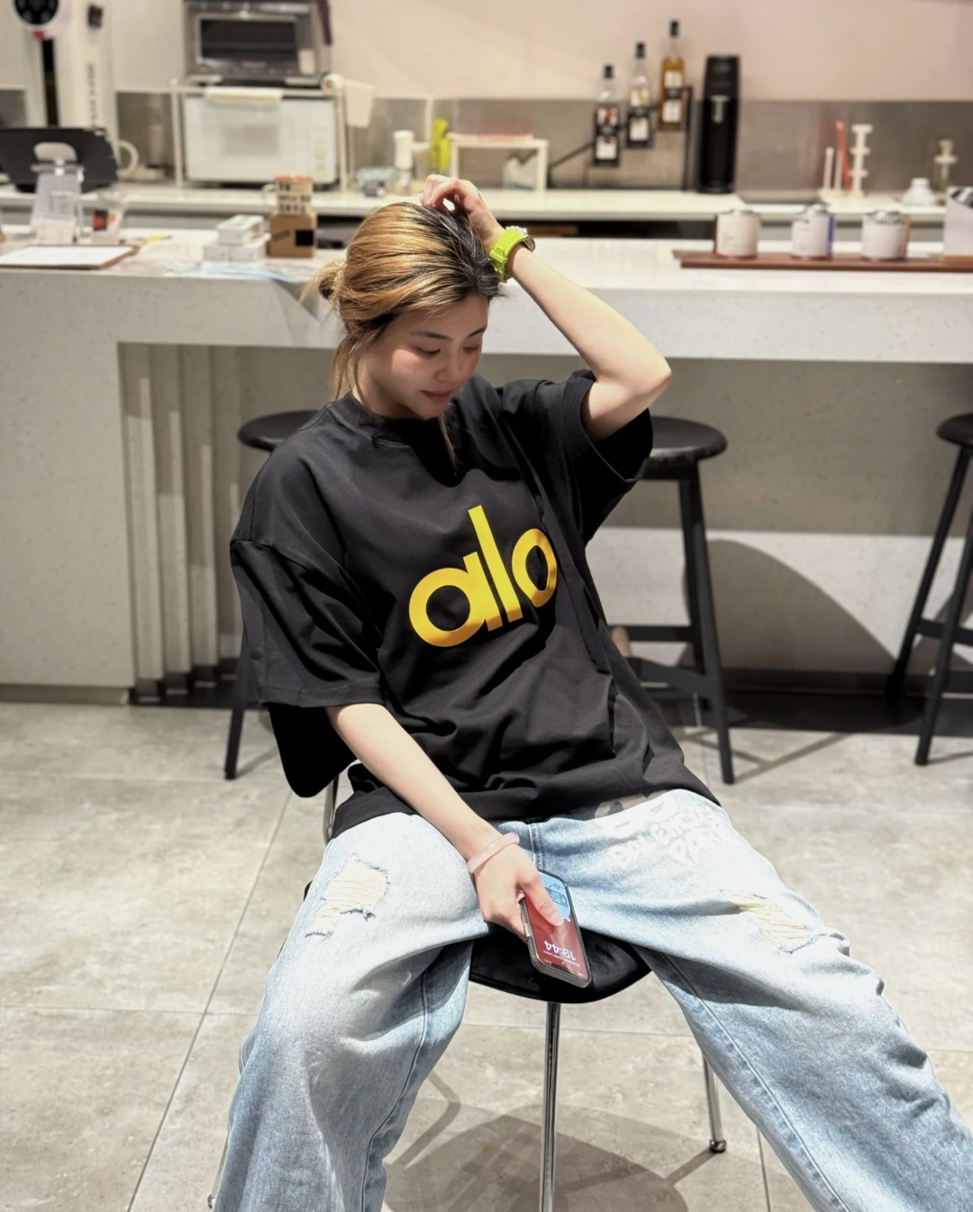 这款衣服是AAAAA 1:1 质量 (非常棒). 使用了和原版一模一样的材料. 商标部分也保持了和Alo Yoga一样. 图片拍摄是实物衣服拍摄, 您所收到的实物保证和我们图片一模一样.