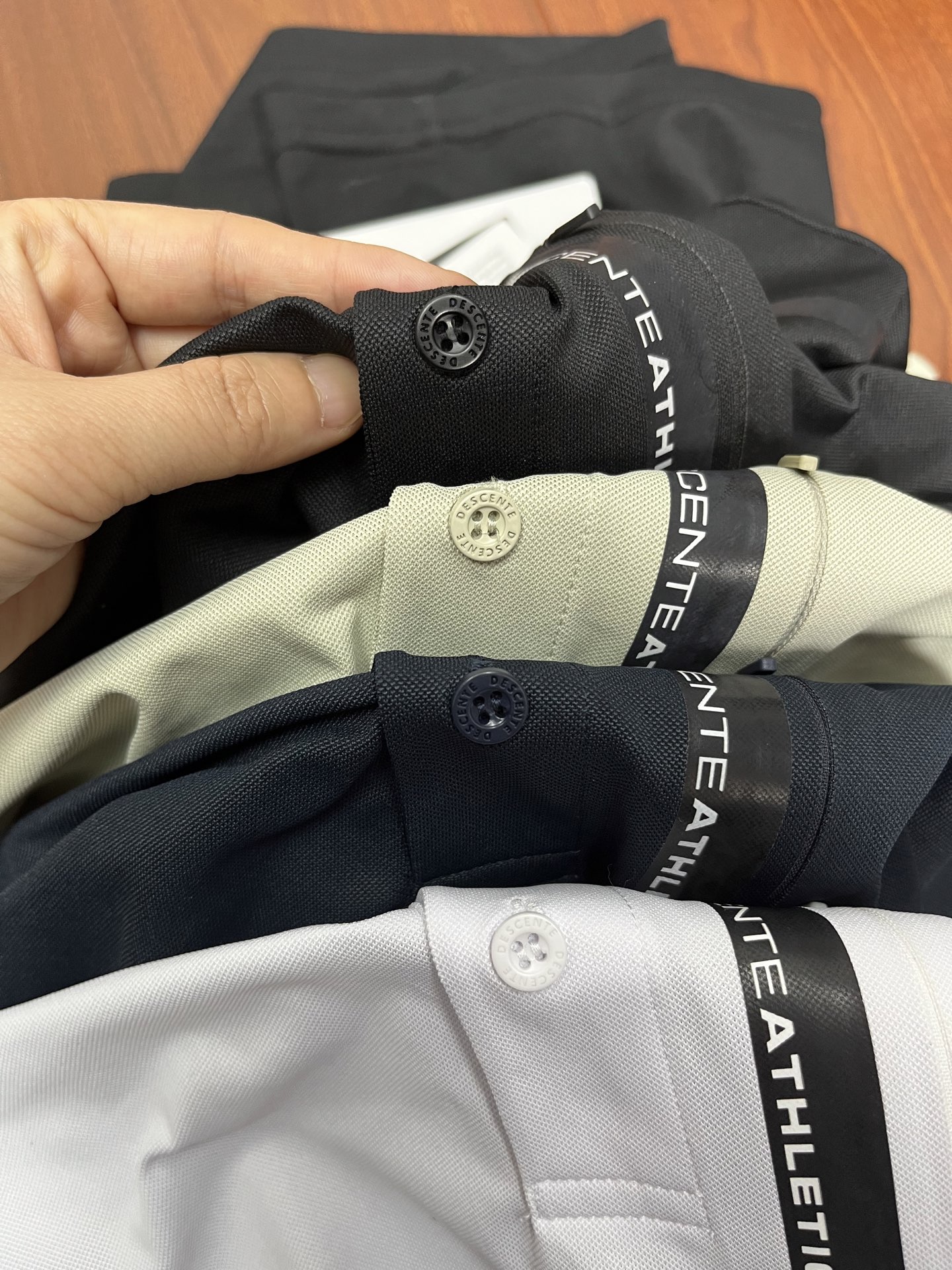 这款衣服是AAAAA 1:1 质量 (非常棒). 使用了和原版一模一样的材料. 商标部分也保持了和Descente一样. 图片拍摄是实物衣服拍摄, 您所收到的实物保证和我们图片一模一样.
