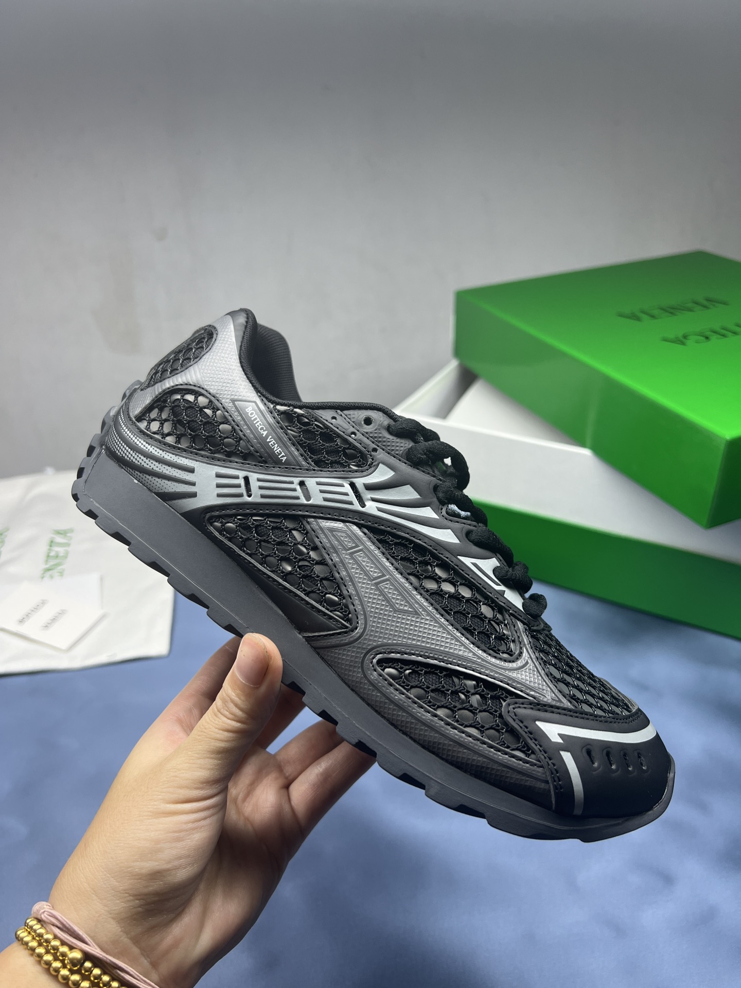 这款鞋子是AAAAA 1:1 质量 (非常棒). 使用了和原版一模一样的材料. 商标部分也保持了和葆蝶家/Bottega Veneta一样. 图片拍摄是实物鞋子拍摄, 您所收到的实物保证和我们图片一模一样.