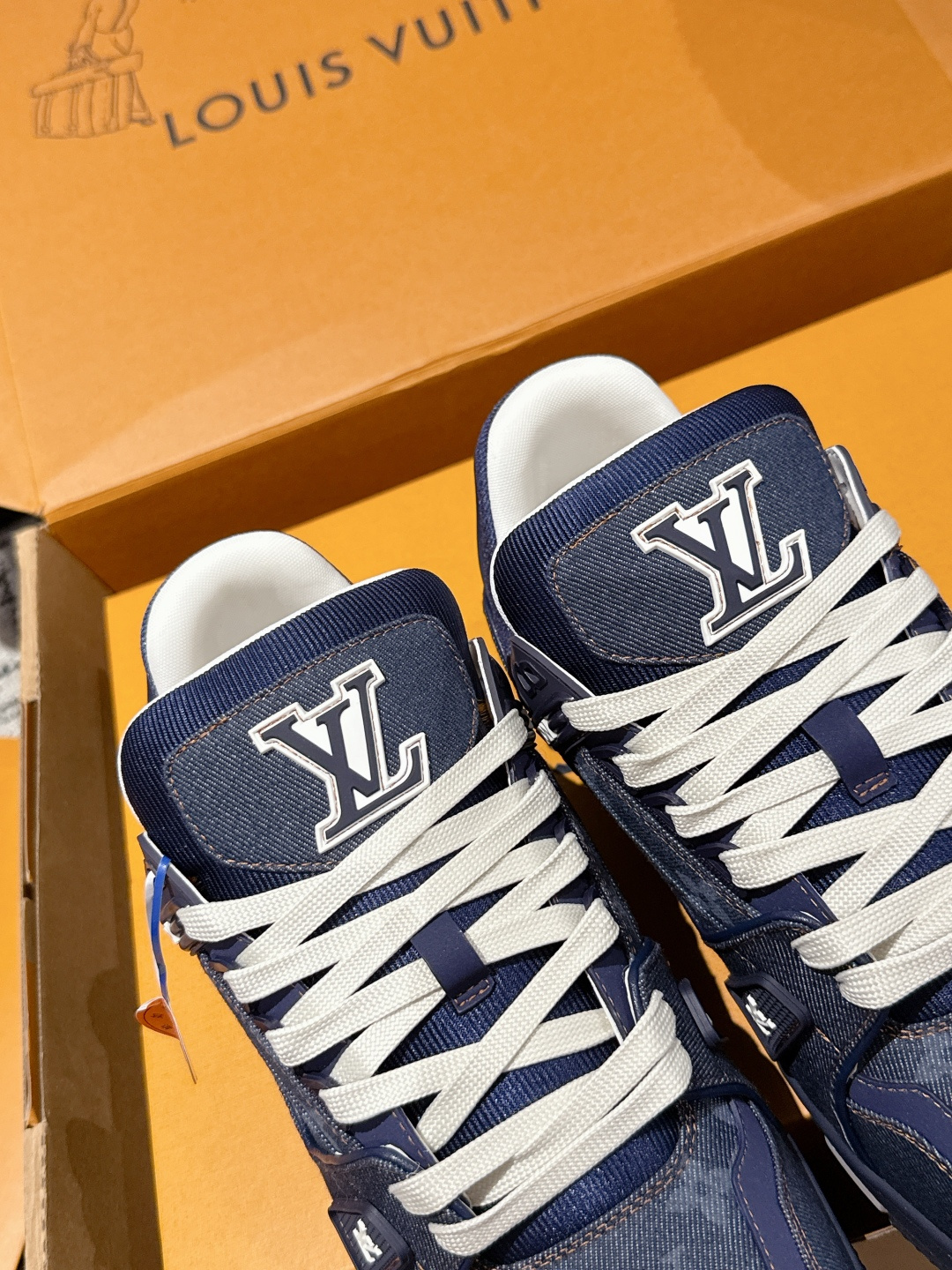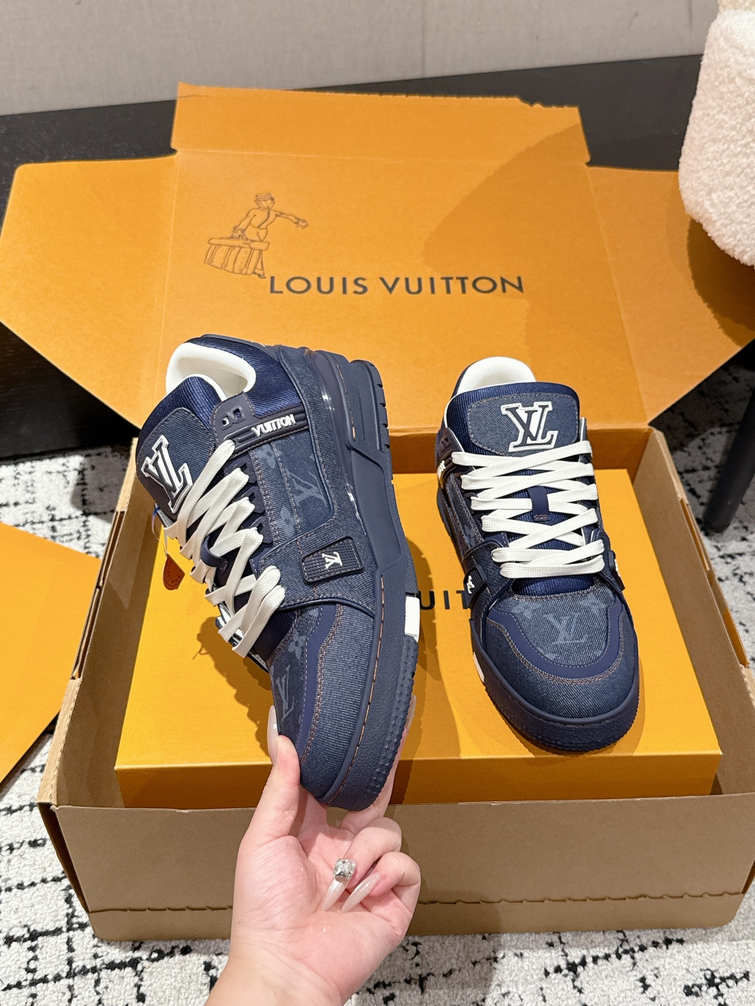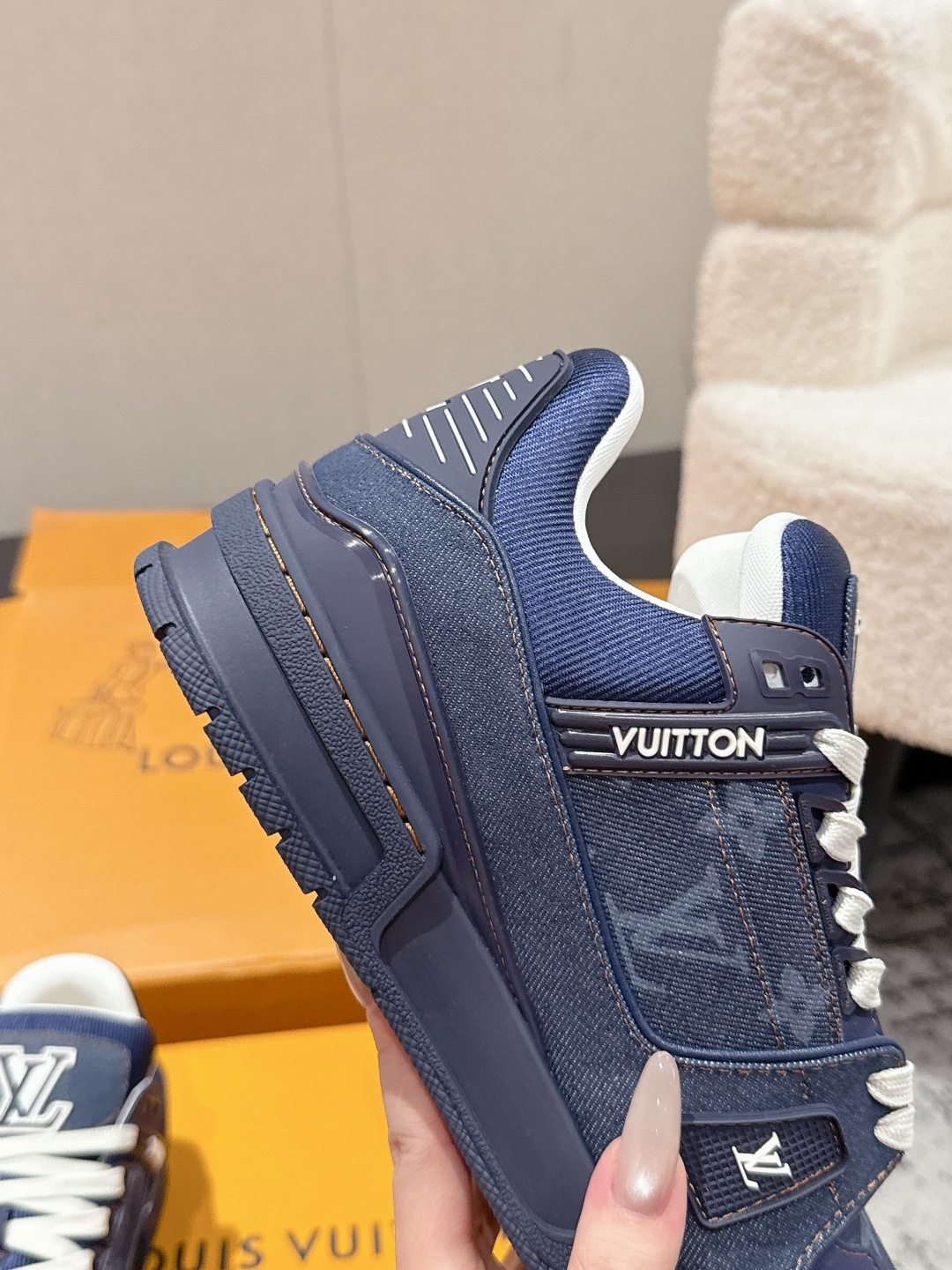 这款鞋子是AAAAA 1:1 质量 (非常棒). 使用了和原版一模一样的材料. 商标部分也保持了和路易威登/Louis Vuitton一样. 图片拍摄是实物鞋子拍摄, 您所收到的实物保证和我们图片一模一样.