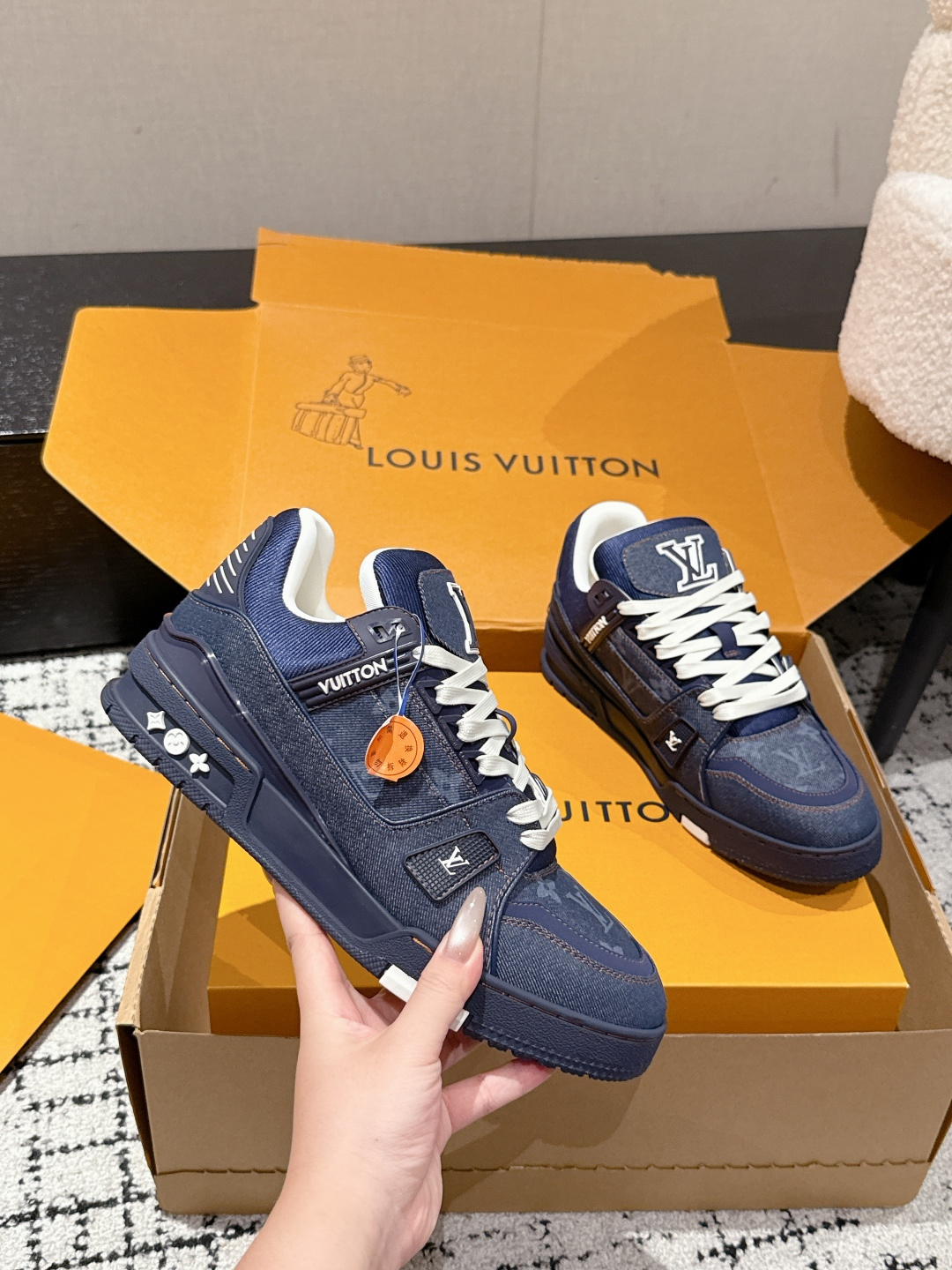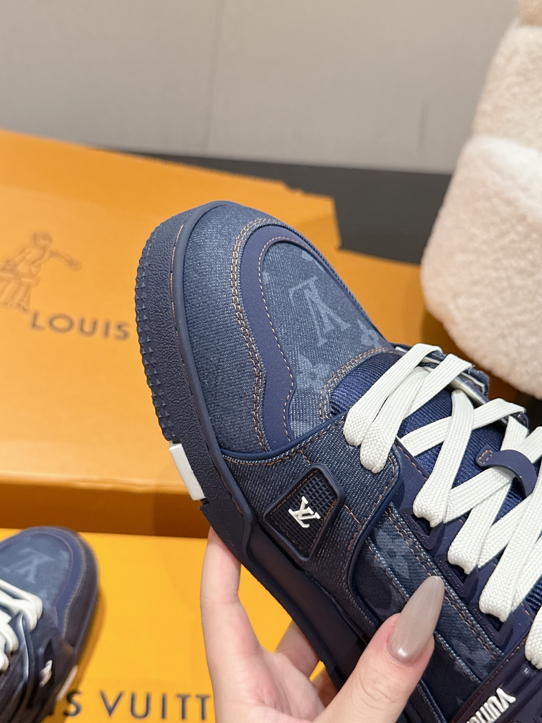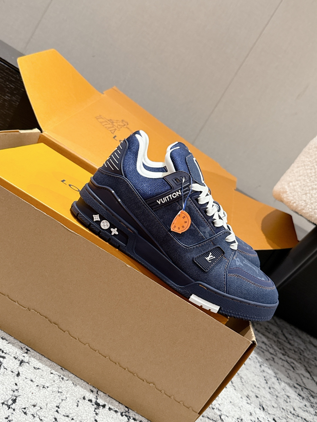 这款鞋子是AAAAA 1:1 质量 (非常棒). 使用了和原版一模一样的材料. 商标部分也保持了和路易威登/Louis Vuitton一样. 图片拍摄是实物鞋子拍摄, 您所收到的实物保证和我们图片一模一样.