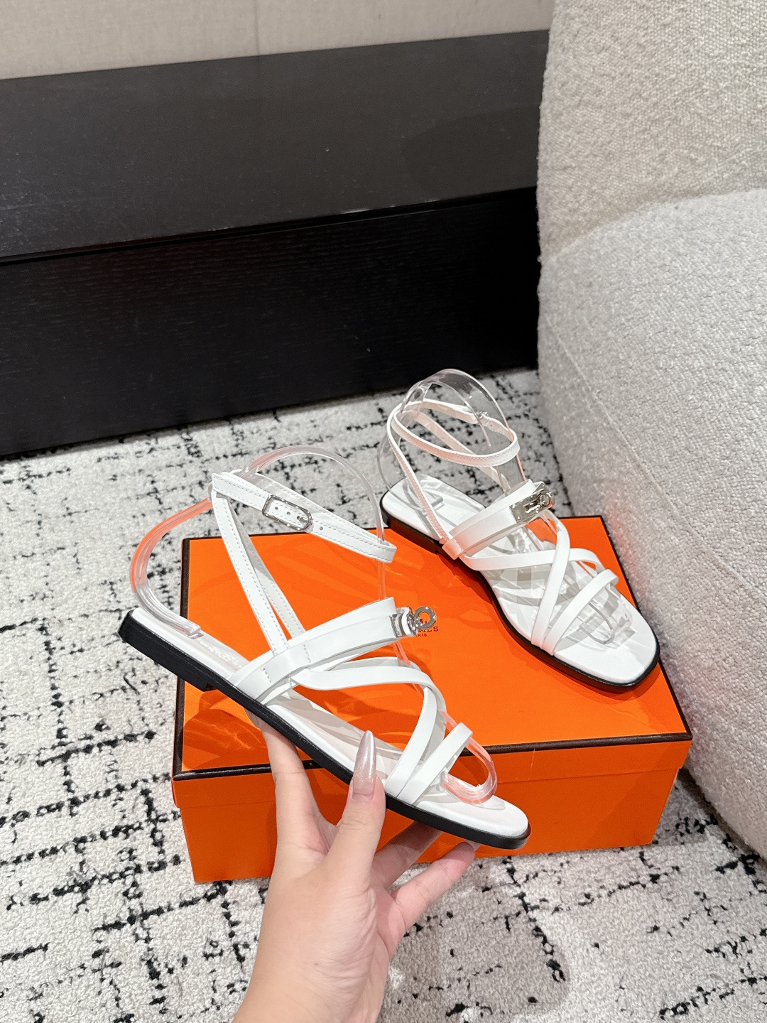 这款鞋子是AAAAA 1:1 质量 (非常棒). 使用了和原版一模一样的材料. 商标部分也保持了和爱马仕/Hermes一样. 图片拍摄是实物鞋子拍摄, 您所收到的实物保证和我们图片一模一样.