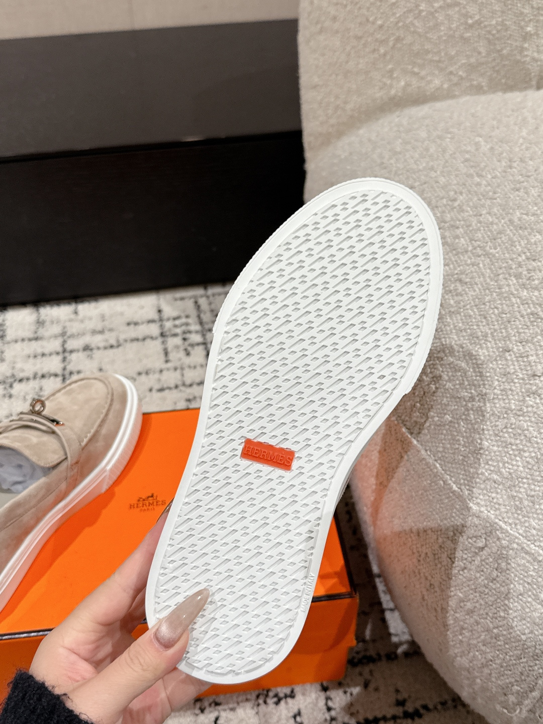这款鞋子是AAAAA 1:1 质量 (非常棒). 使用了和原版一模一样的材料. 商标部分也保持了和爱马仕/Hermes一样. 图片拍摄是实物鞋子拍摄, 您所收到的实物保证和我们图片一模一样.