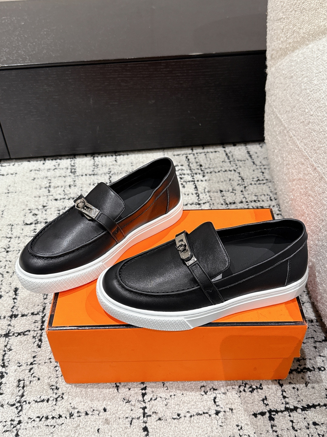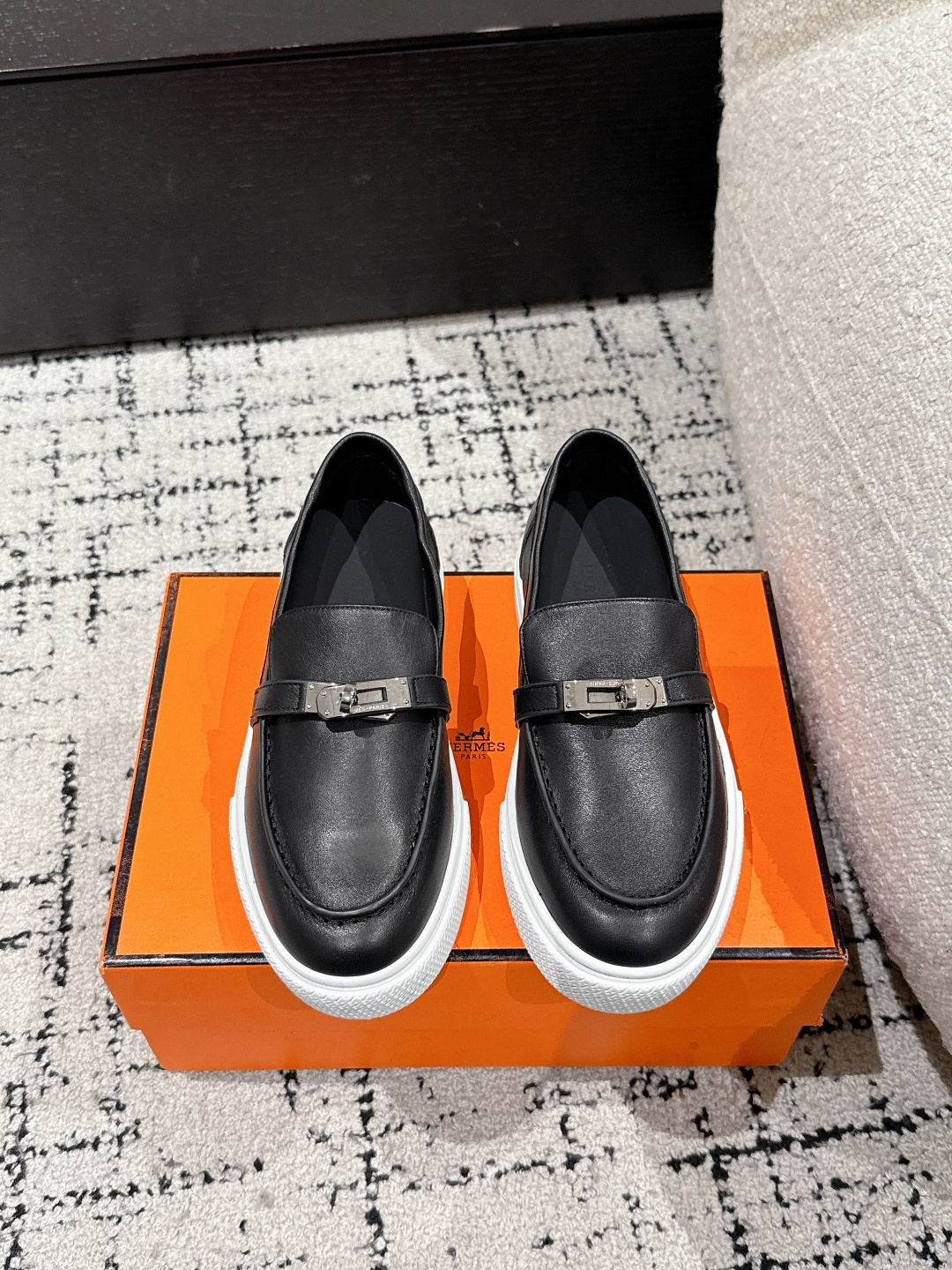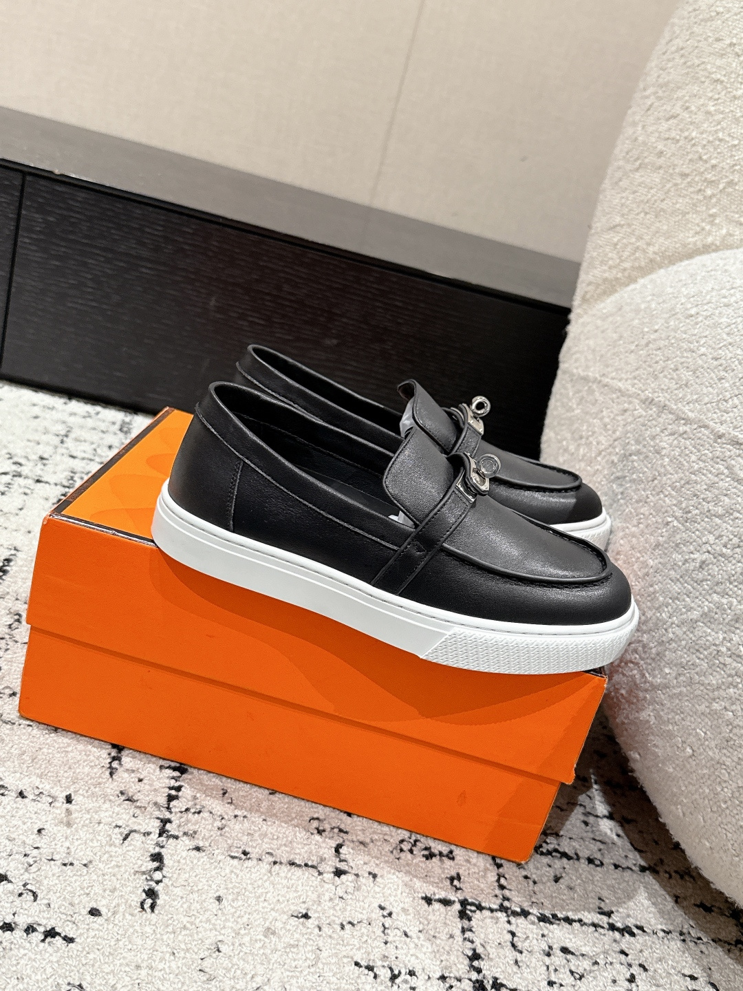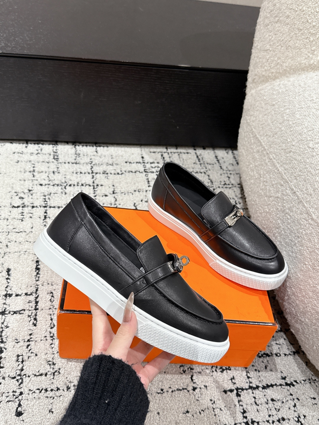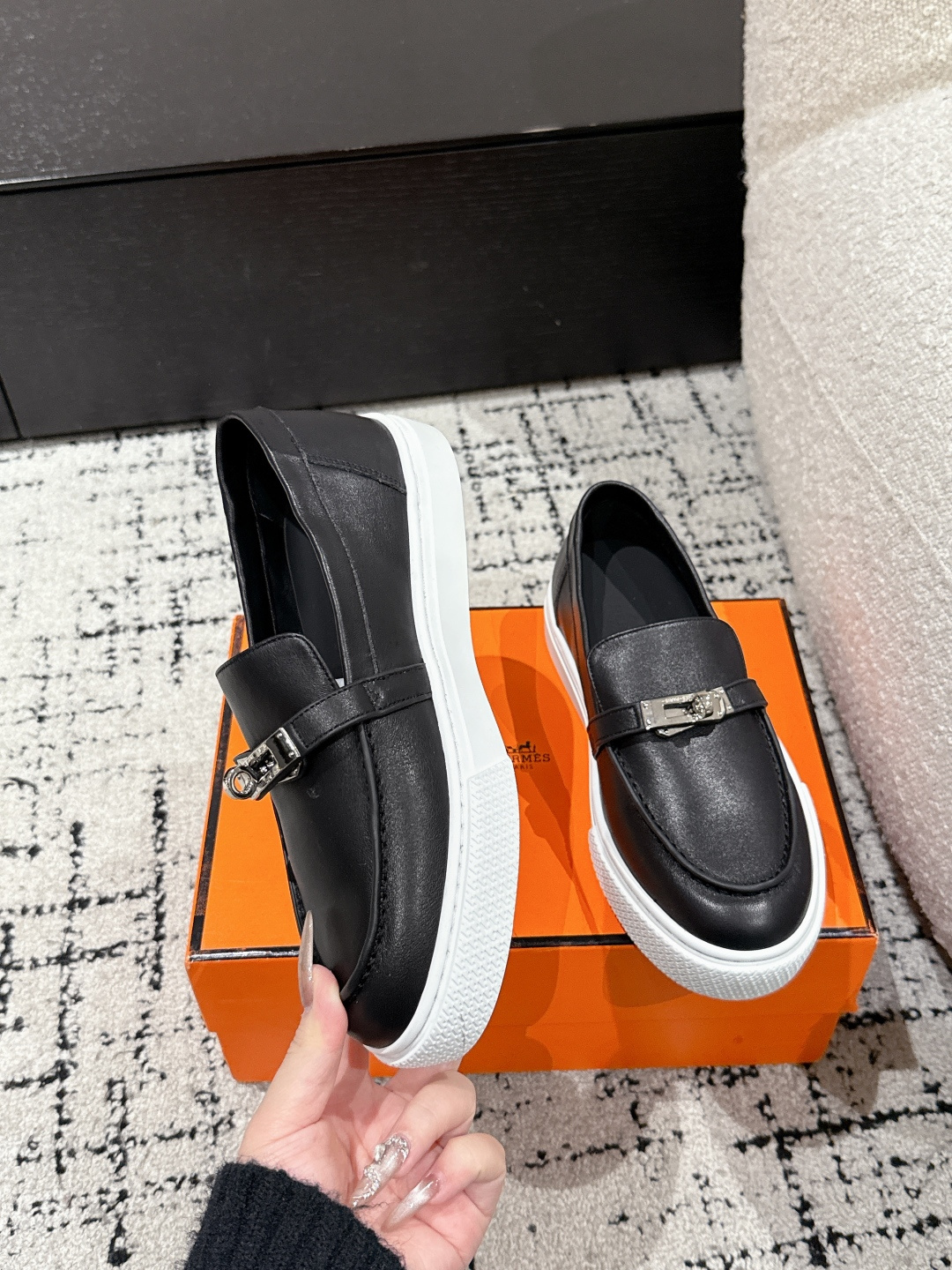 这款鞋子是AAAAA 1:1 质量 (非常棒). 使用了和原版一模一样的材料. 商标部分也保持了和爱马仕/Hermes一样. 图片拍摄是实物鞋子拍摄, 您所收到的实物保证和我们图片一模一样.