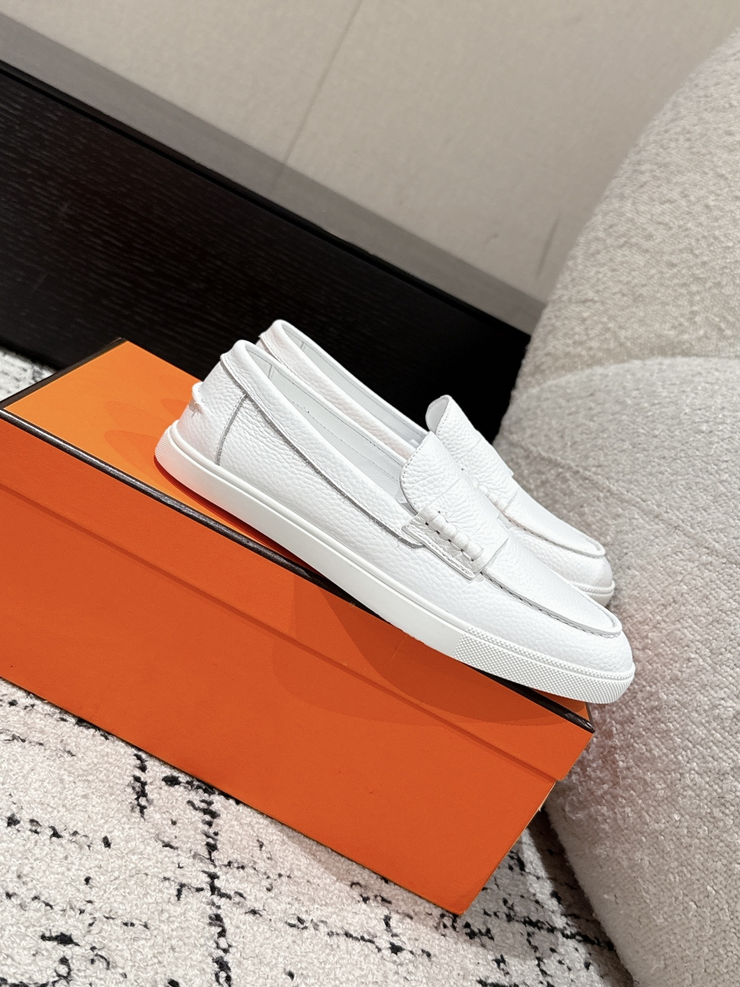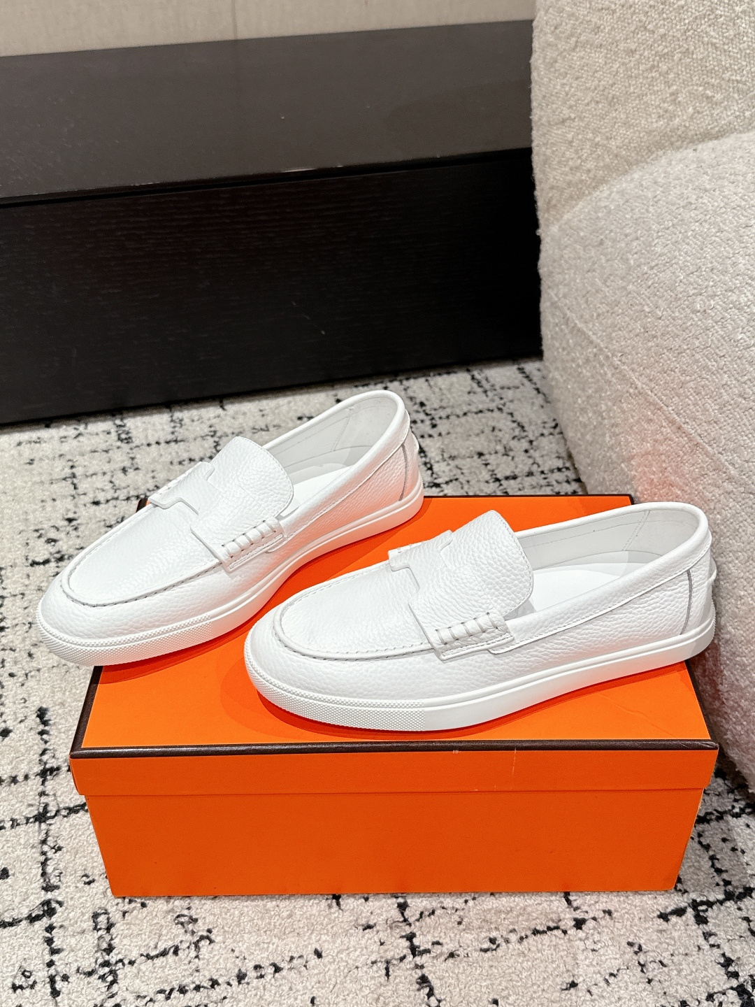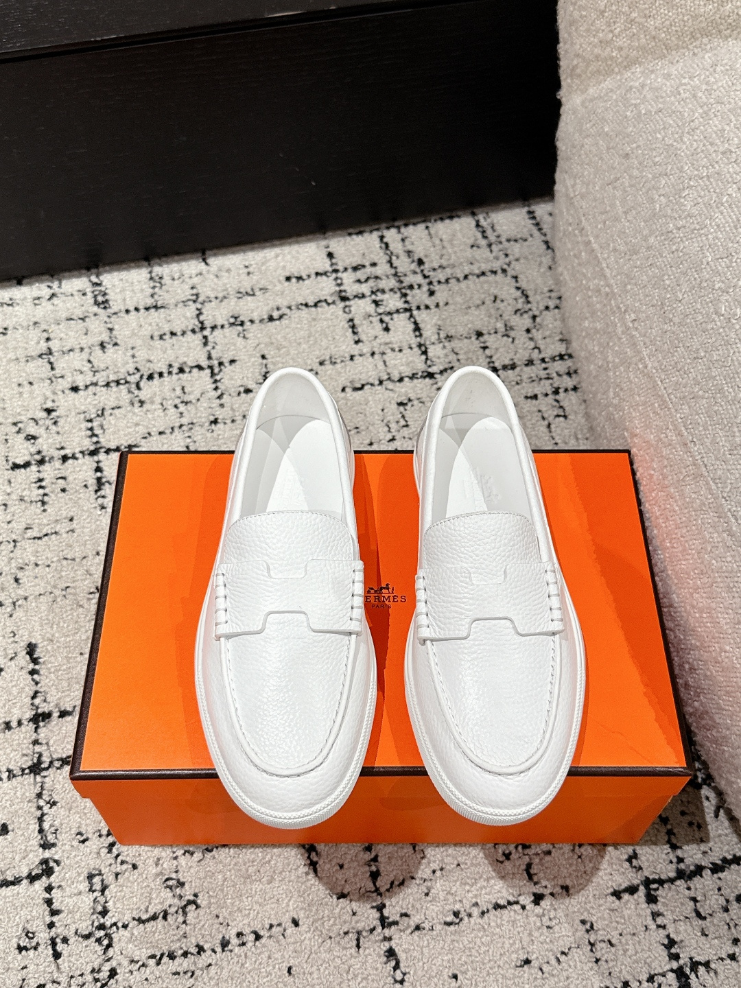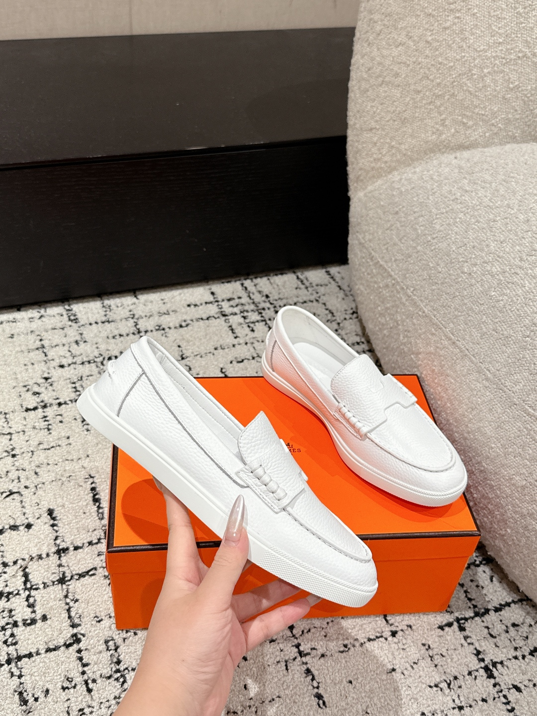 这款鞋子是AAAAA 1:1 质量 (非常棒). 使用了和原版一模一样的材料. 商标部分也保持了和爱马仕/Hermes一样. 图片拍摄是实物鞋子拍摄, 您所收到的实物保证和我们图片一模一样.