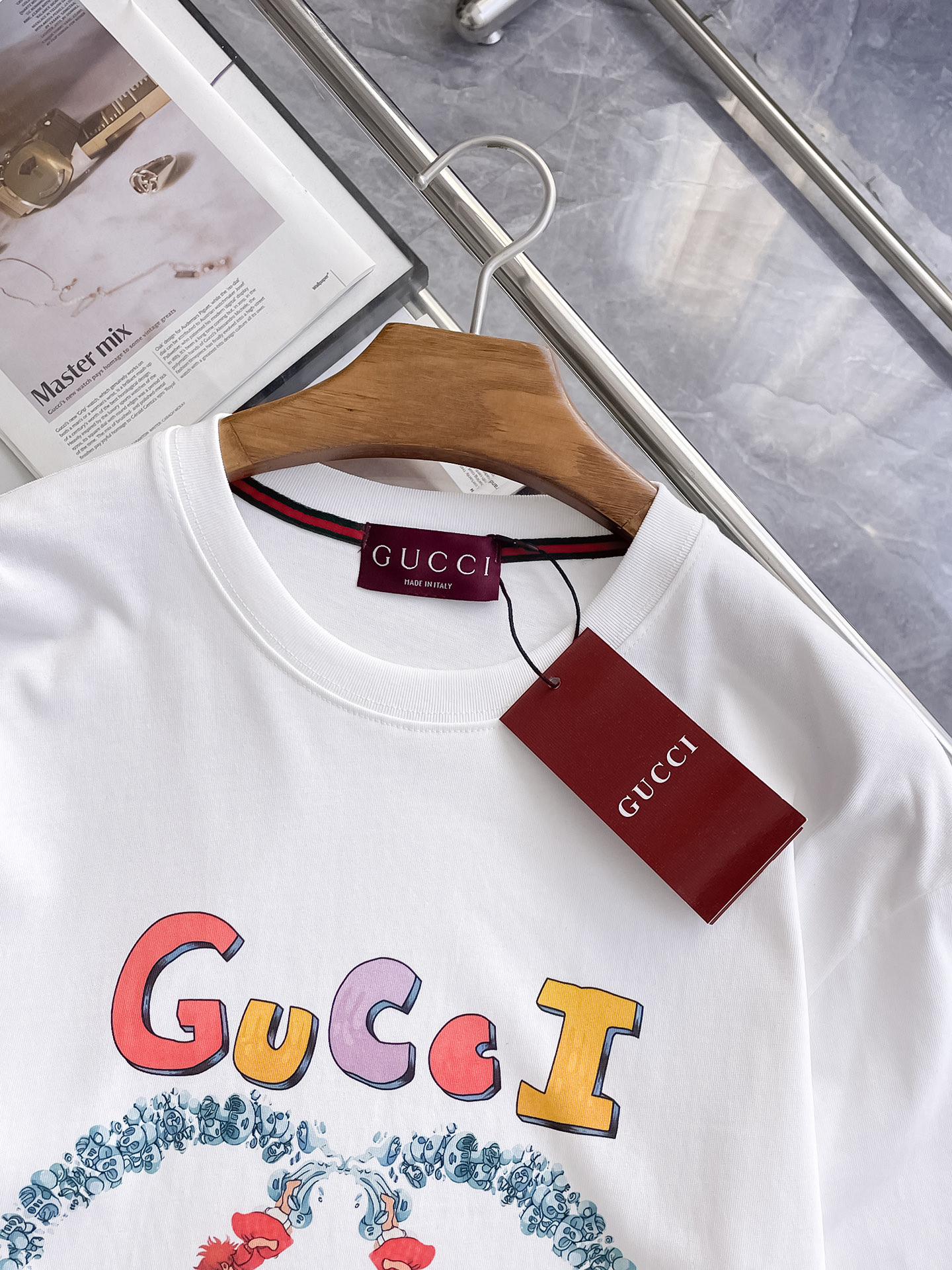这款衣服是AAAAA 1:1 质量 (非常棒). 使用了和原版一模一样的材料. 商标部分也保持了和古奇/Gucci一样. 图片拍摄是实物衣服拍摄, 您所收到的实物保证和我们图片一模一样.