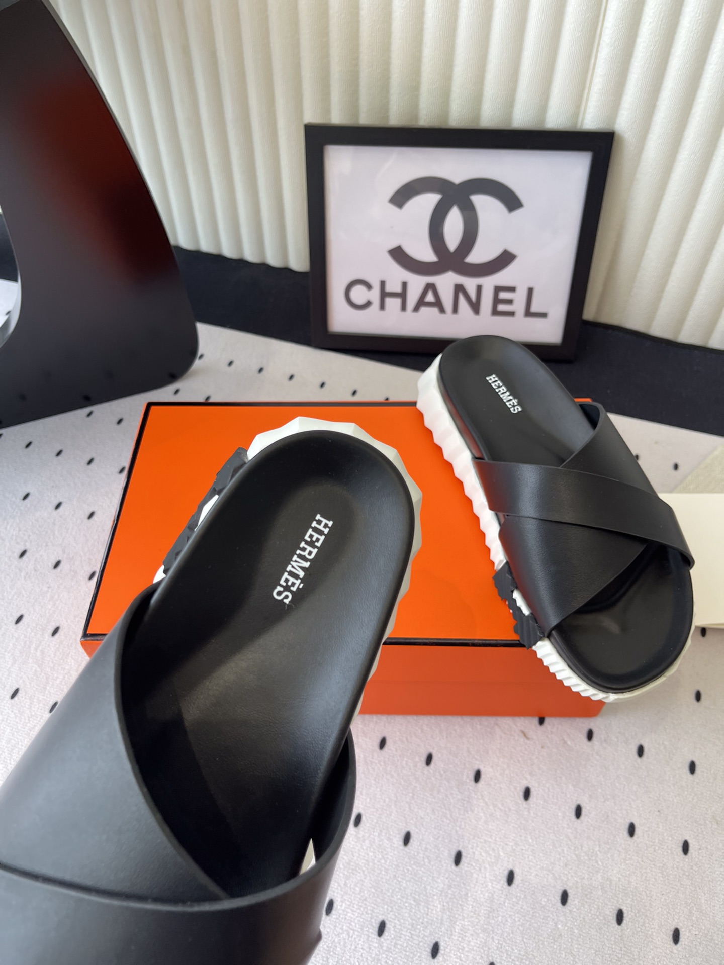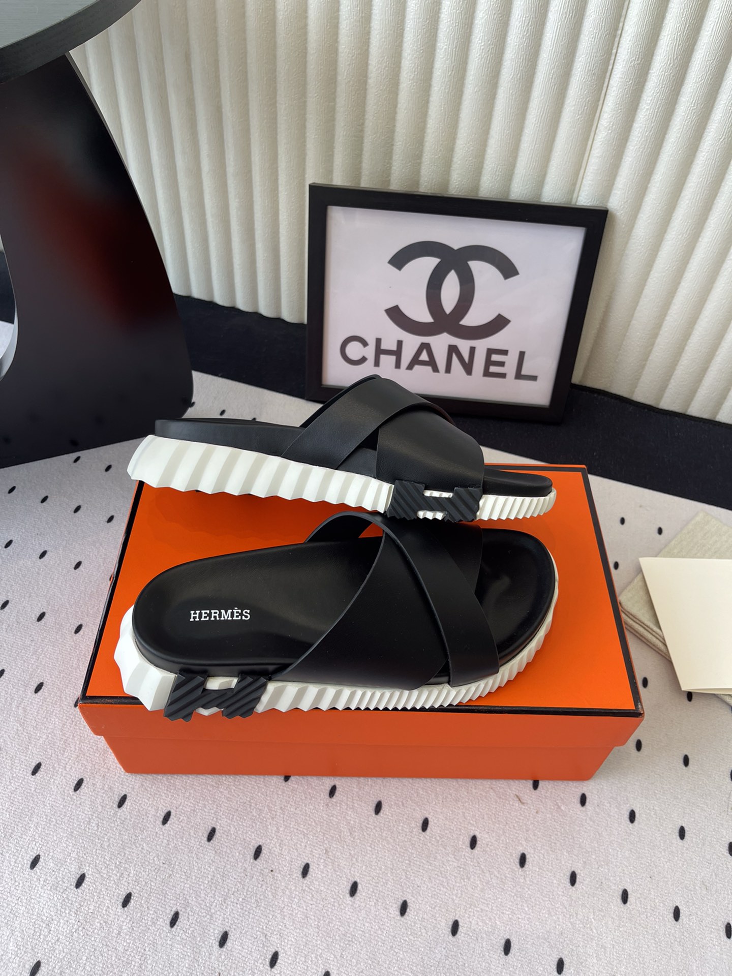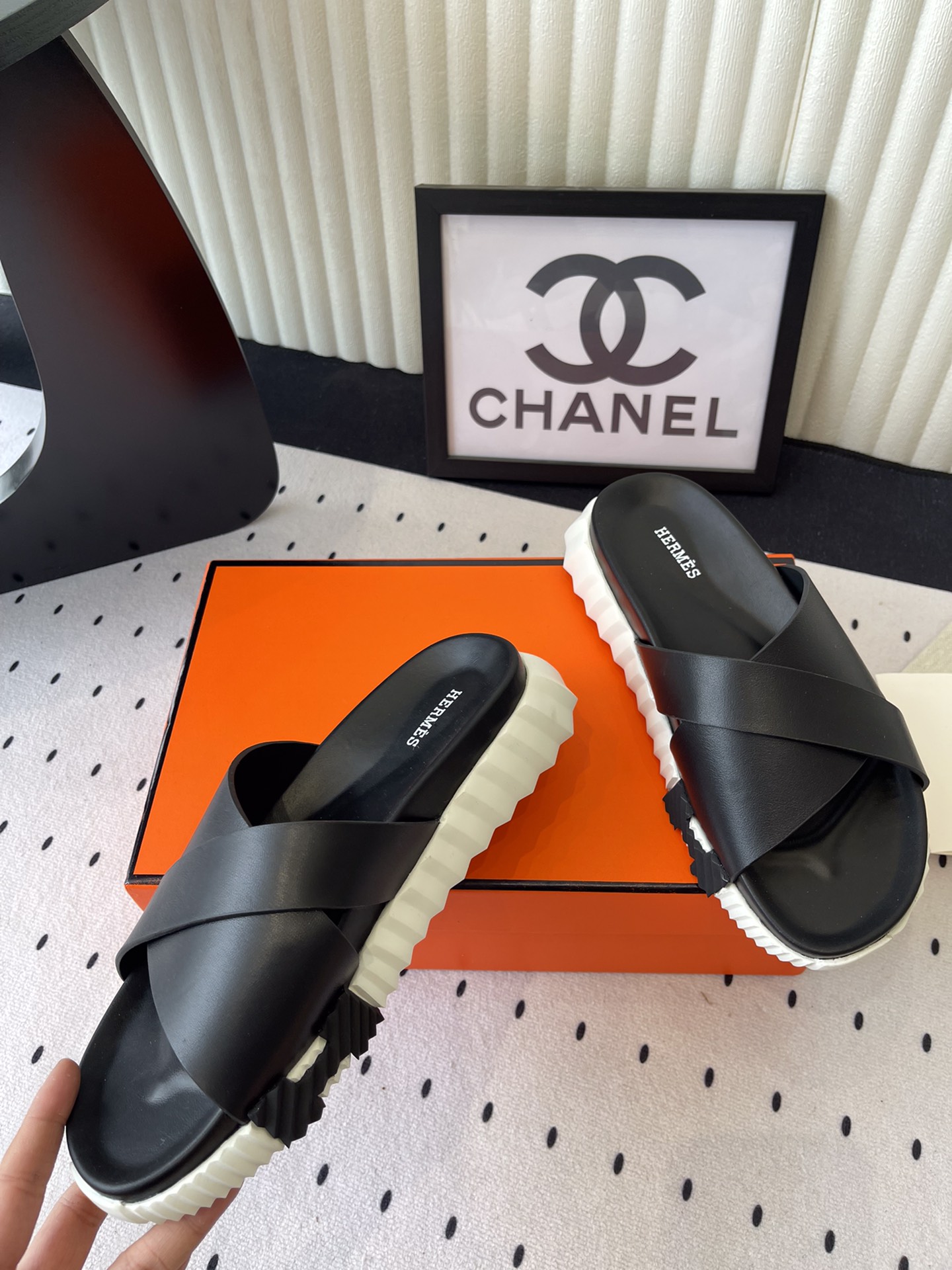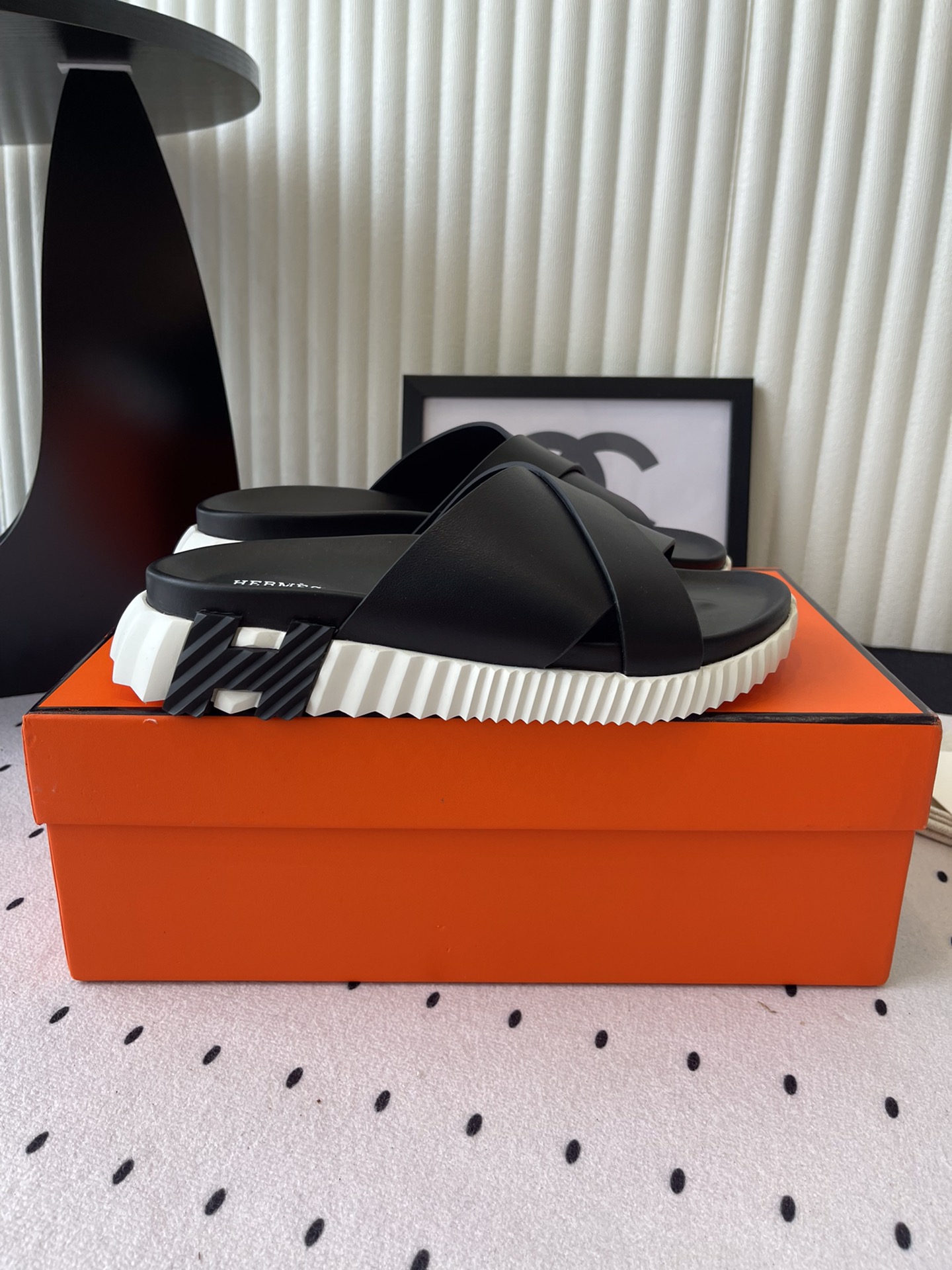 这款鞋子是AAAAA 1:1 质量 (非常棒). 使用了和原版一模一样的材料. 商标部分也保持了和爱马仕/Hermes一样. 图片拍摄是实物鞋子拍摄, 您所收到的实物保证和我们图片一模一样.