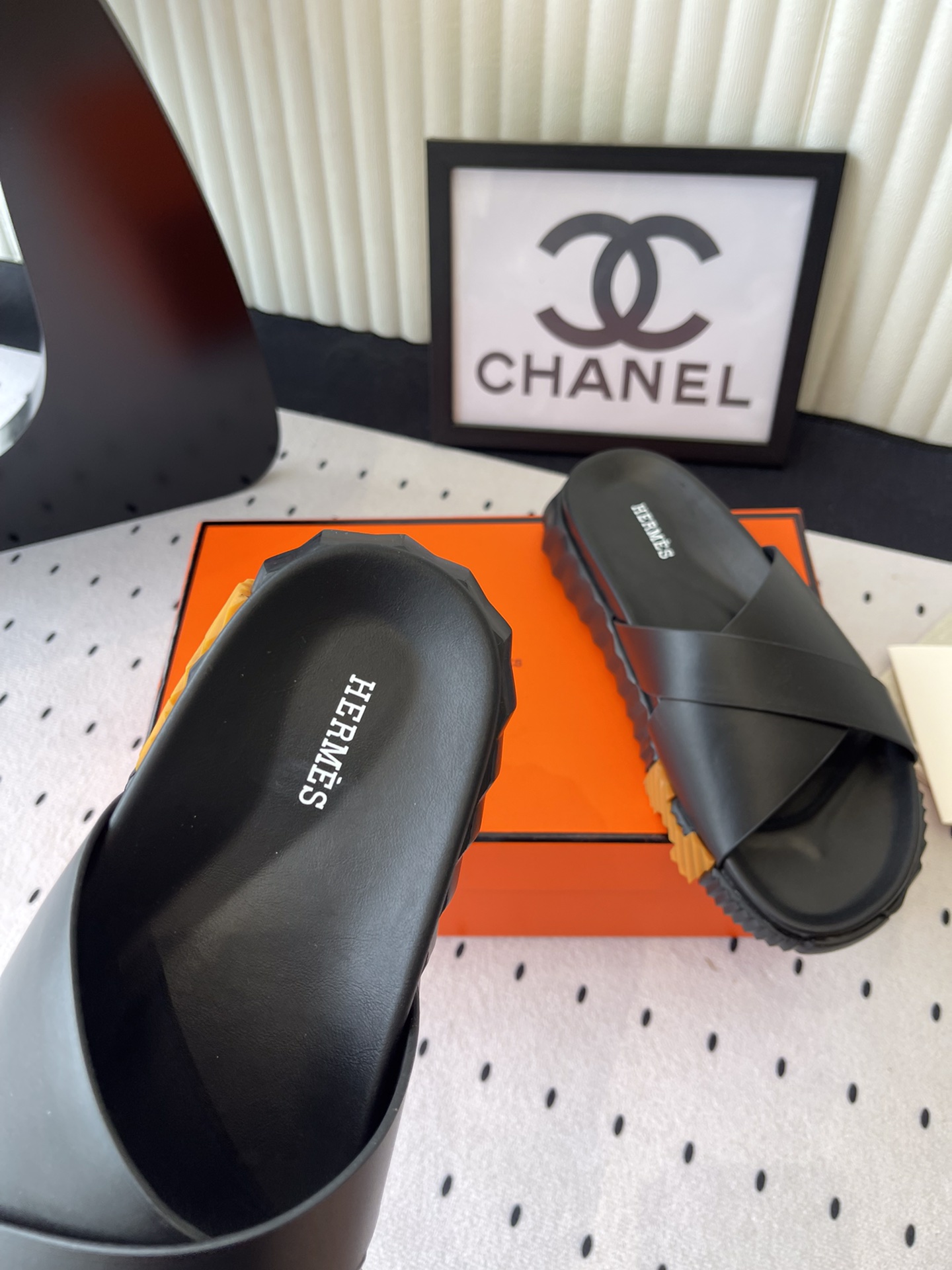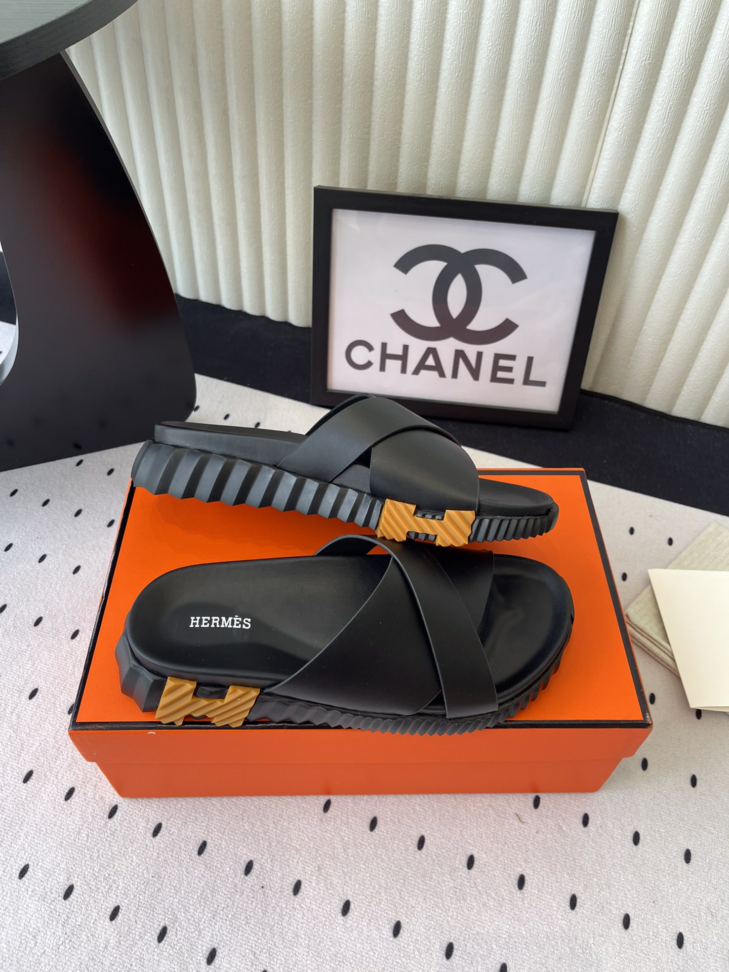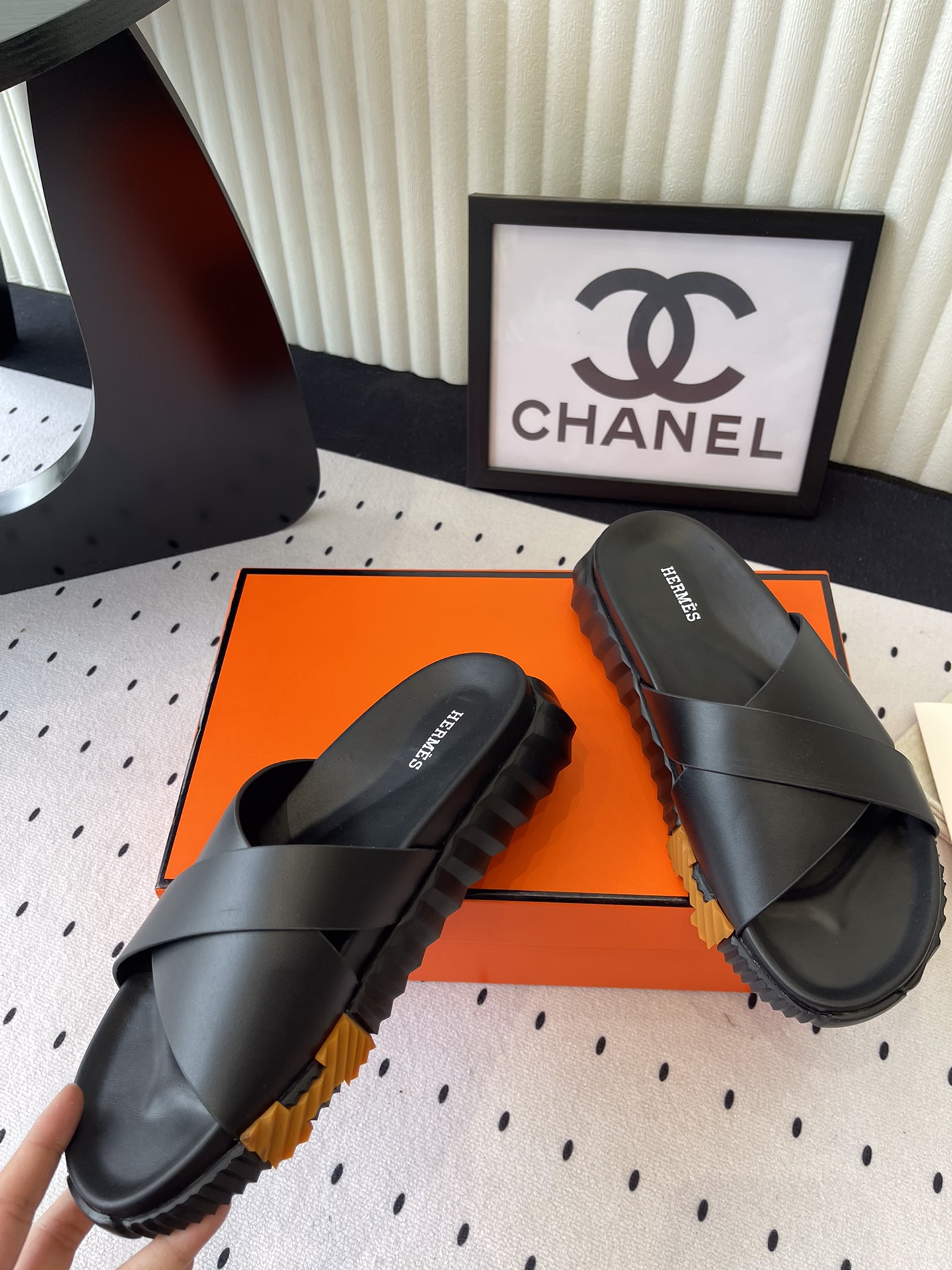 这款鞋子是AAAAA 1:1 质量 (非常棒). 使用了和原版一模一样的材料. 商标部分也保持了和爱马仕/Hermes一样. 图片拍摄是实物鞋子拍摄, 您所收到的实物保证和我们图片一模一样.