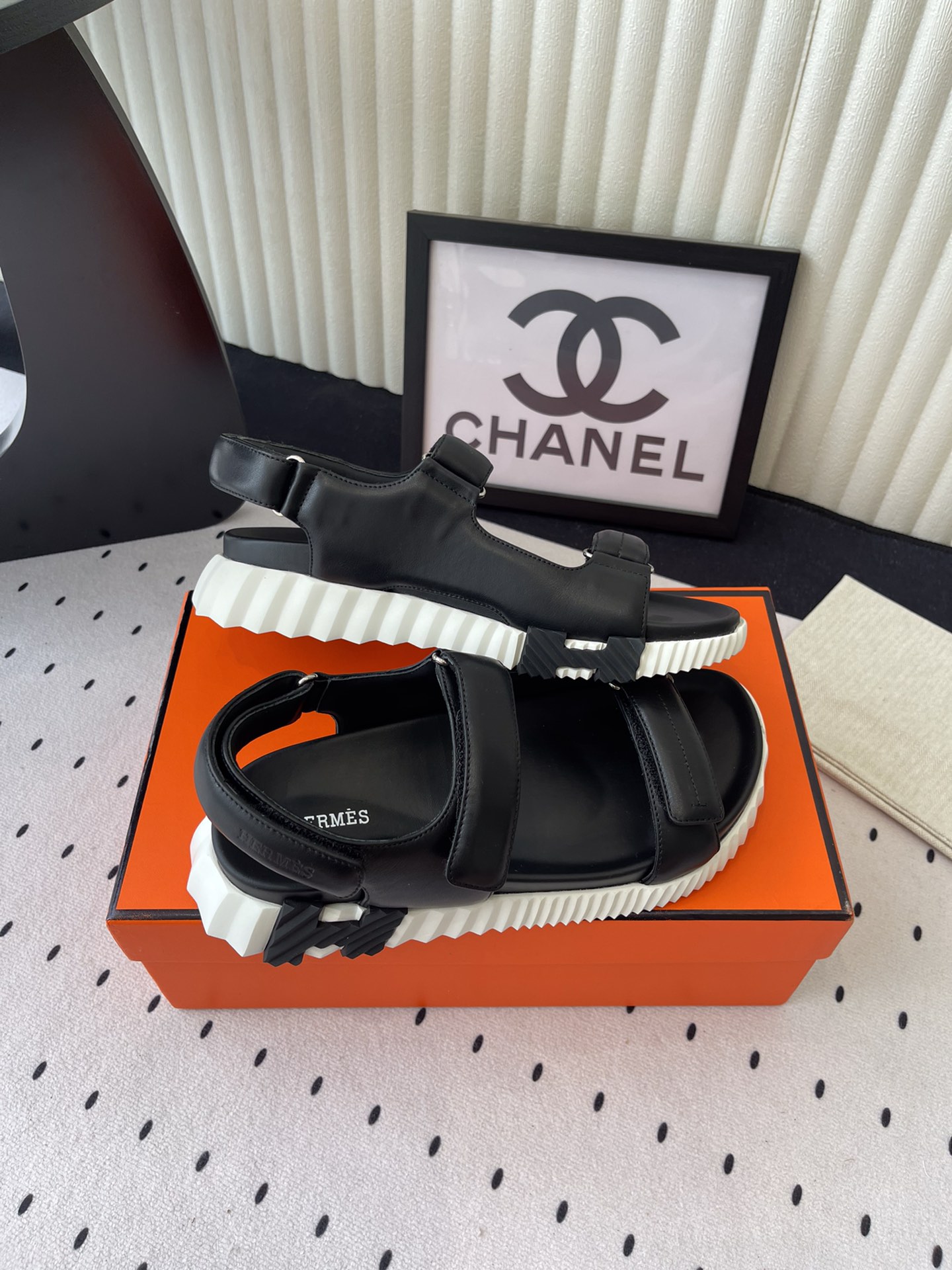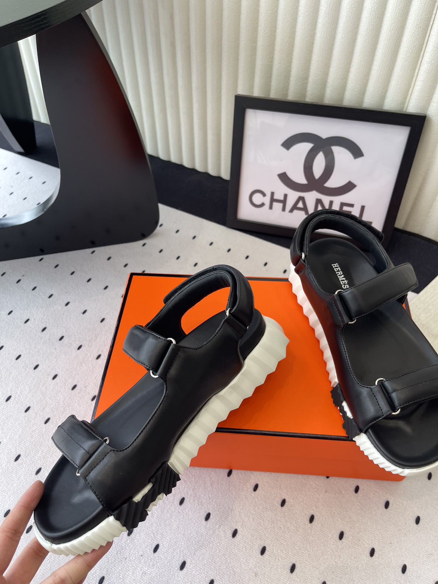 这款鞋子是AAAAA 1:1 质量 (非常棒). 使用了和原版一模一样的材料. 商标部分也保持了和爱马仕/Hermes一样. 图片拍摄是实物鞋子拍摄, 您所收到的实物保证和我们图片一模一样.