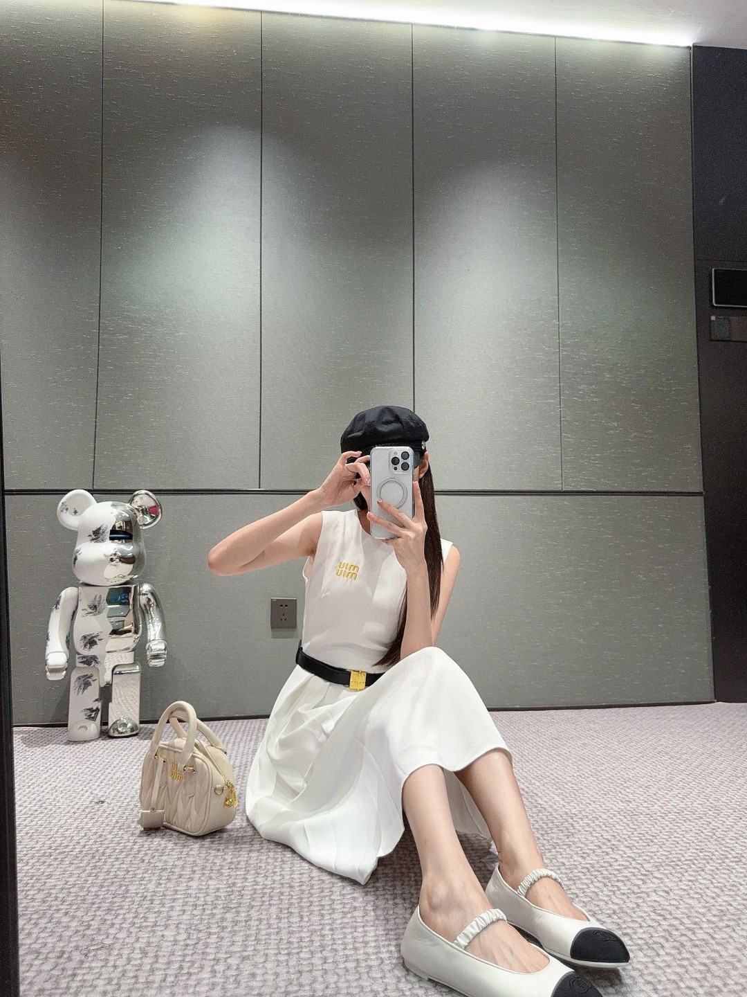 这款衣服是AAAAA 1:1 质量 (非常棒). 使用了和原版一模一样的材料. 商标部分也保持了和缪缪/Miu Miu一样. 图片拍摄是实物衣服拍摄, 您所收到的实物保证和我们图片一模一样.