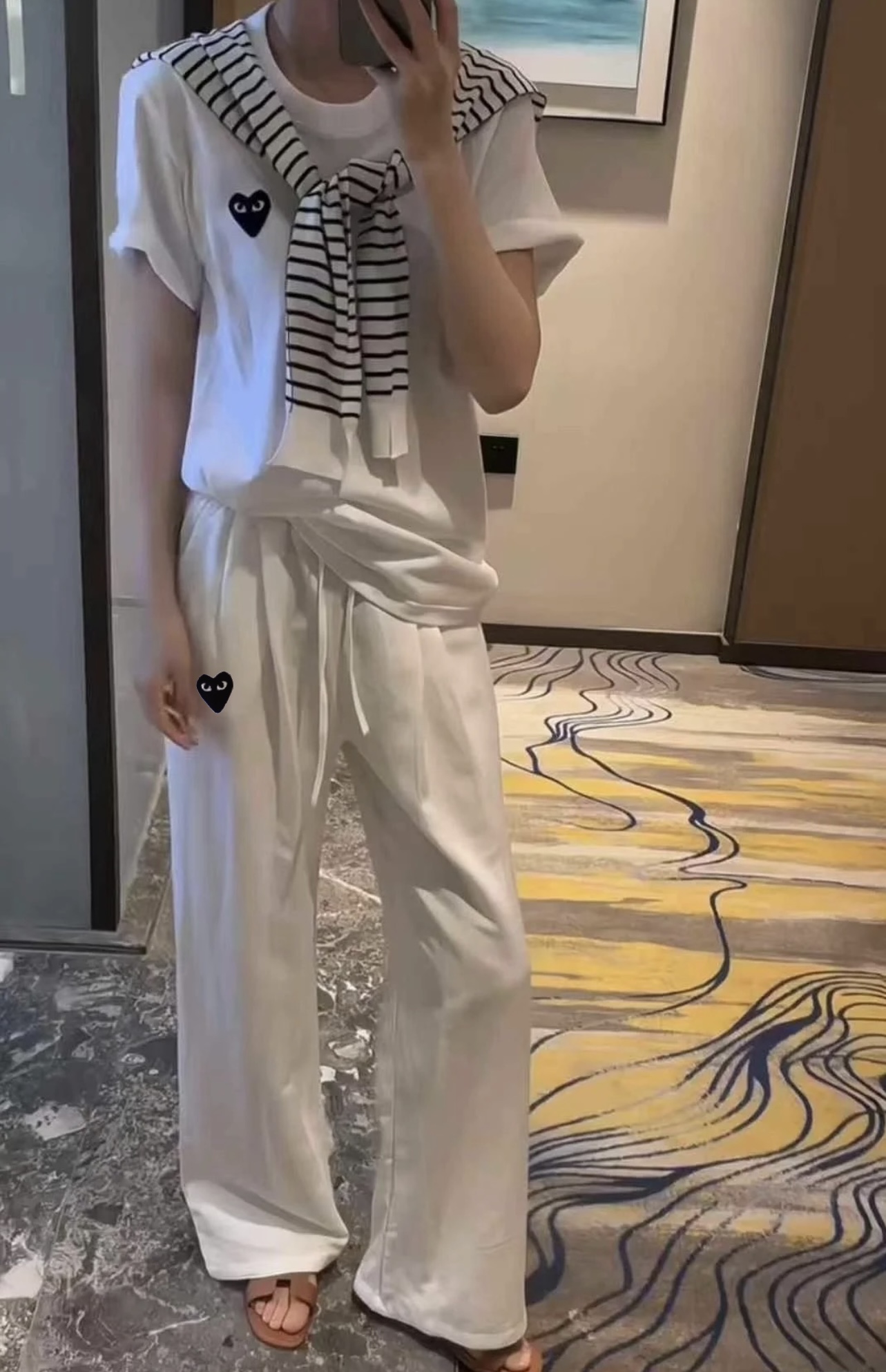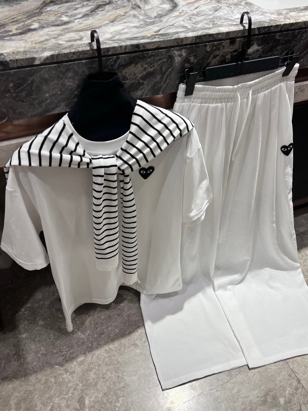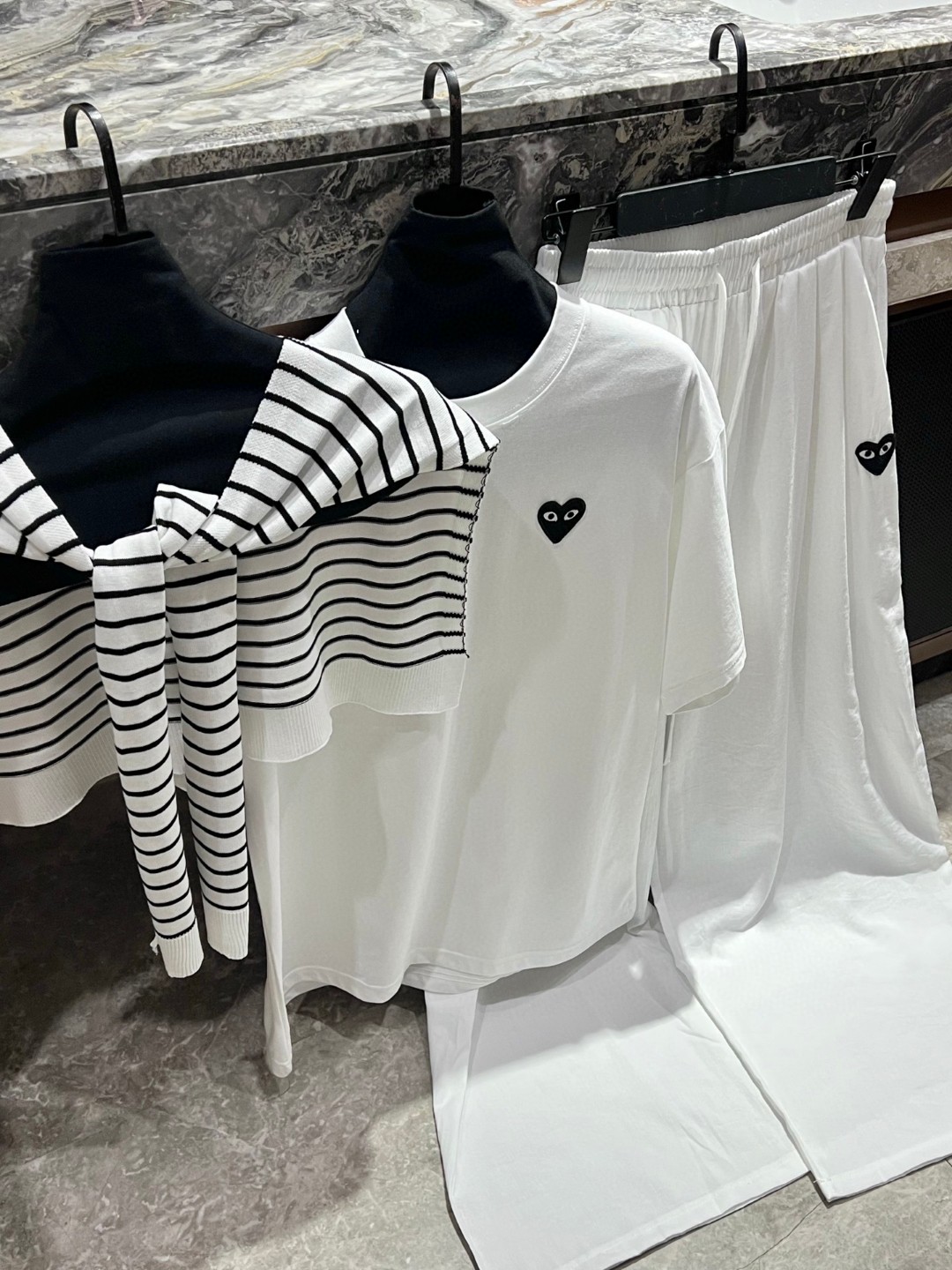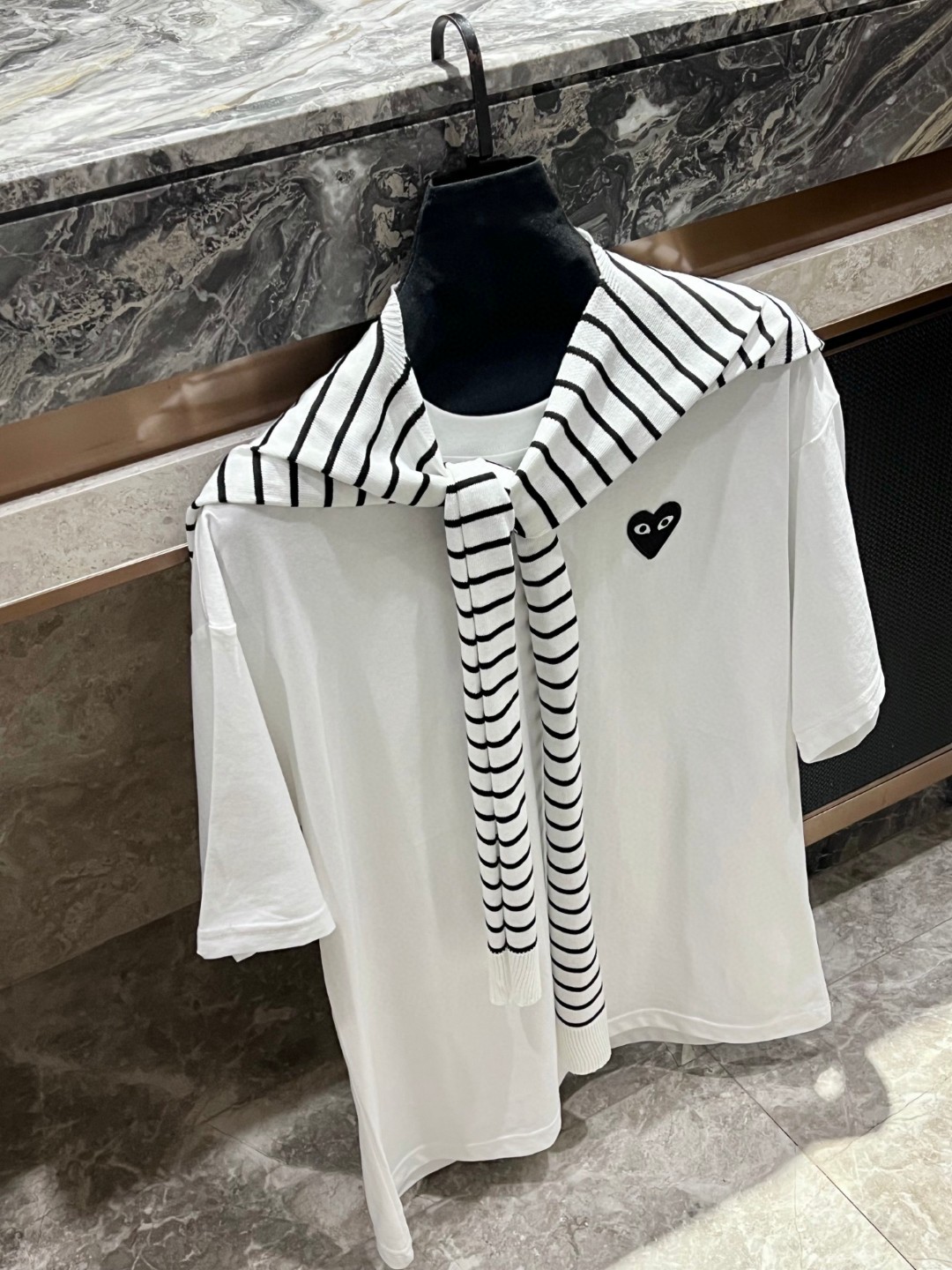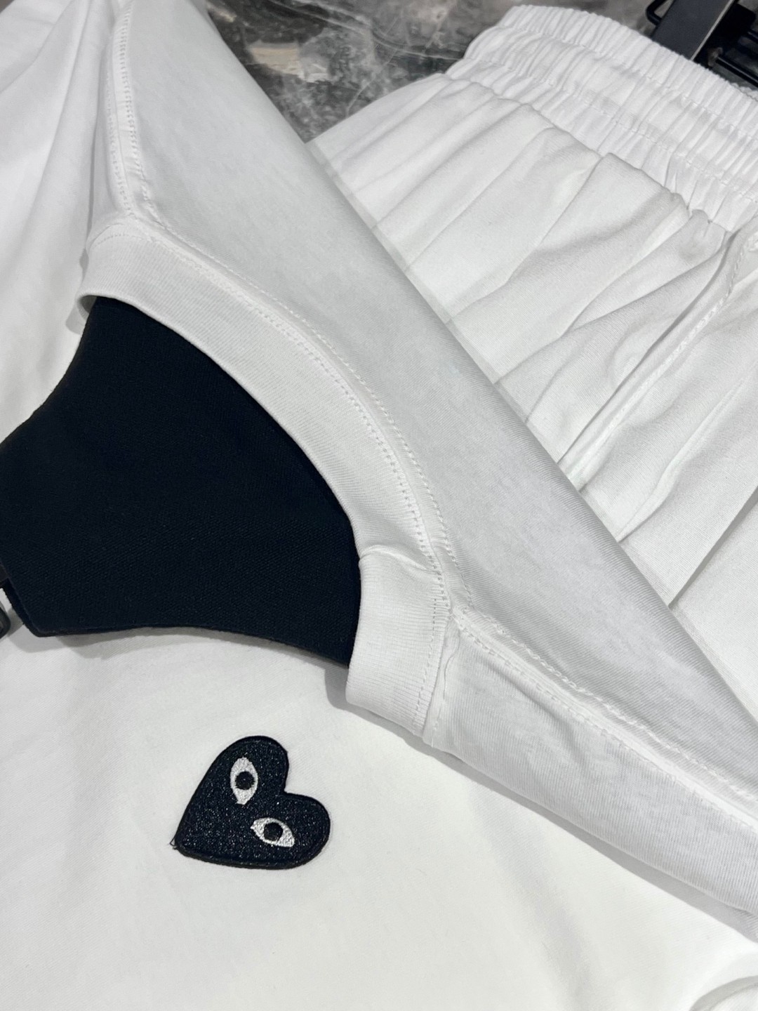 这款衣服是AAAAA 1:1 质量 (非常棒). 使用了和原版一模一样的材料. 商标部分也保持了和Comme Des Garcons一样. 图片拍摄是实物衣服拍摄, 您所收到的实物保证和我们图片一模一样.