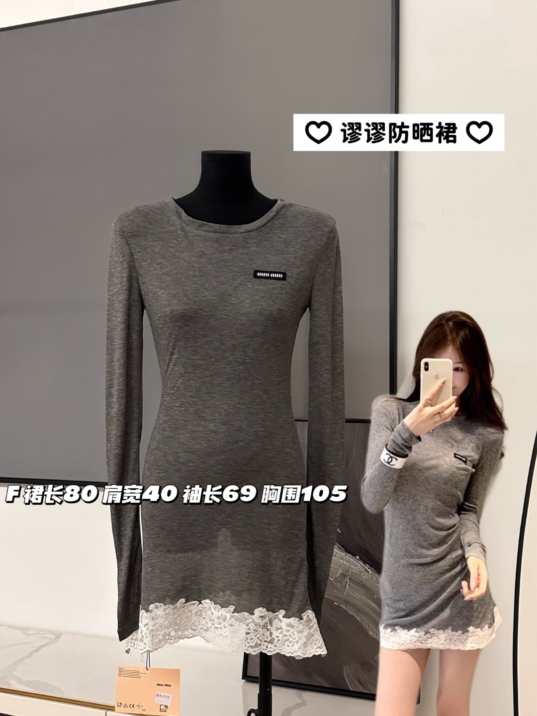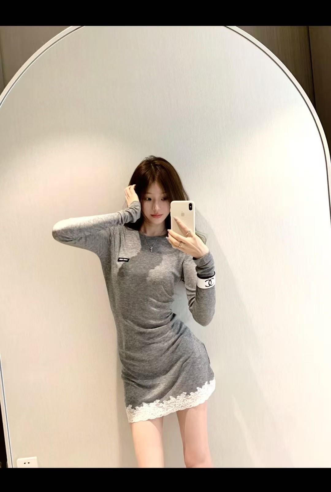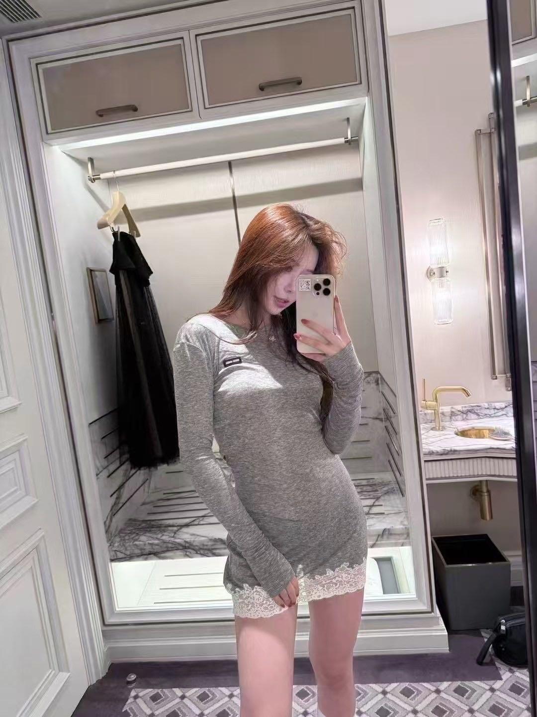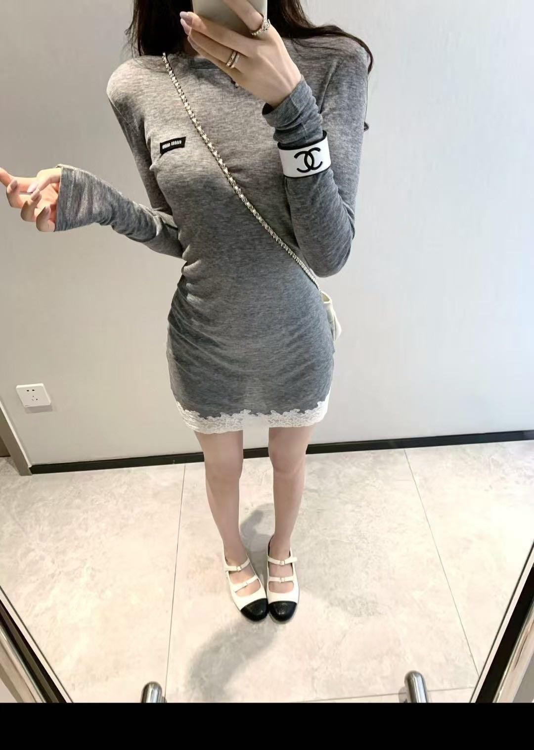 这款衣服是AAAAA 1:1 质量 (非常棒). 使用了和原版一模一样的材料. 商标部分也保持了和缪缪/Miu Miu一样. 图片拍摄是实物衣服拍摄, 您所收到的实物保证和我们图片一模一样.