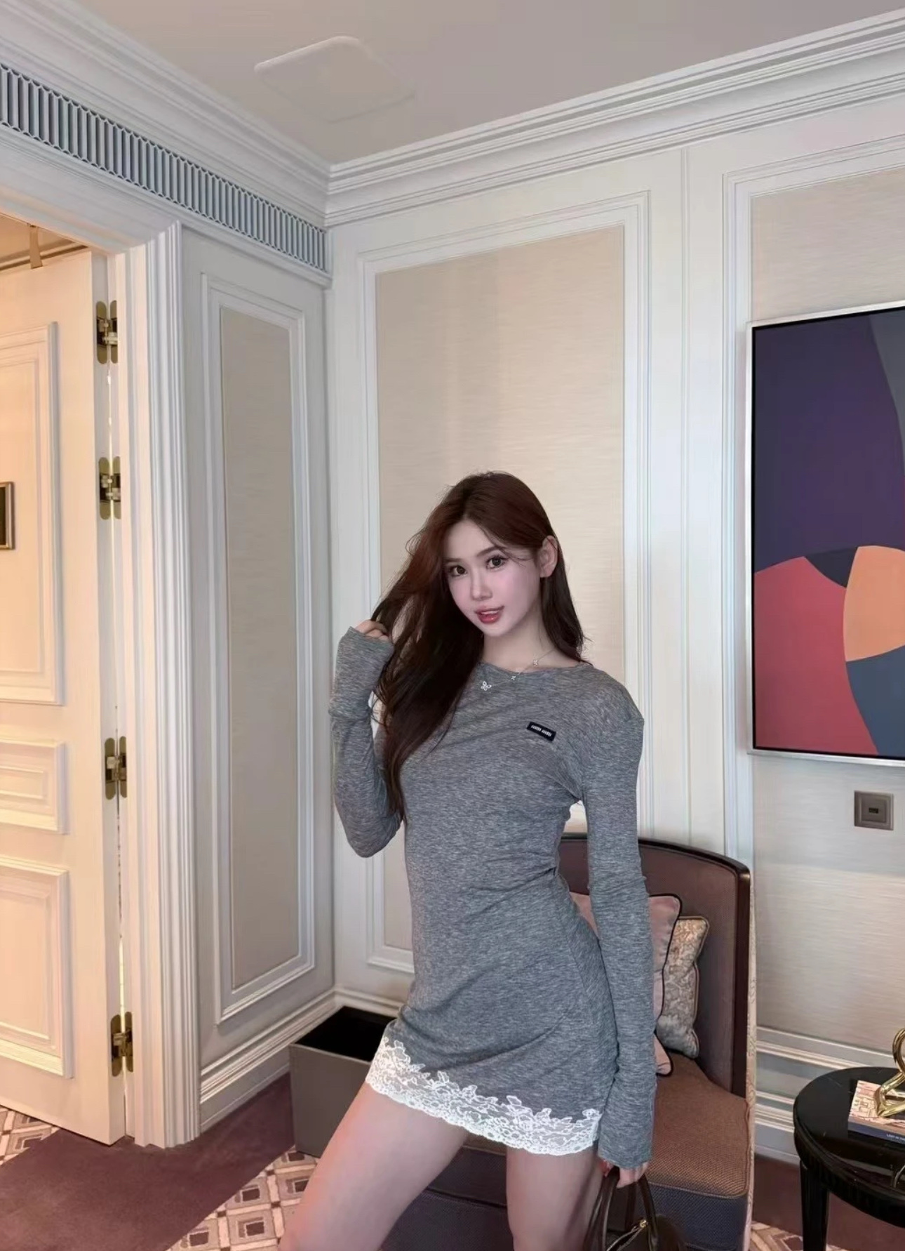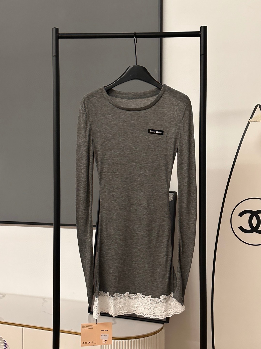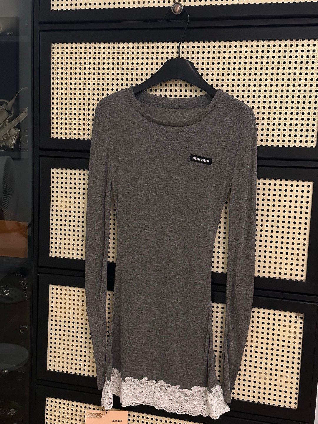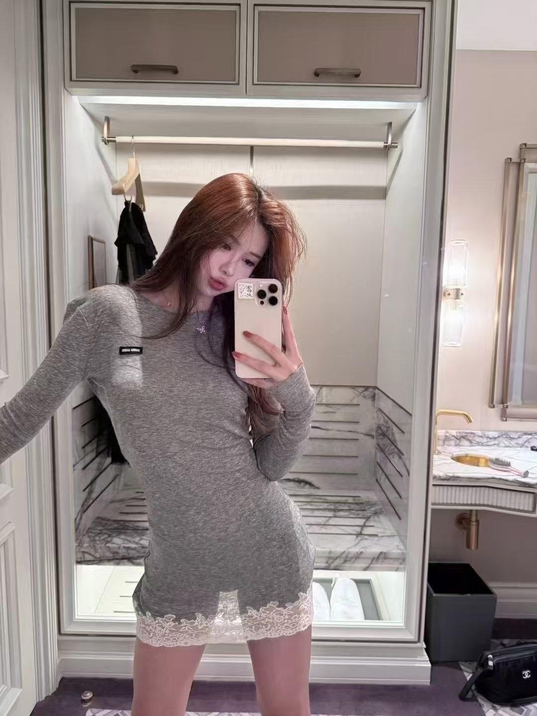 这款衣服是AAAAA 1:1 质量 (非常棒). 使用了和原版一模一样的材料. 商标部分也保持了和缪缪/Miu Miu一样. 图片拍摄是实物衣服拍摄, 您所收到的实物保证和我们图片一模一样.