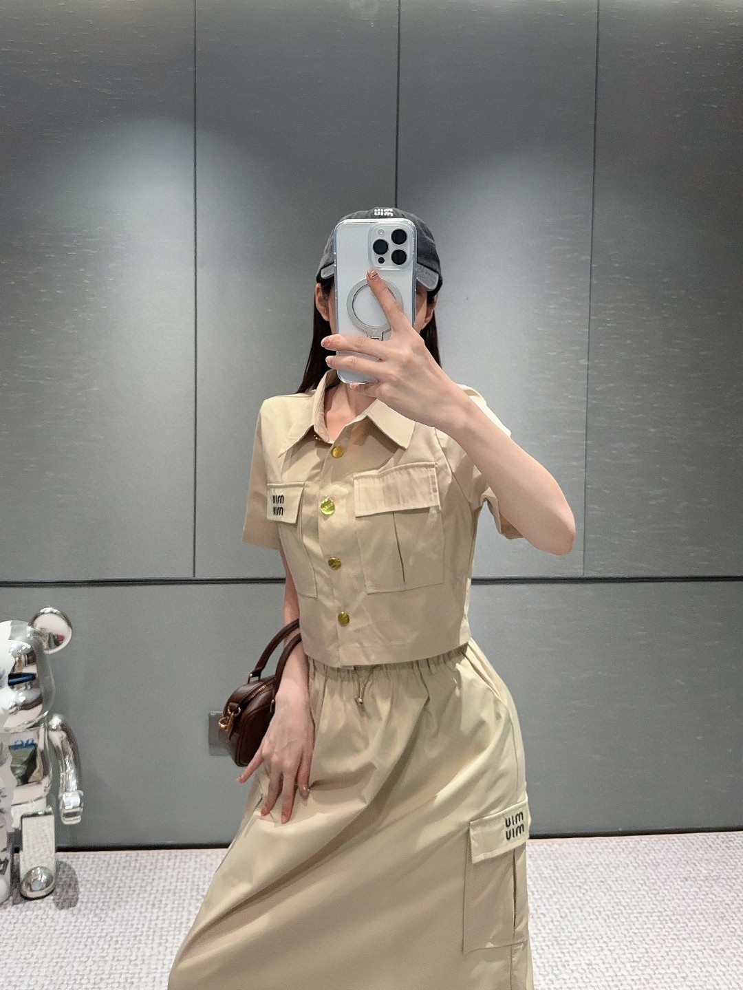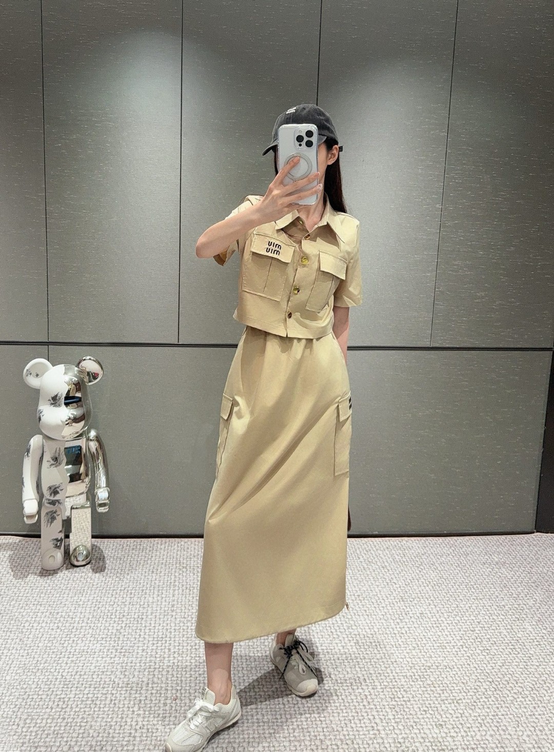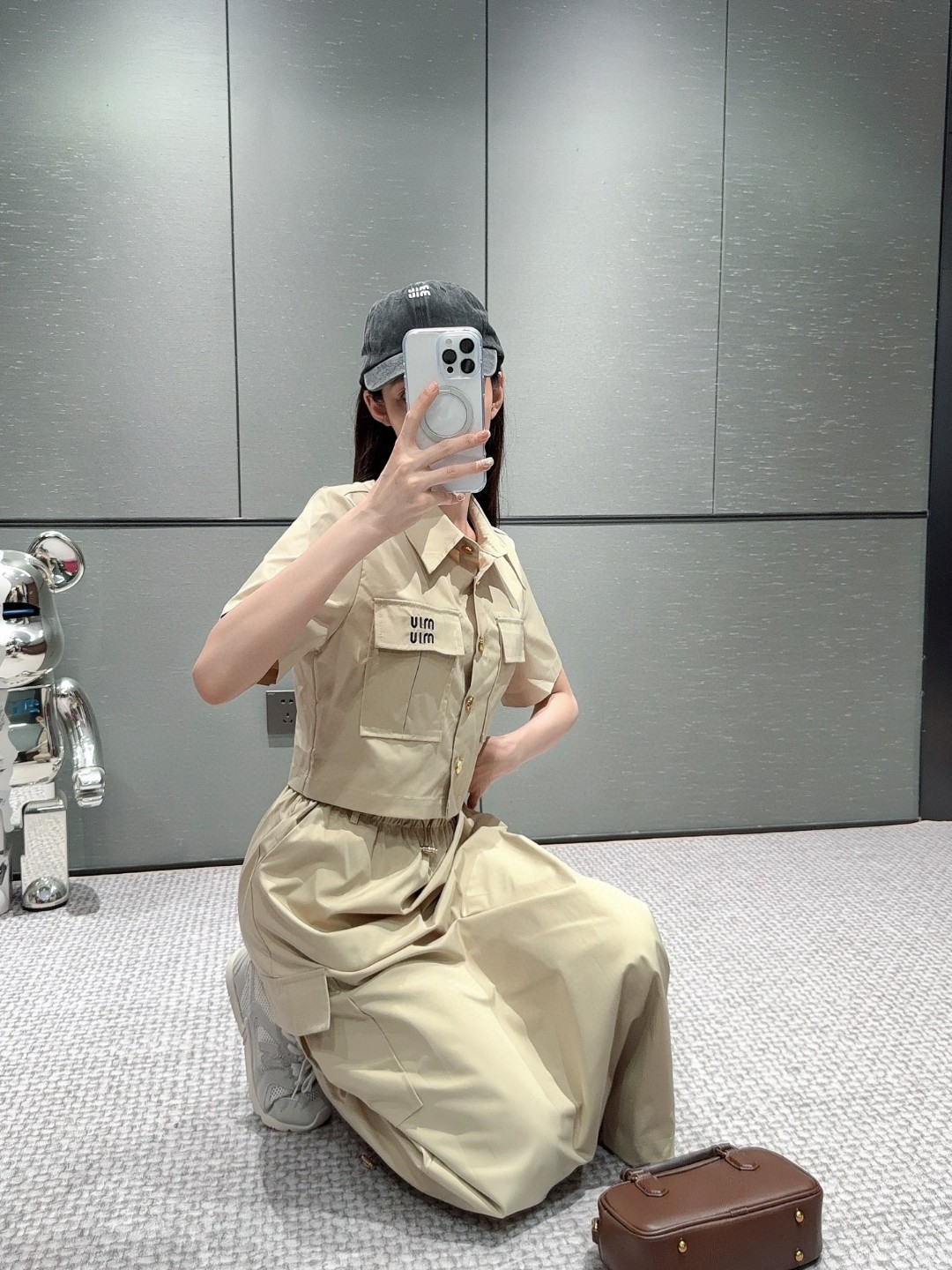 这款衣服是AAAAA 1:1 质量 (非常棒). 使用了和原版一模一样的材料. 商标部分也保持了和缪缪/Miu Miu一样. 图片拍摄是实物衣服拍摄, 您所收到的实物保证和我们图片一模一样.