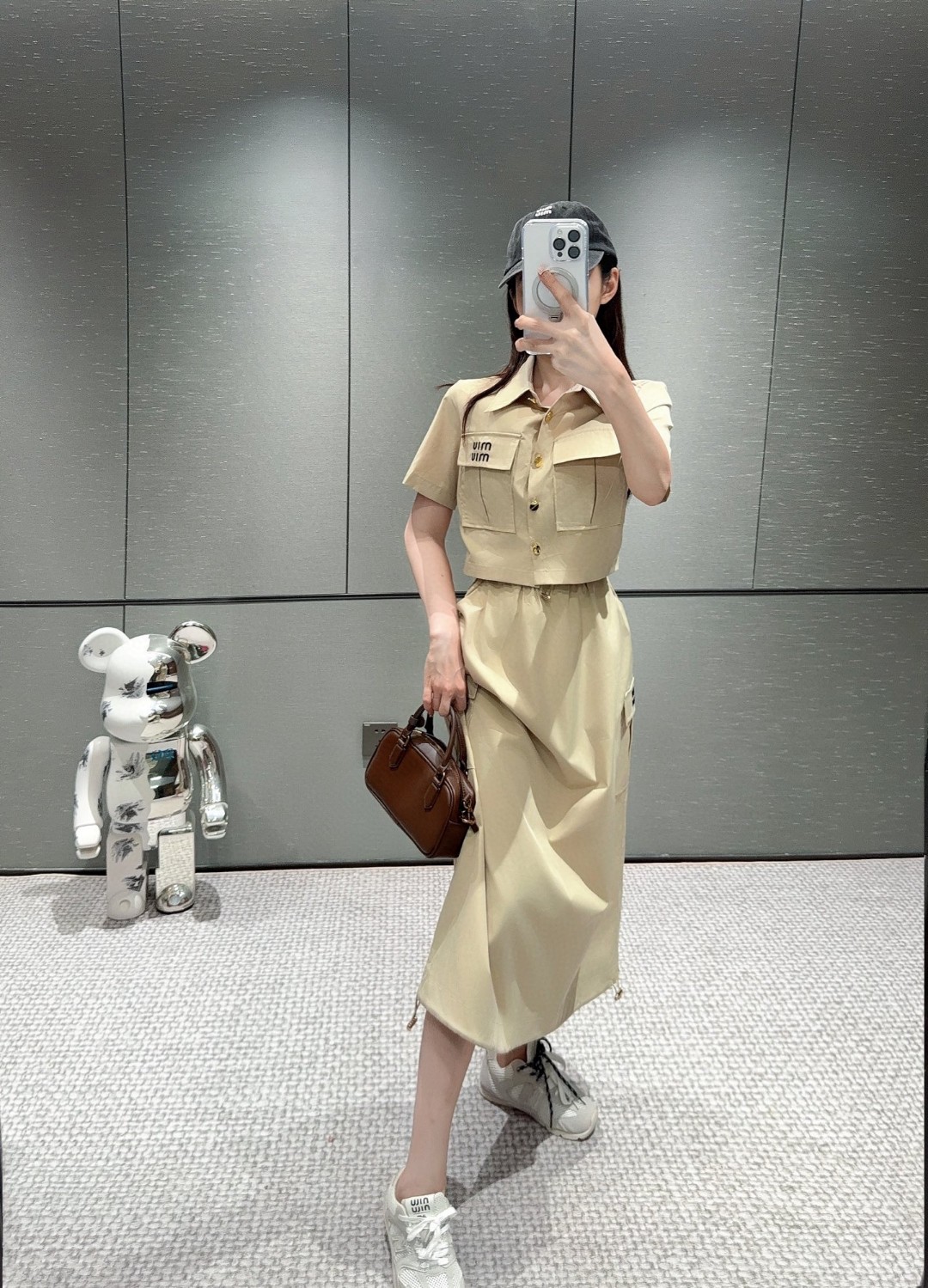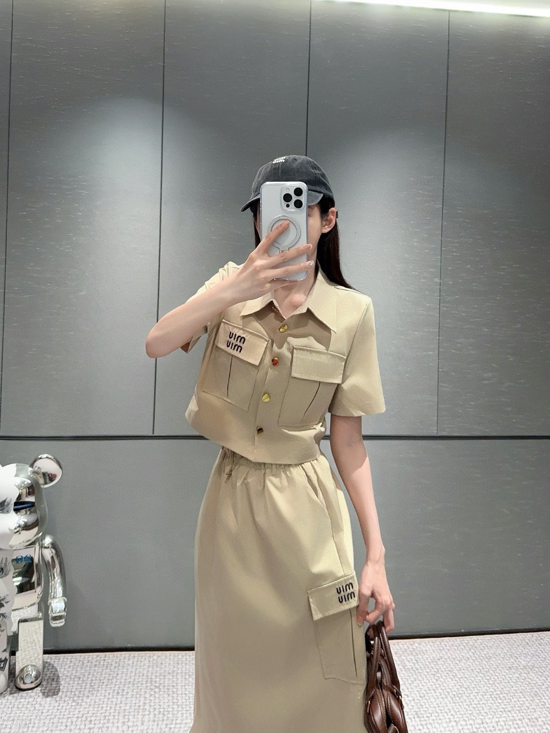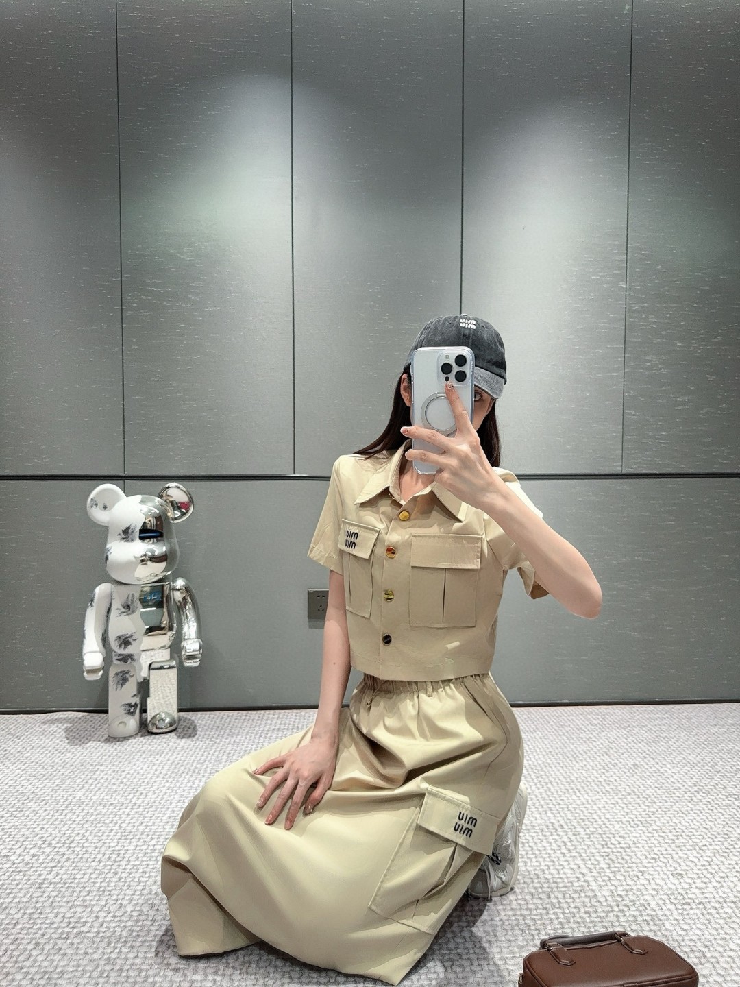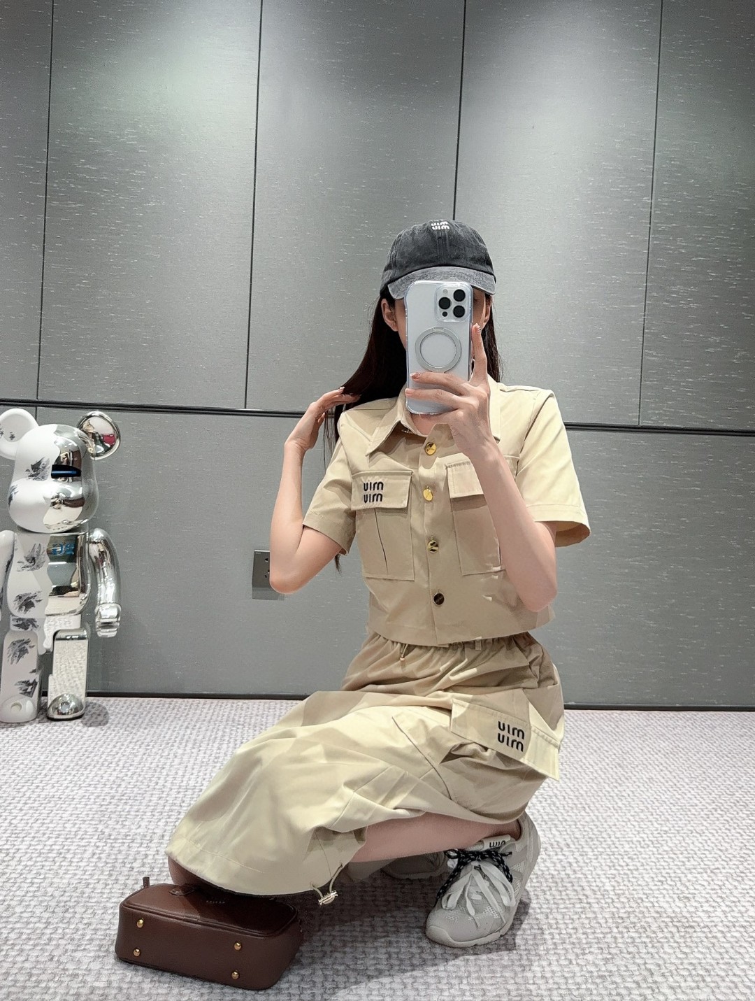 这款衣服是AAAAA 1:1 质量 (非常棒). 使用了和原版一模一样的材料. 商标部分也保持了和缪缪/Miu Miu一样. 图片拍摄是实物衣服拍摄, 您所收到的实物保证和我们图片一模一样.