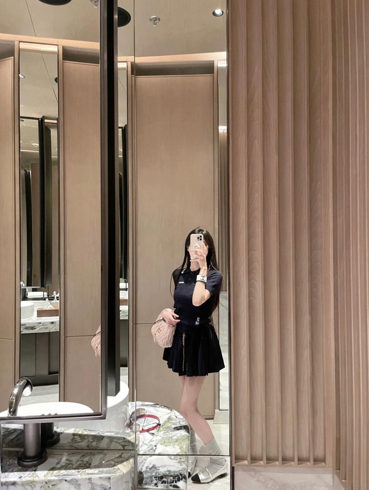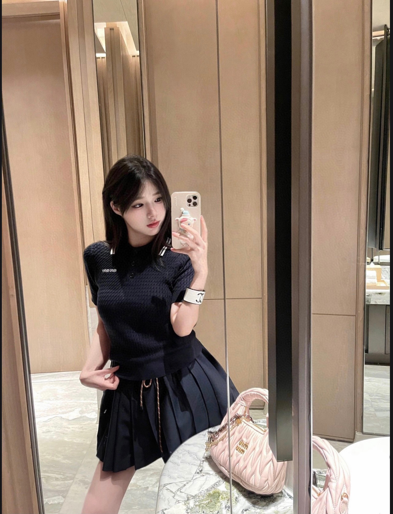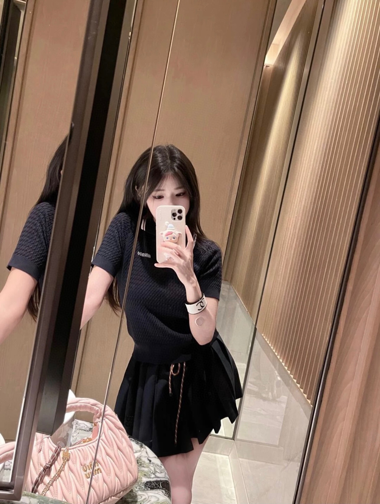 这款衣服是AAAAA 1:1 质量 (非常棒). 使用了和原版一模一样的材料. 商标部分也保持了和缪缪/Miu Miu一样. 图片拍摄是实物衣服拍摄, 您所收到的实物保证和我们图片一模一样.